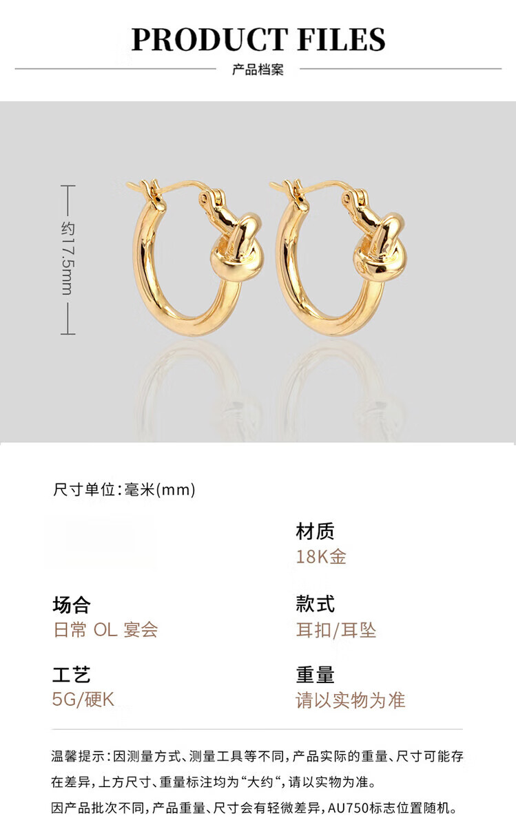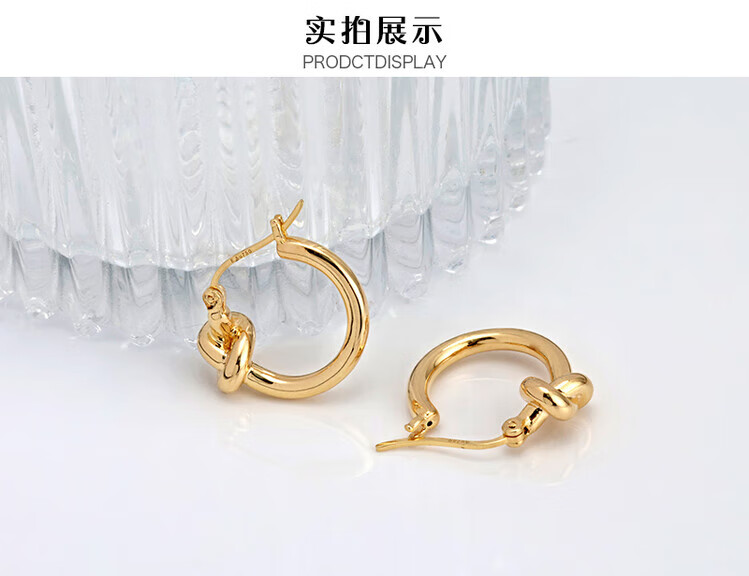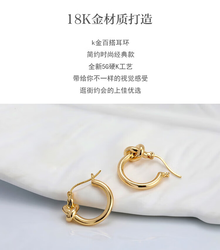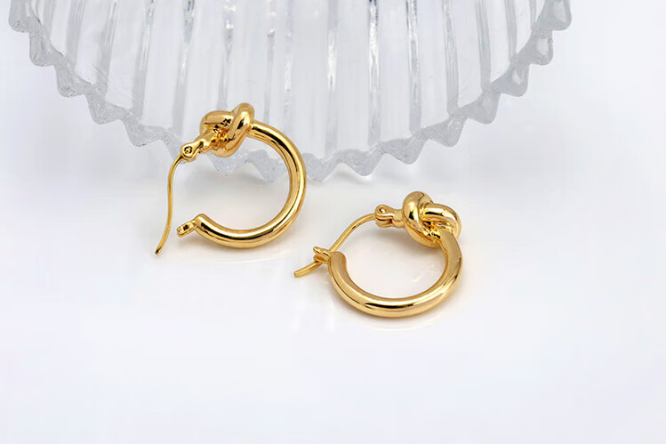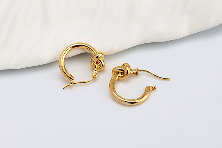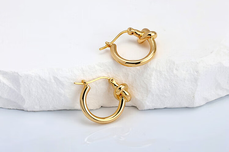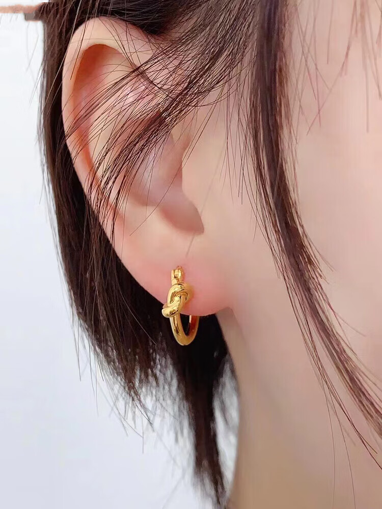 Mengpao 18K gold simple plain hoop earrings for women, unique knotted small ear hoops, niche design, k gold ear buckles, new trendy earrings, weighing about 1.07g