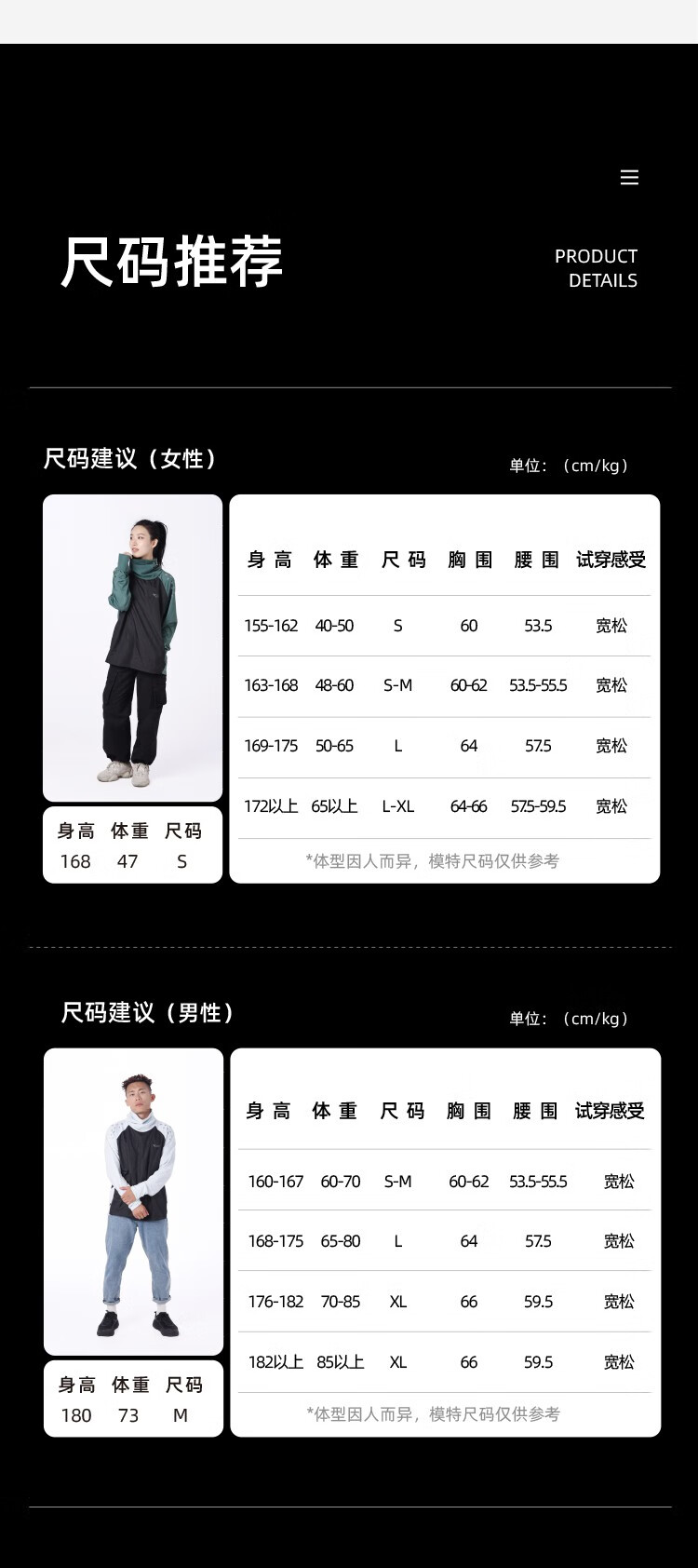China (cm) 160-165/84-86 165-170 / 88-90 167-172 / 92-96 168-173 / 98-102 170-176 / 106-110
