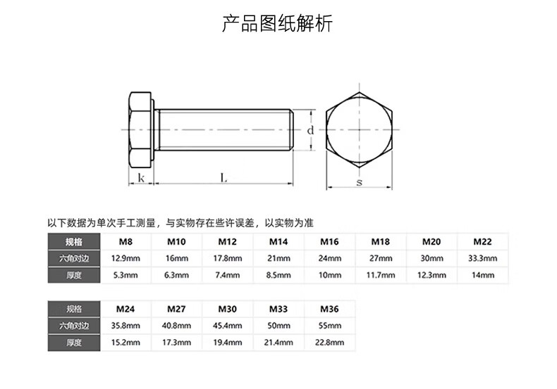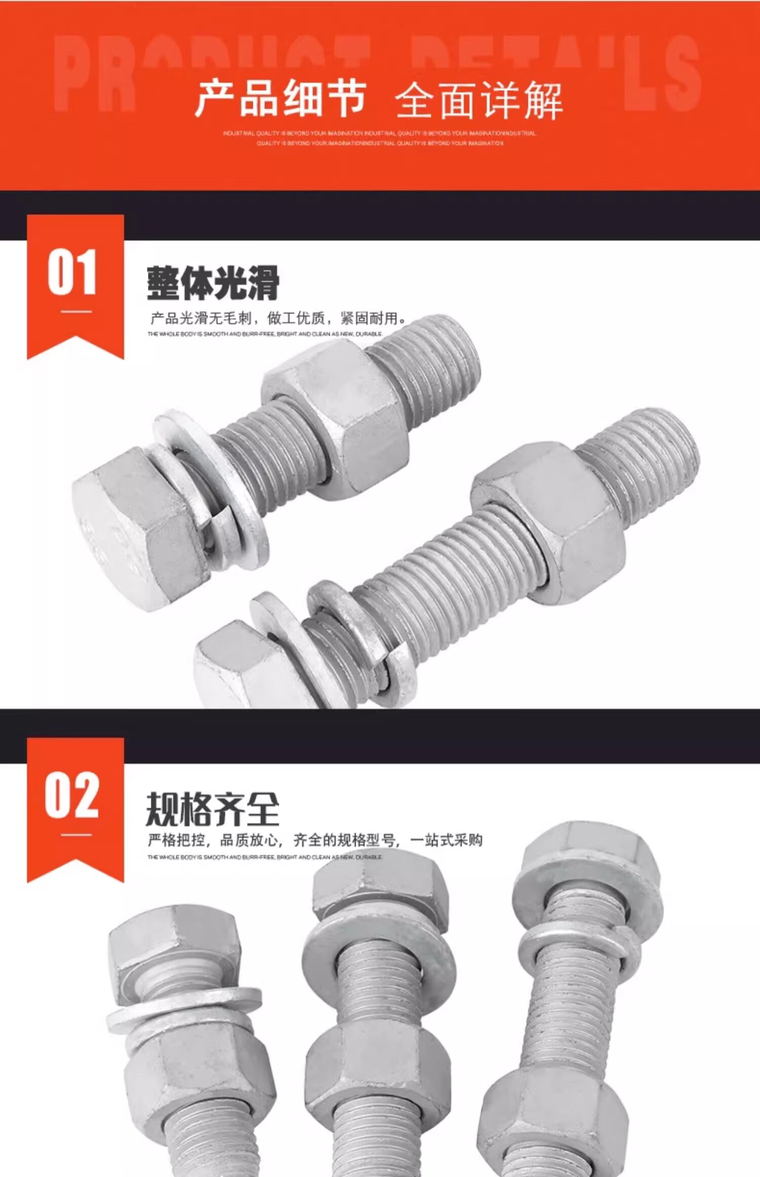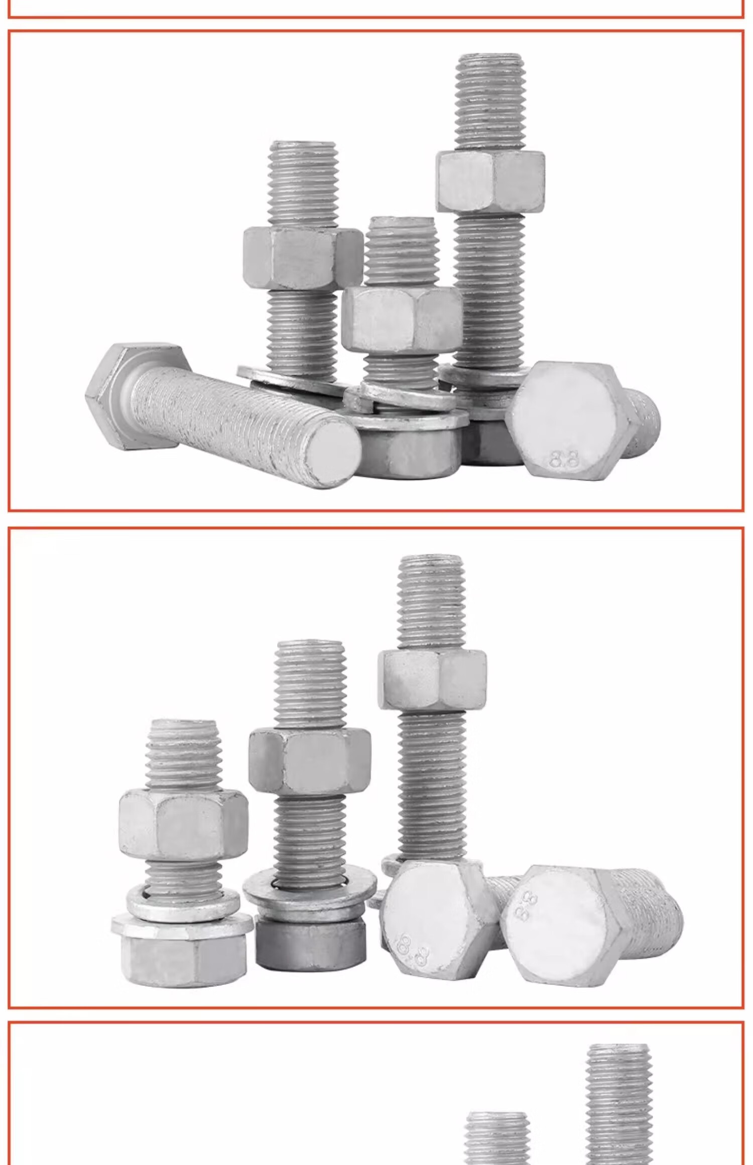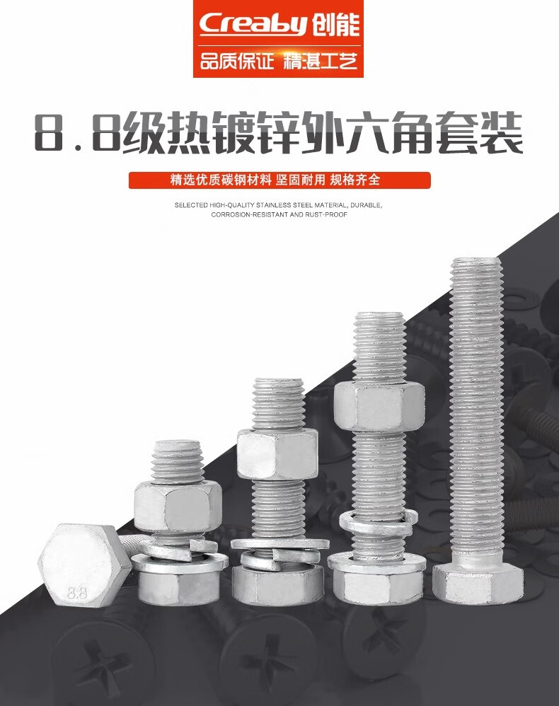 Creaby hot-dip galvanized external hexagonal bolts and nuts set 8.8 grade hot-dip galvanized screws and nuts combination fasteners M18x70 2 sets