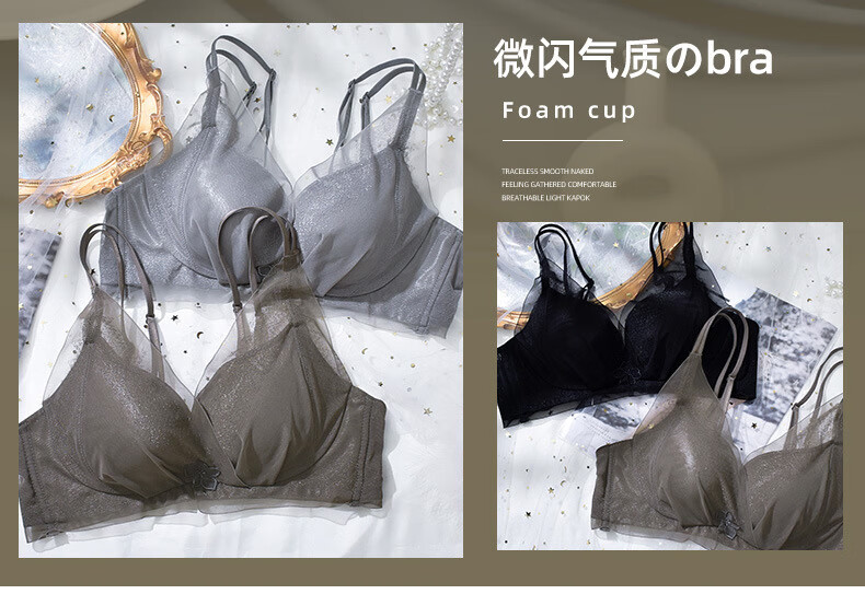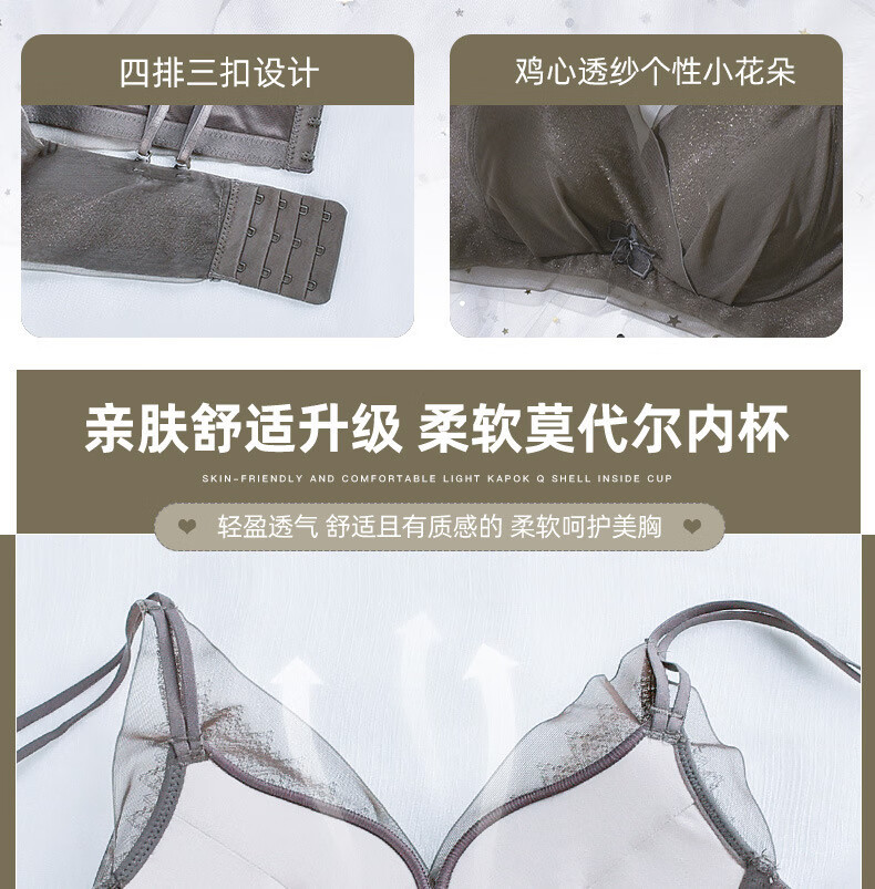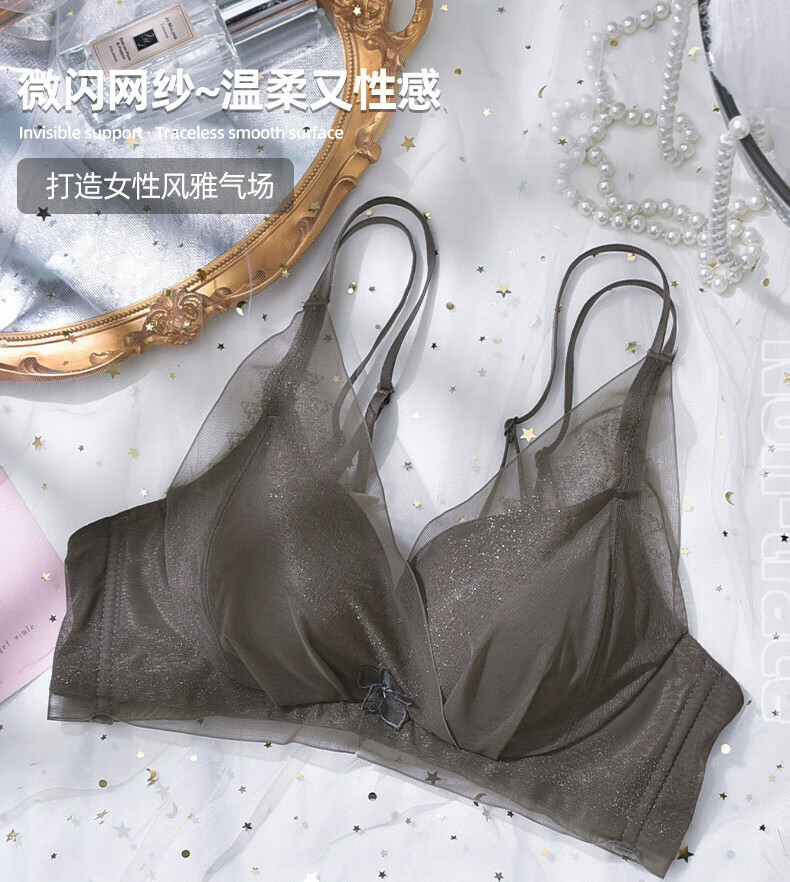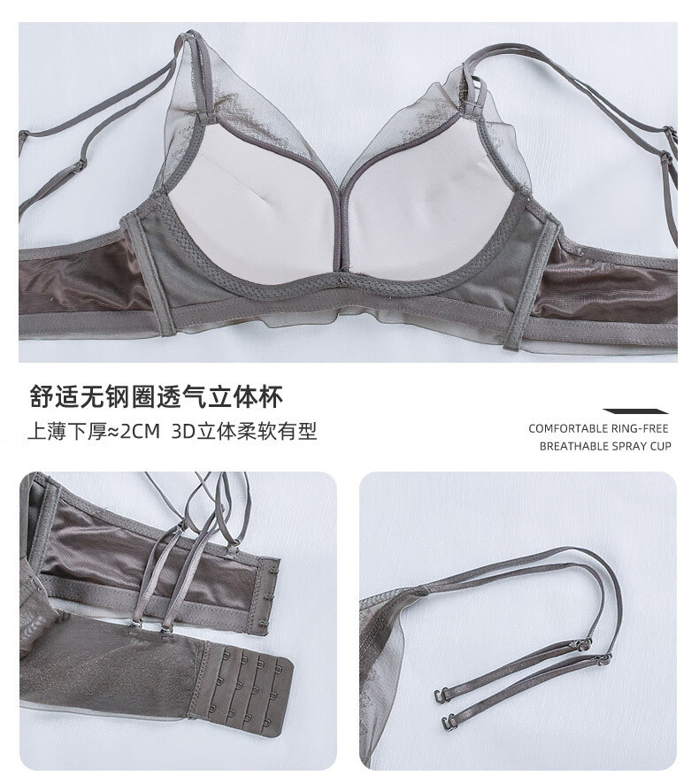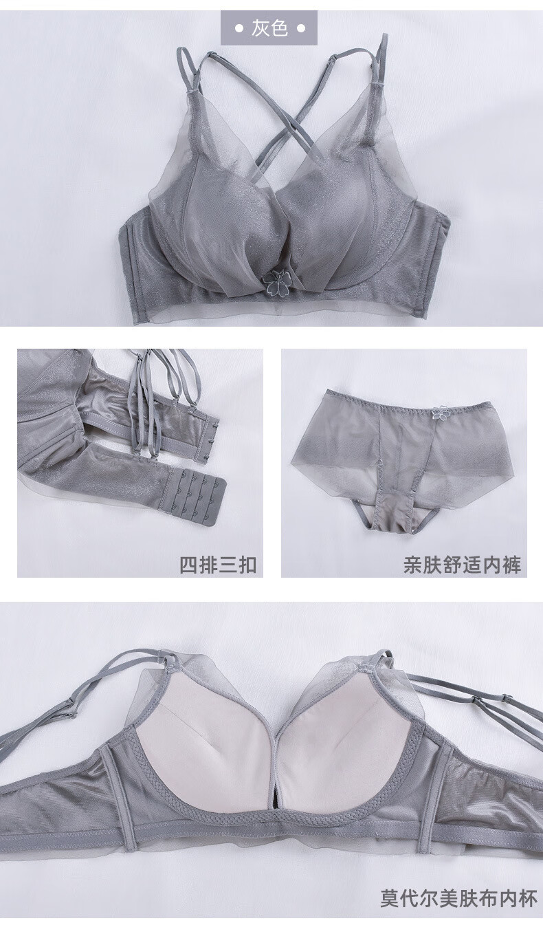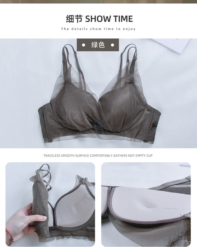 Modal comfortable seamless women's underwear thin push-up breathable adjustable breast shape beautiful back anti-sagging skin-friendly women's bra gray single piece 75A 34B thick cup