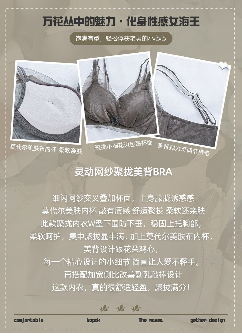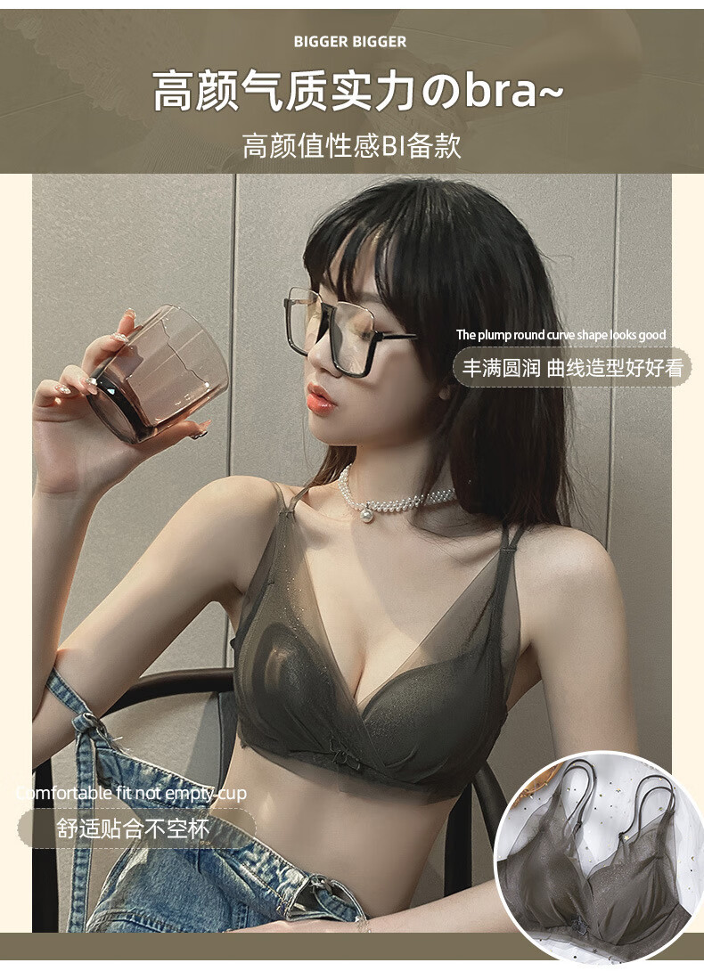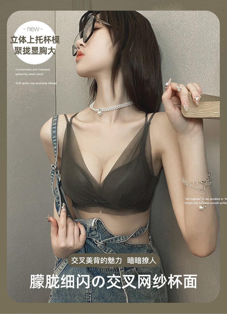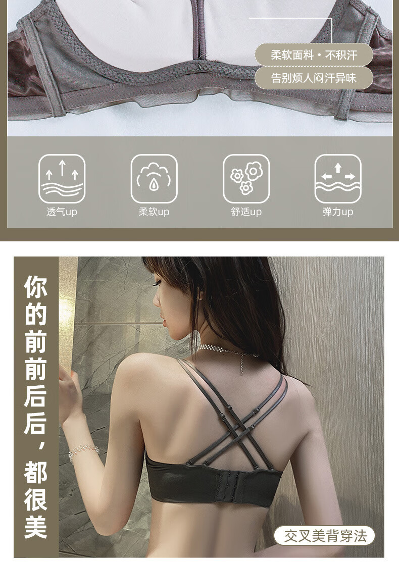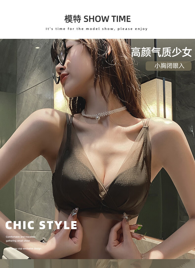 Modal comfortable seamless women's underwear thin push-up breathable adjustable breast shape beautiful back anti-sagging skin-friendly women's bra gray single piece 75A 34B thick cup