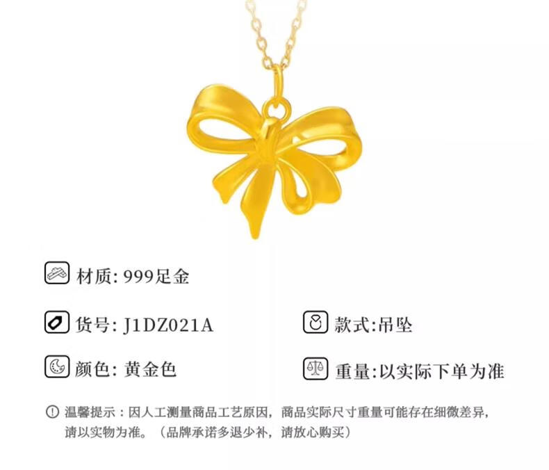 China Gold (CHINA GOLD) Bow Knot Gold Necklace Women's 999 Pure Gold Pendant Birthday Gift for Girlfriend and Wife Bow Knot Gold Pendant with Silver Chain Gold Weight Approximately 1.2g