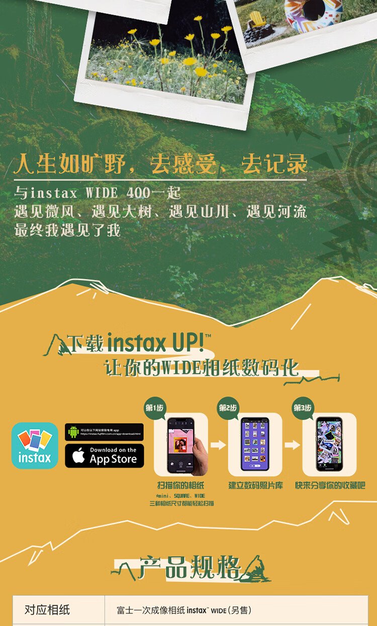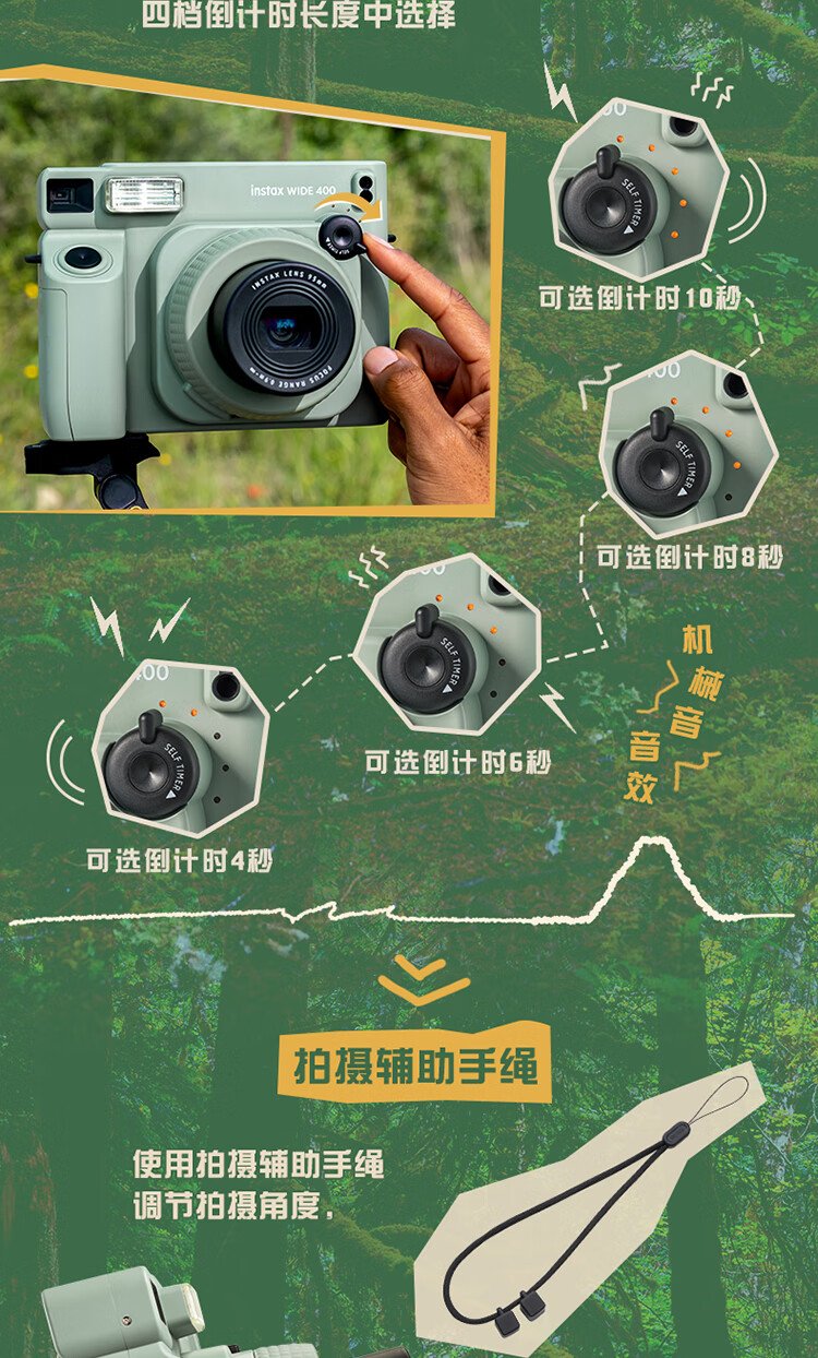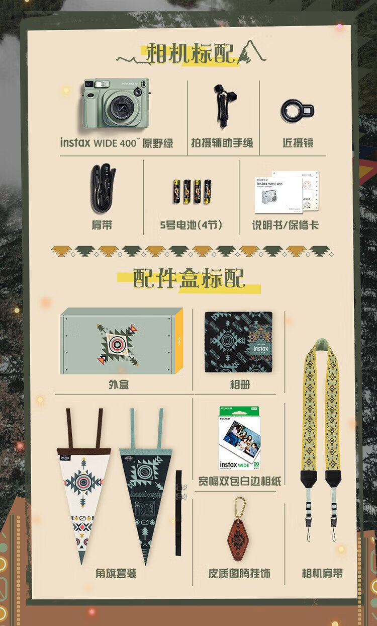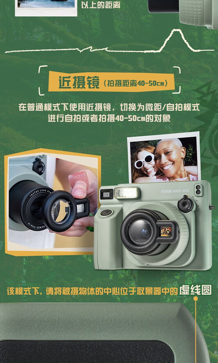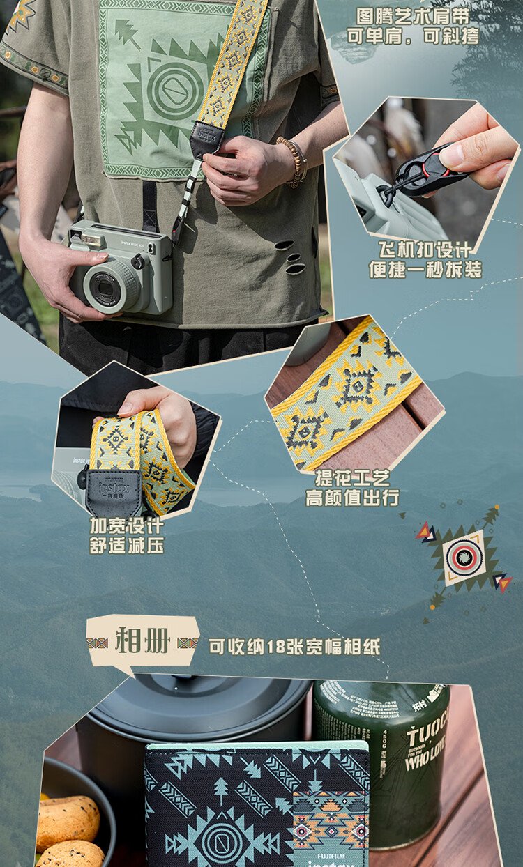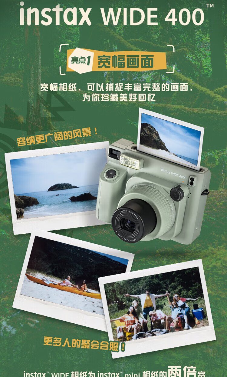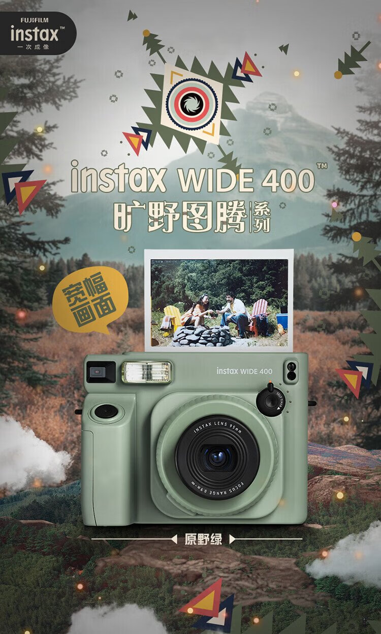 Fuji (FUJIFILM) instax wide400 instant wide format camera photo paper one-click shooting point-and-shoot camera best friend travel holiday birthday gift gift wide400 wilderness green package B standard (including 20 photos) + 20 photo papers + practical accessories package