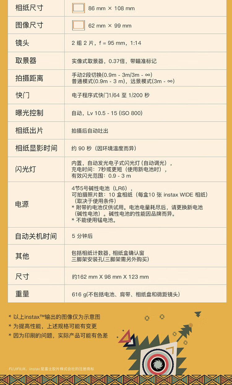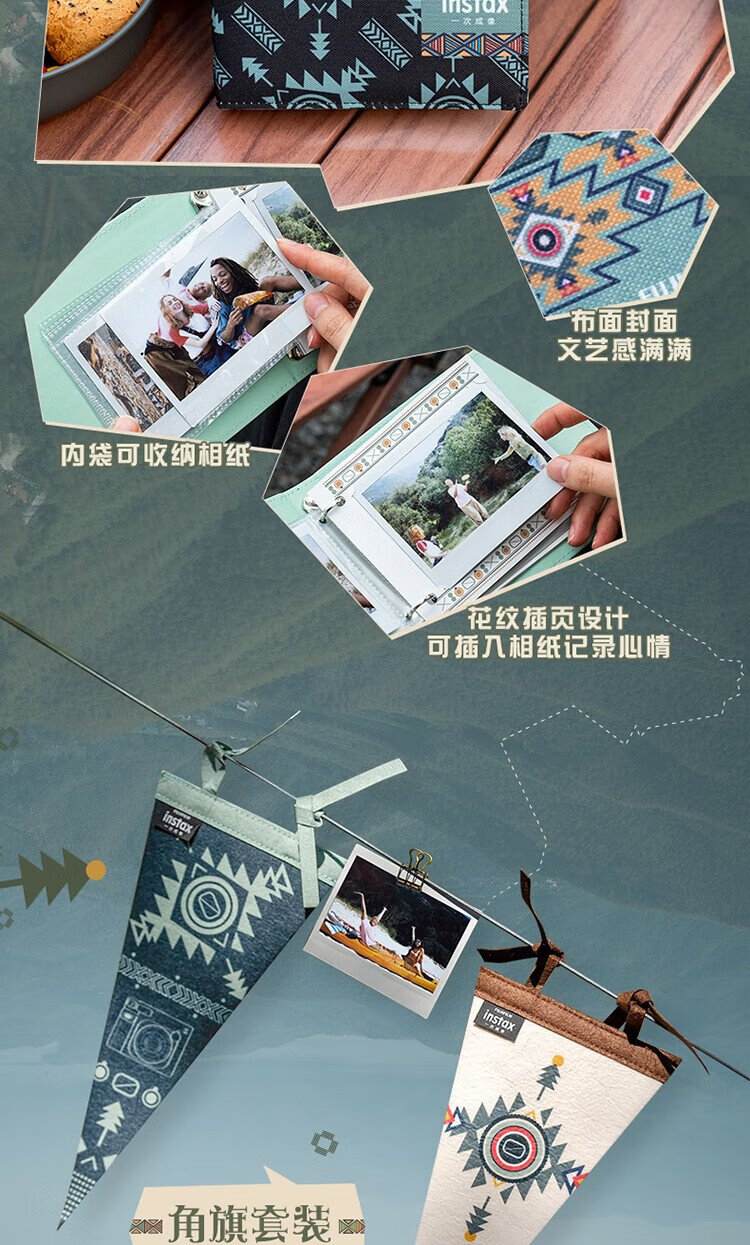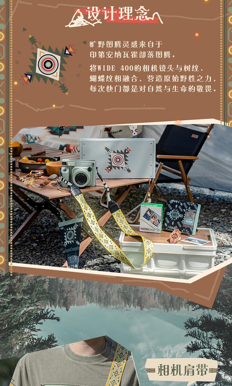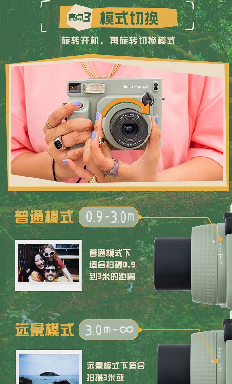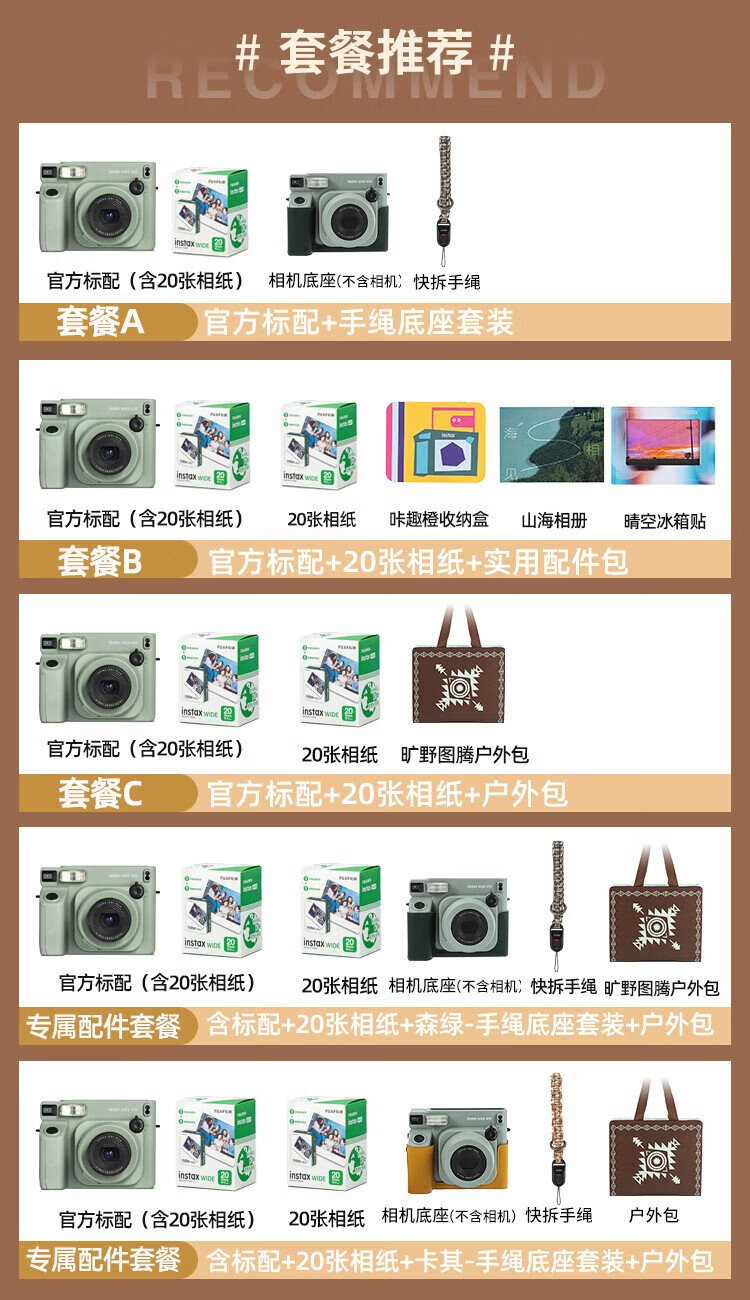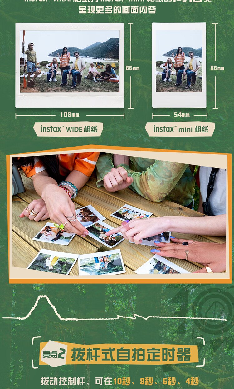 Fuji (FUJIFILM) instax wide400 instant wide format camera photo paper one-click shooting point-and-shoot camera best friend travel holiday birthday gift gift wide400 wilderness green package B standard (including 20 photos) + 20 photo papers + practical accessories package