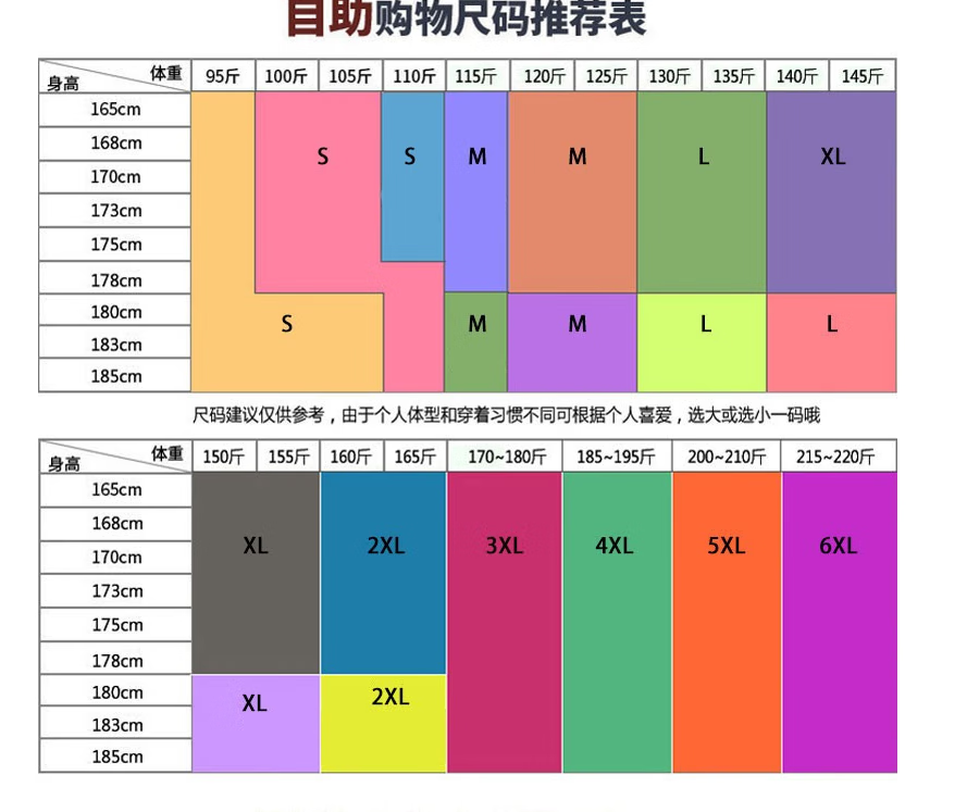 China (cm) 165 / 88-90 170 / 96-98 175 / 108-110 180 / 118-122 185 / 126-130