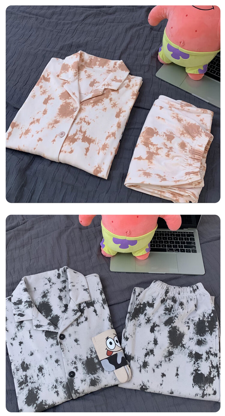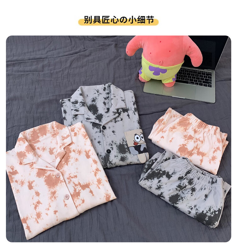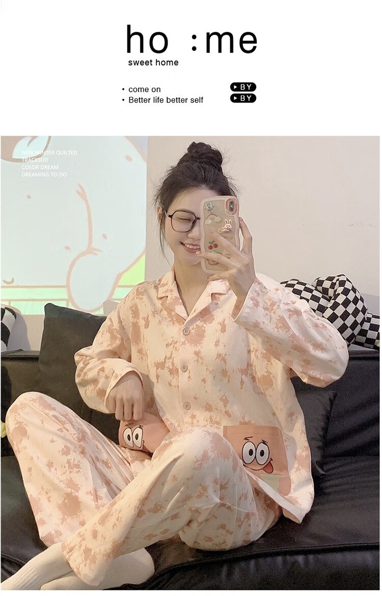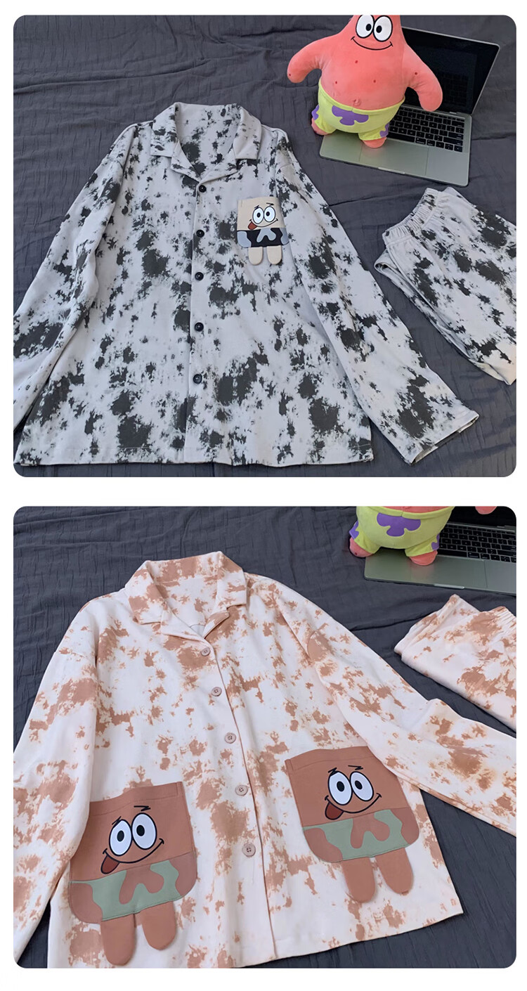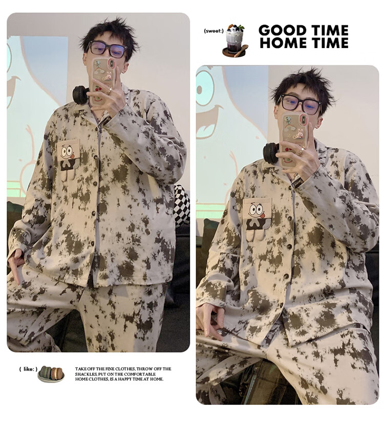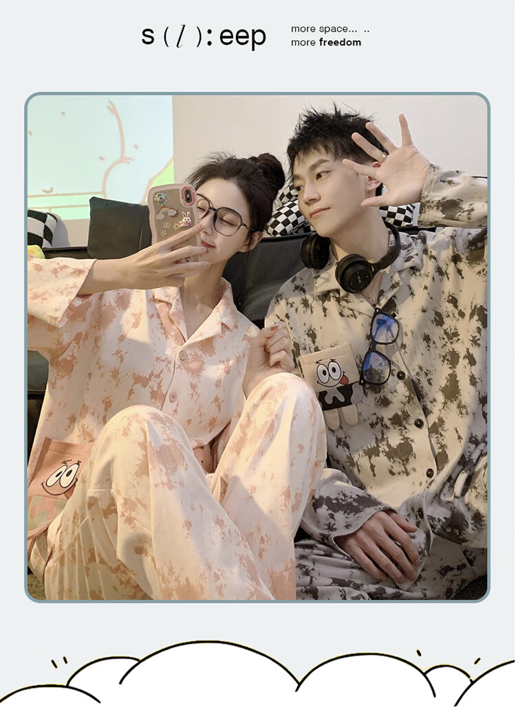 Mobeihai star couple pajamas spring and autumn long-sleeved pure cotton cartoon Japanese ins style men's and women's home wear two-piece set TM-2278 Black Stitch L male