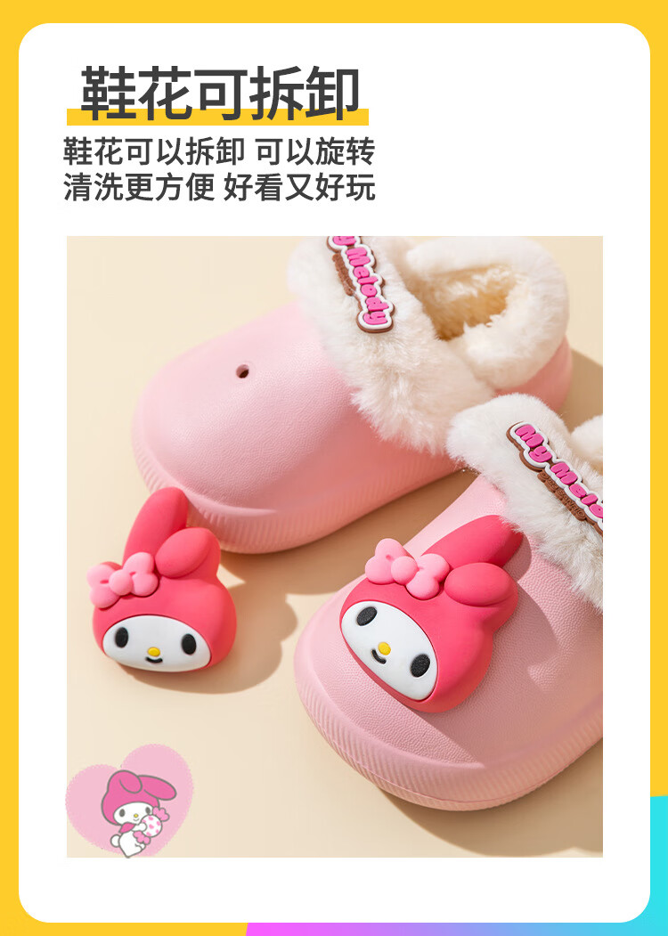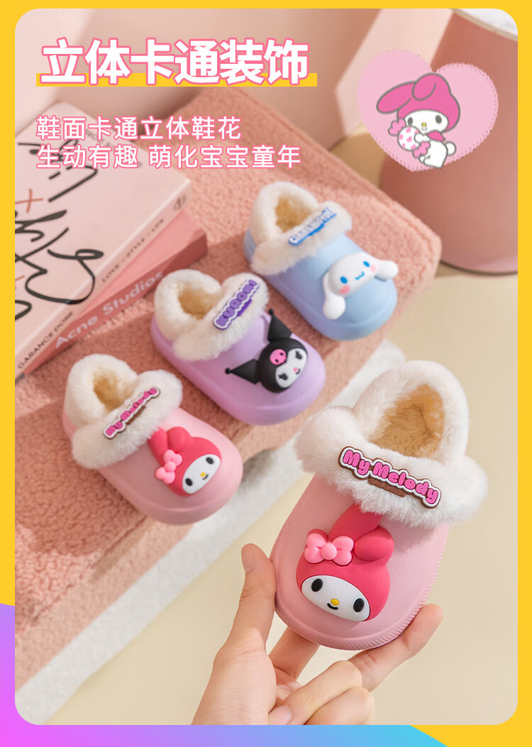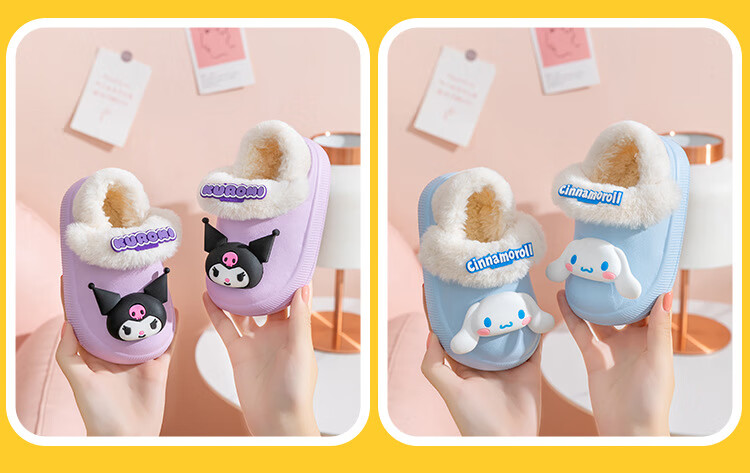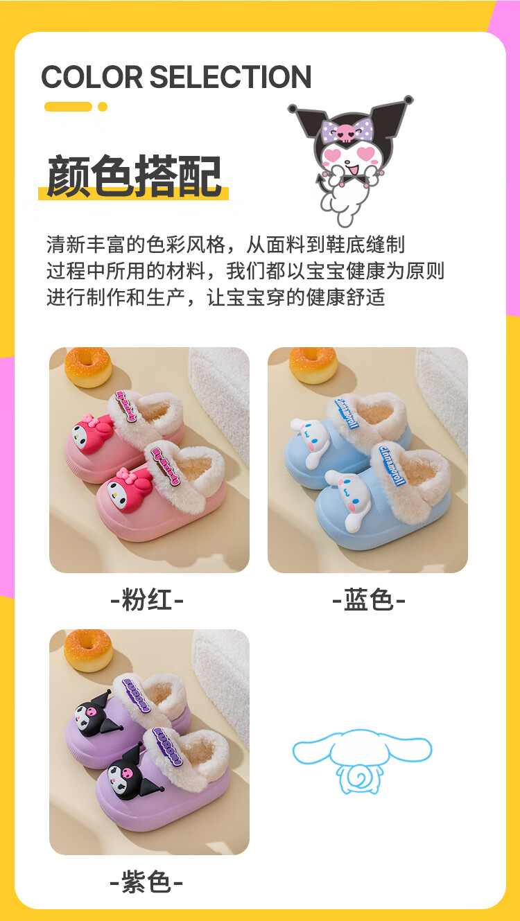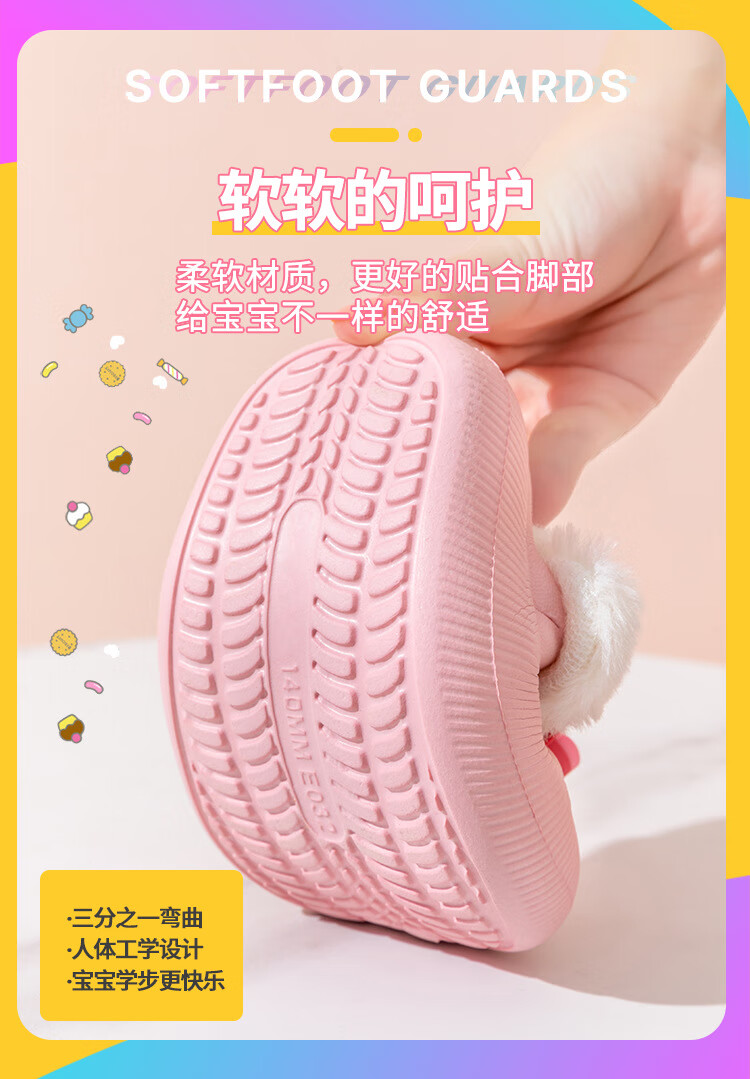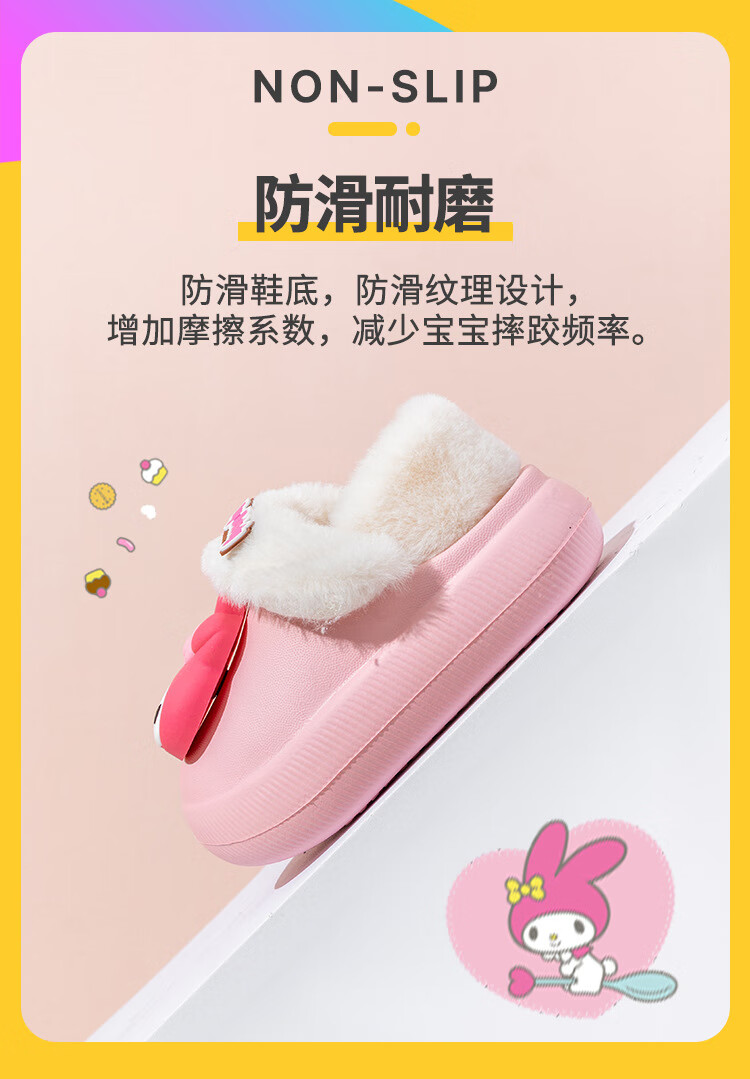 SKONWAT children's cotton slippers for boys and girls in winter cute cartoon indoor home woolen cotton shoes with removable cotton lining pink KT cat 200mm
