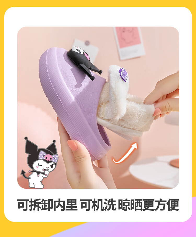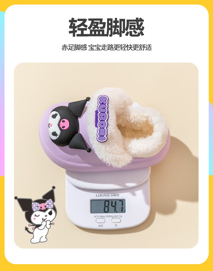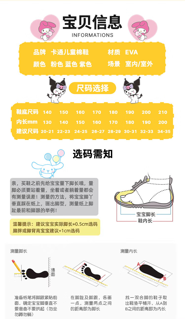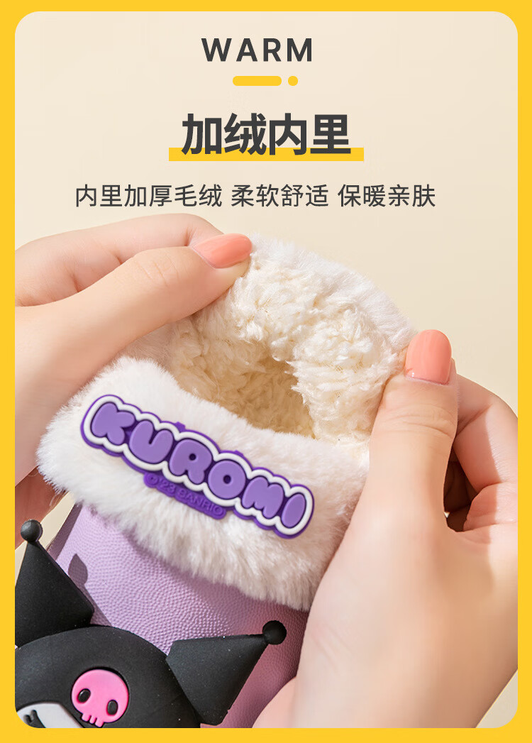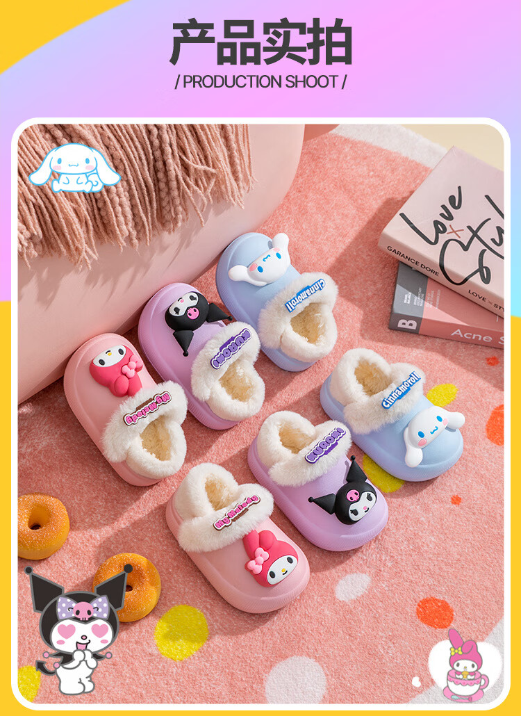 SKONWAT children's cotton slippers for boys and girls in winter cute cartoon indoor home woolen cotton shoes with removable cotton lining pink KT cat 200mm