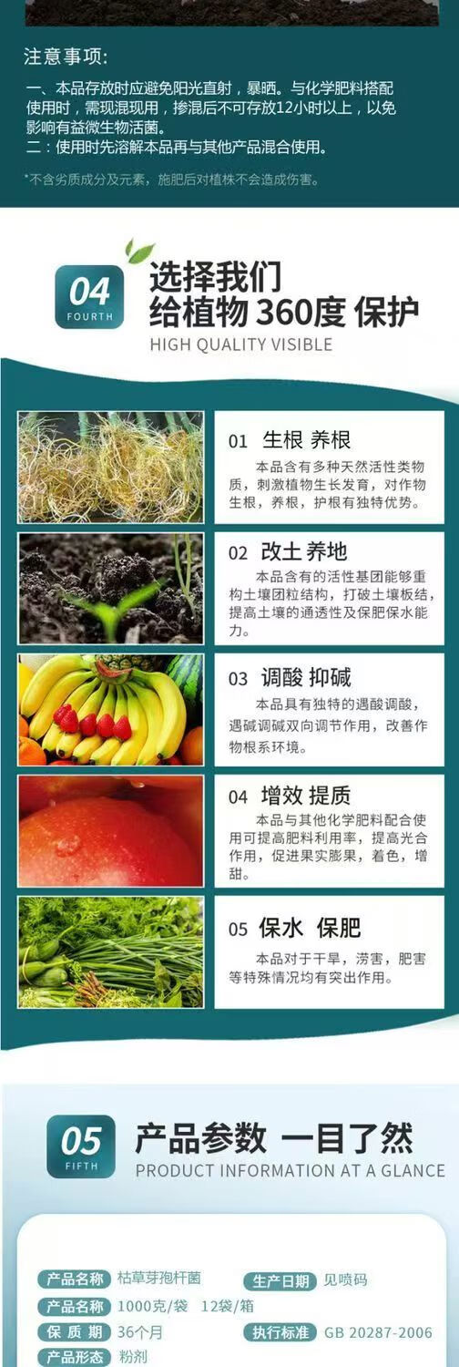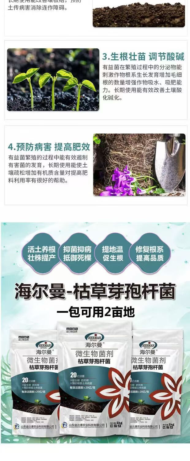 Guanlong Agricultural Chemical Bacillus subtilis compound microbial agent to prevent and control bacterial wilt, root rot, ginger plague and root rot 1000g*3 bags