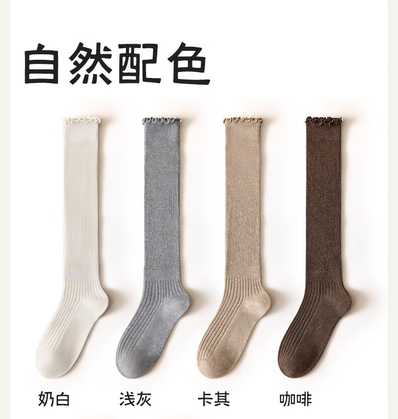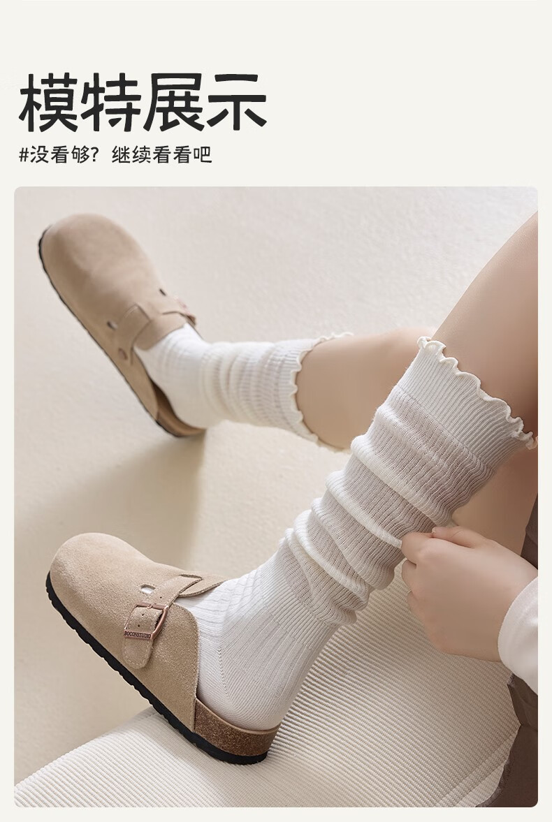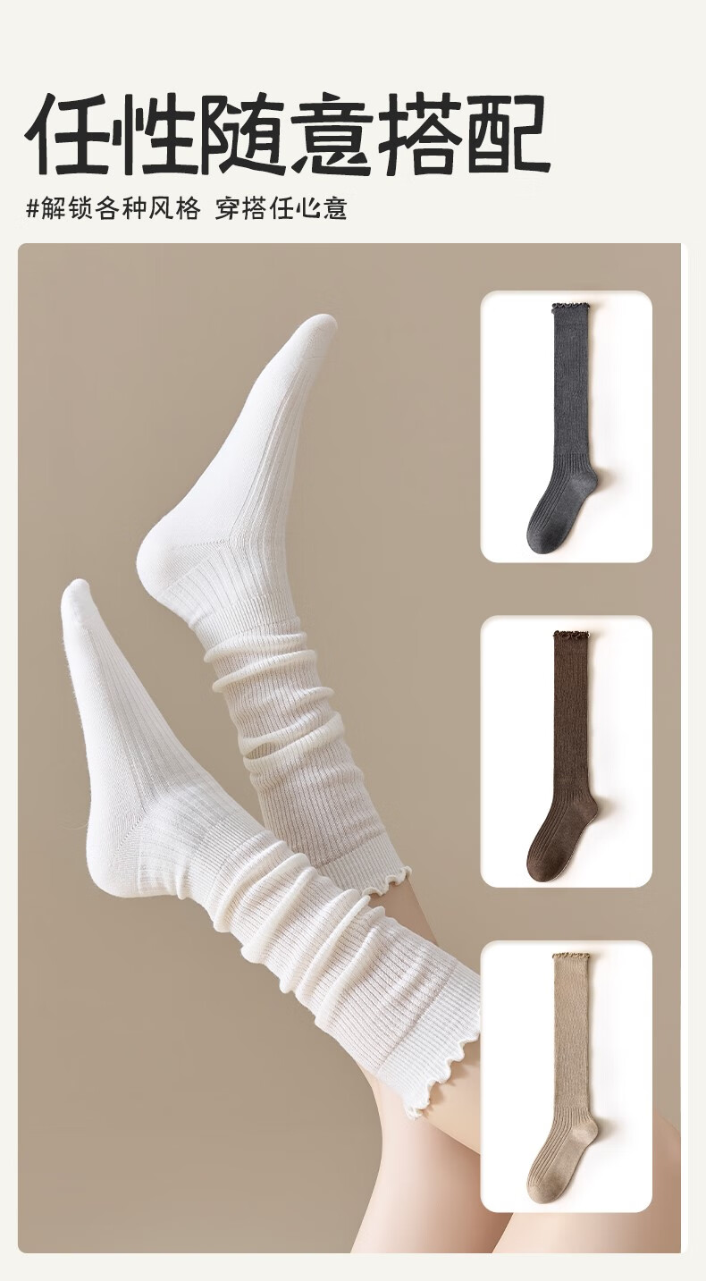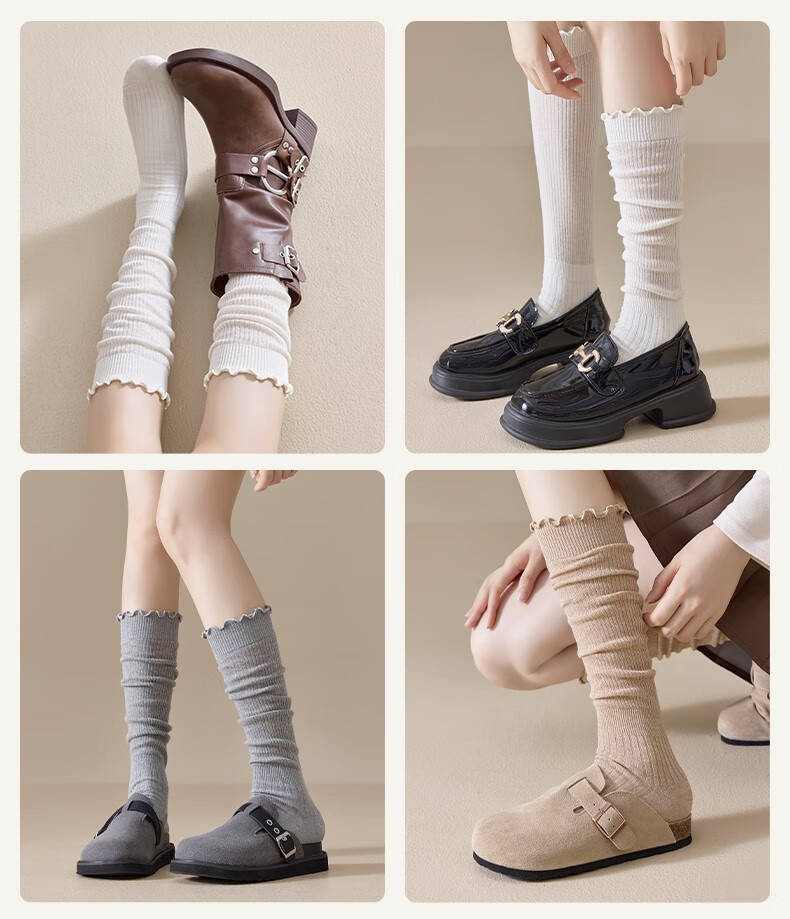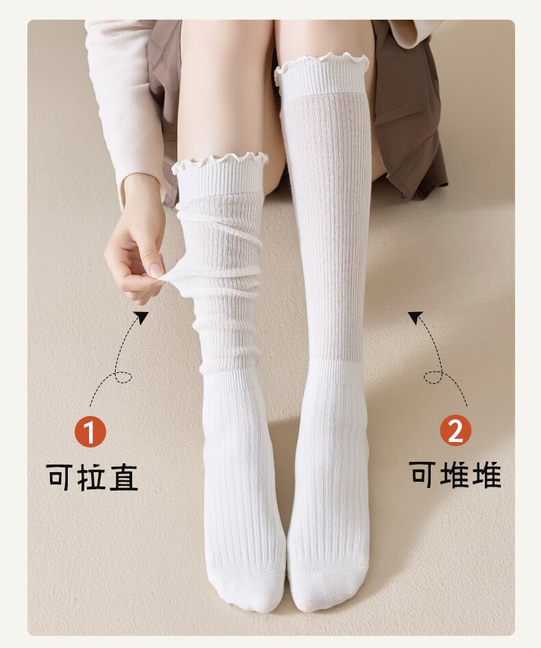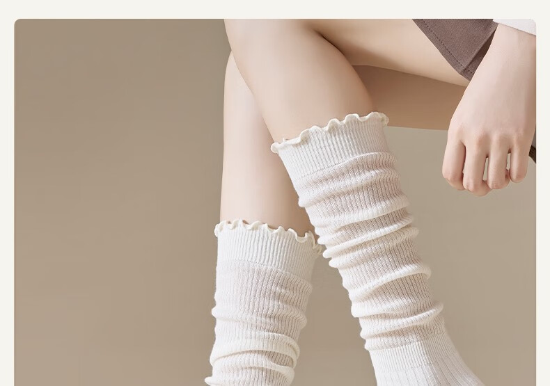 Body-moulding fungus ruffled calf socks for women, spring and autumn style cotton pile socks, slimming jk socks, versatile beautiful leg stockings, 2 pairs of milky white calf socks, 2 pairs, one size fits all (thin, cute and versatile