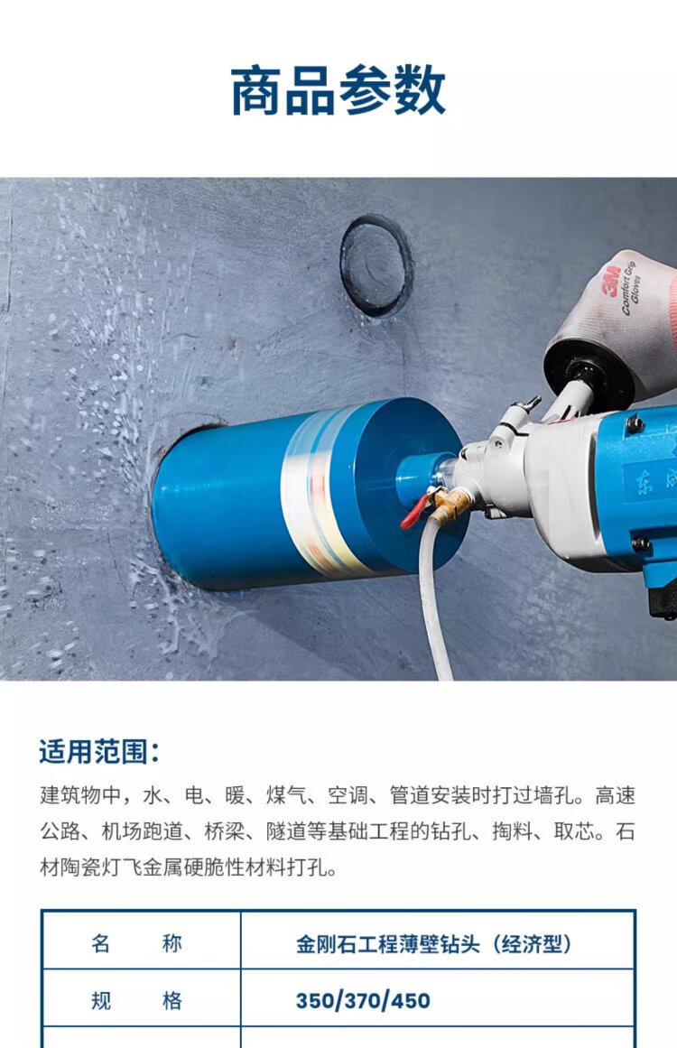 Dongcheng diamond water drill bit water grinding drill rapid concrete air conditioning wall hole punching tool hole punching tool diamond water drill bit 40*370MM