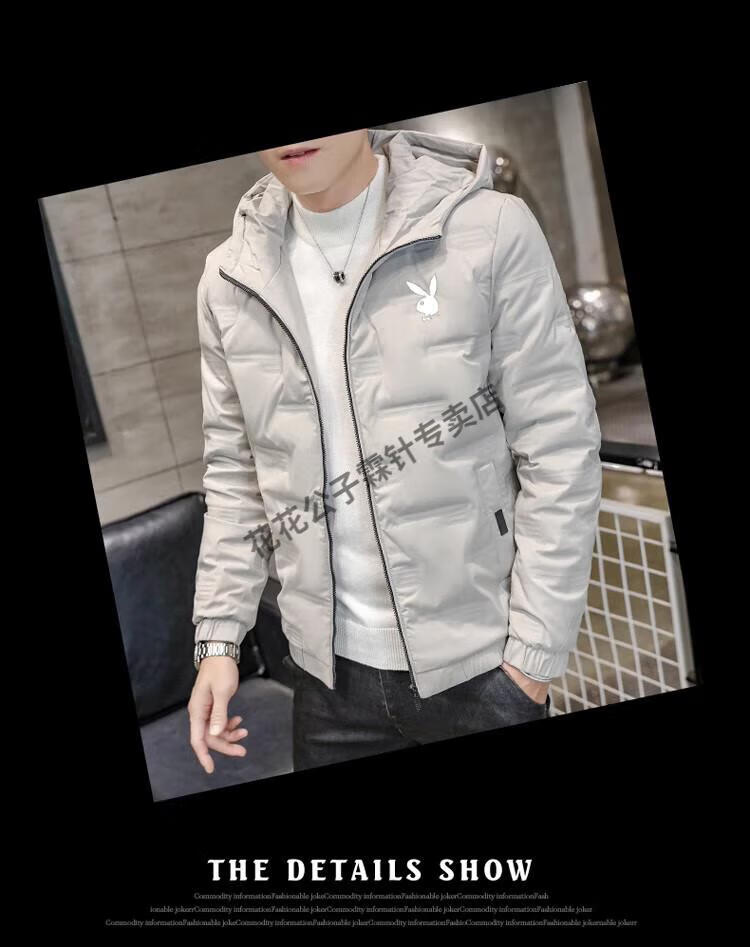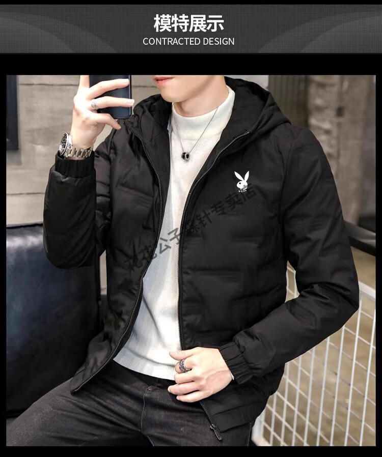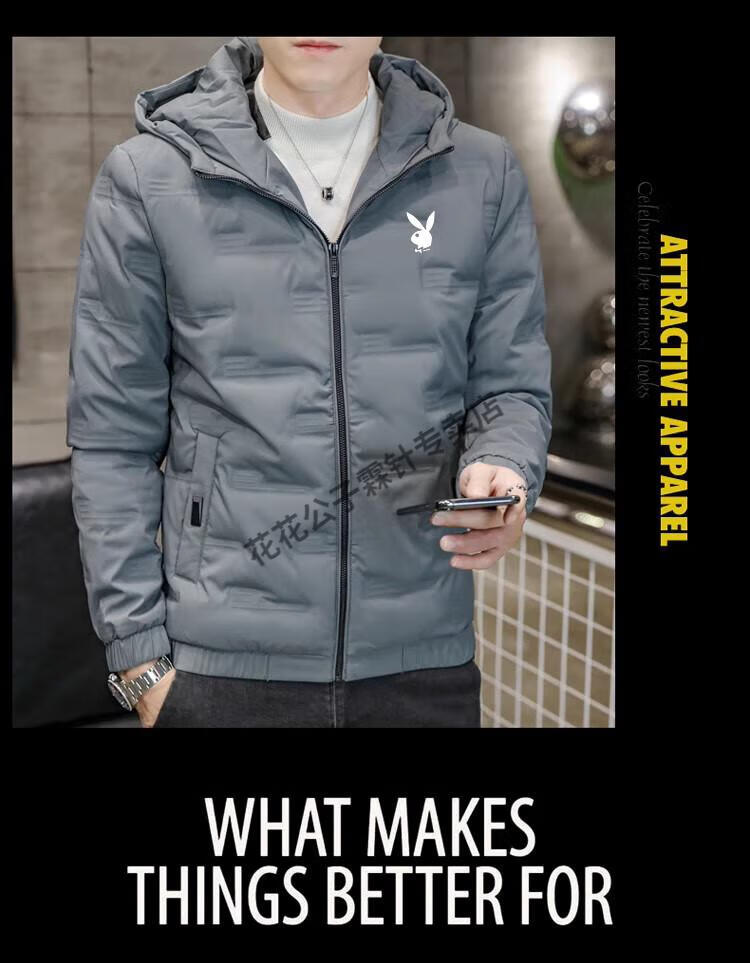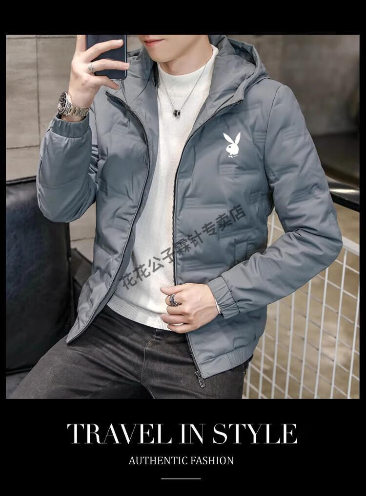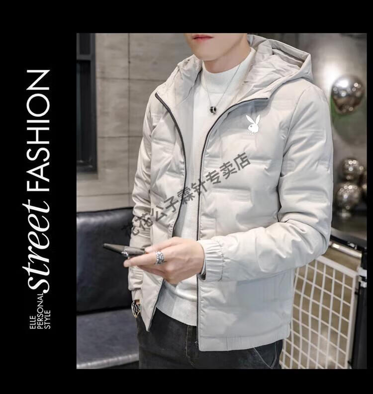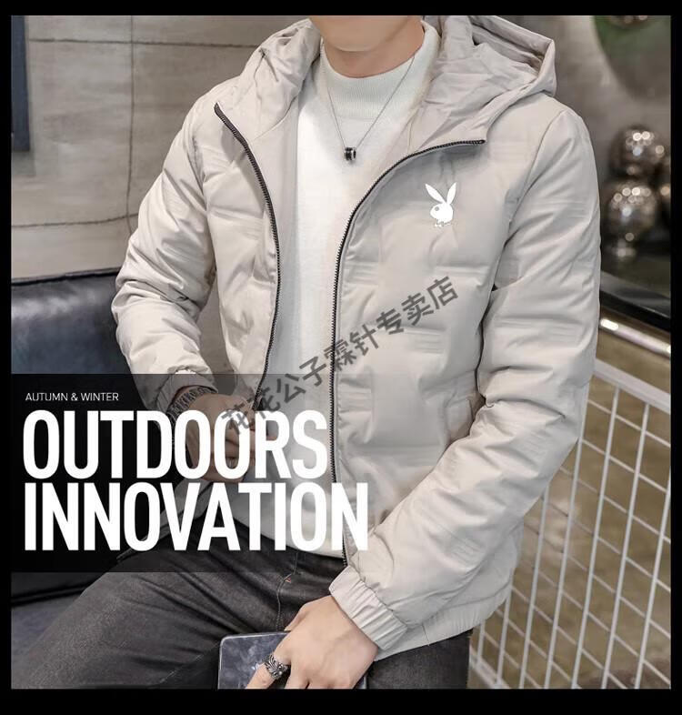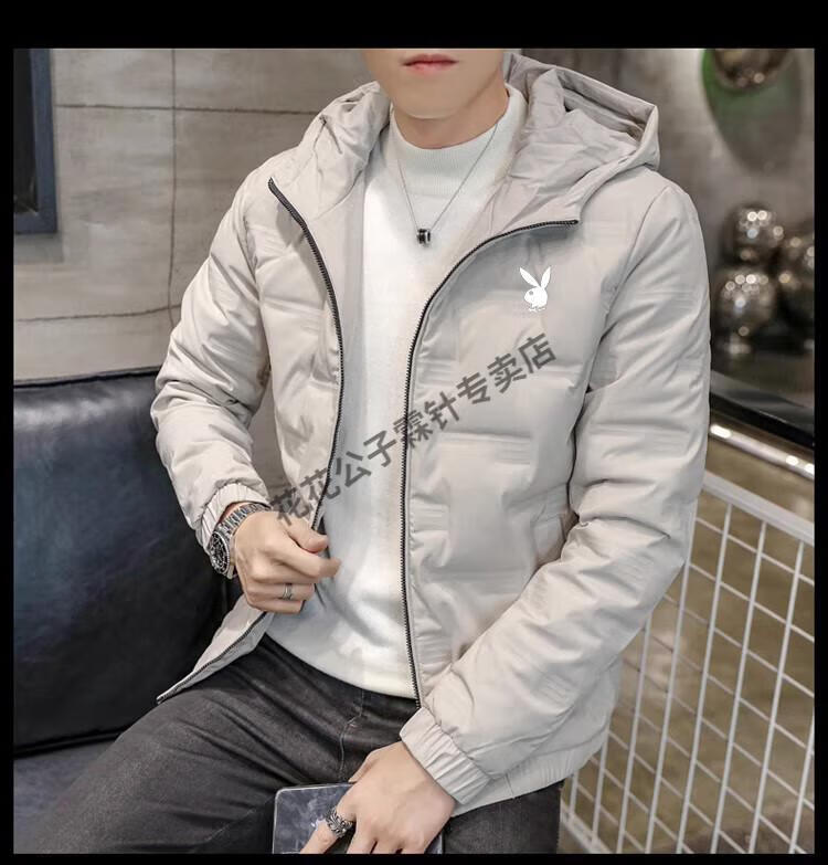 Playboy (PLAYBOY) brand high-end down jacket for men 2024 new winter short thin jacket thickened versatile casual winter wear hooded style 022 Khaki L