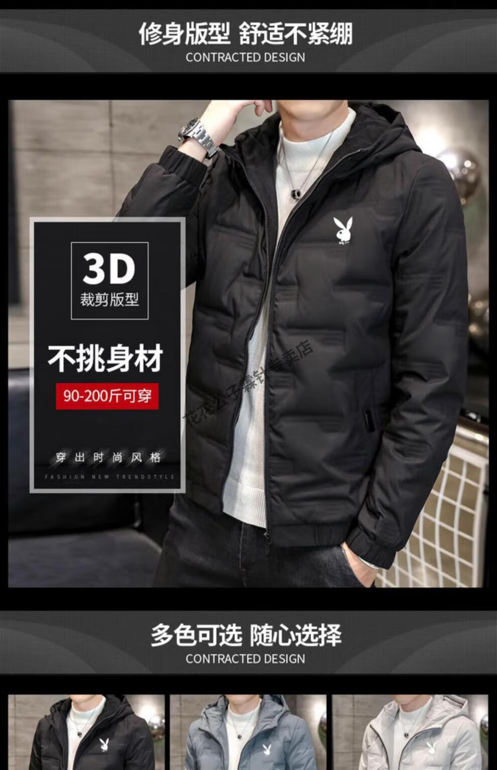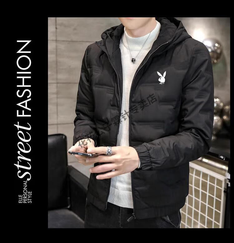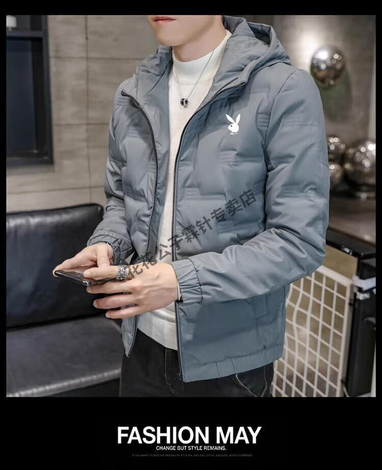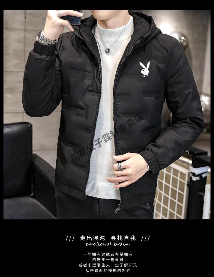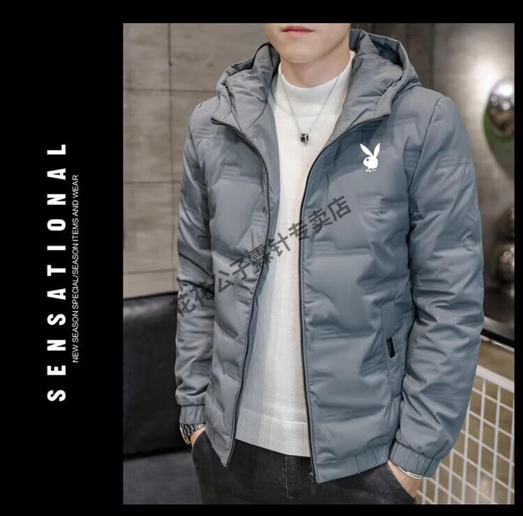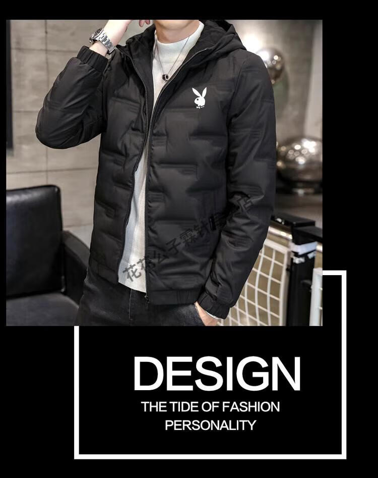 Playboy (PLAYBOY) brand high-end down jacket for men 2024 new winter short thin jacket thickened versatile casual winter wear hooded style 022 Khaki L