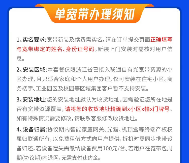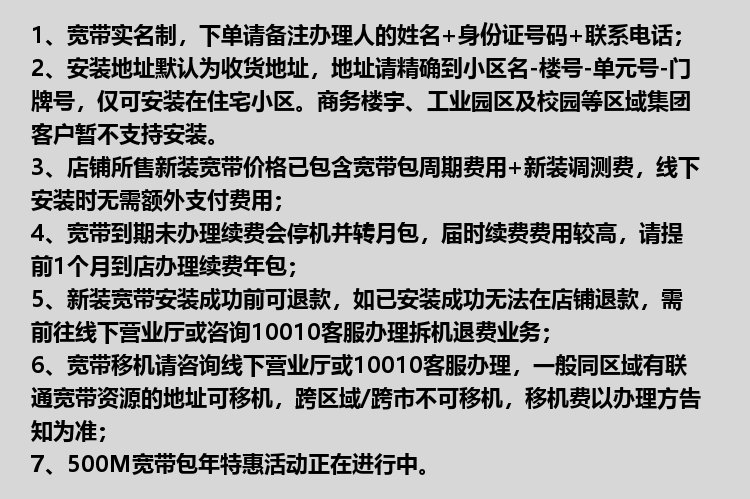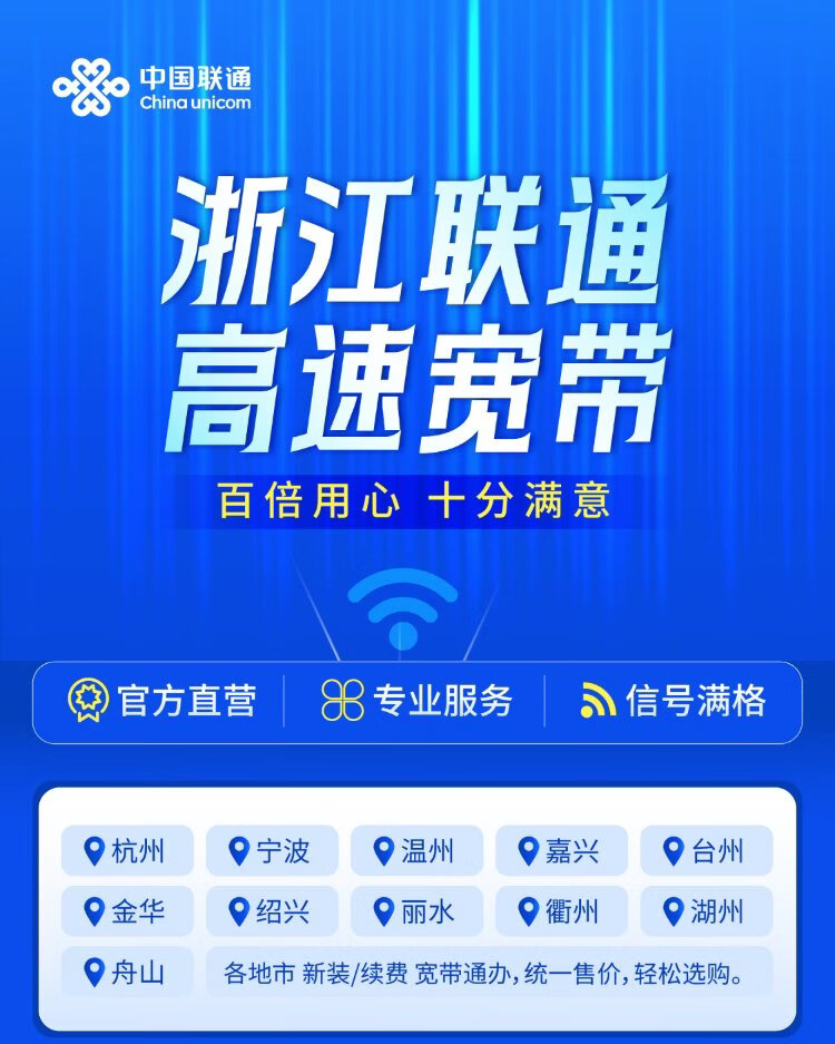 China Unicom Zhejiang province's 500M fiber optic broadband handles new broadband installation in Hangzhou, Ningbo and Wenzhou Zhejiang 500M 12 months new broadband installation (including 100 new installation commissioning fee)
