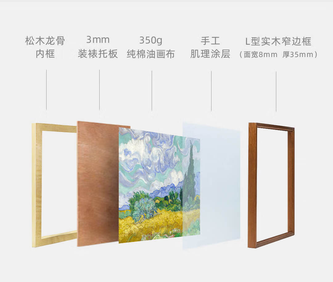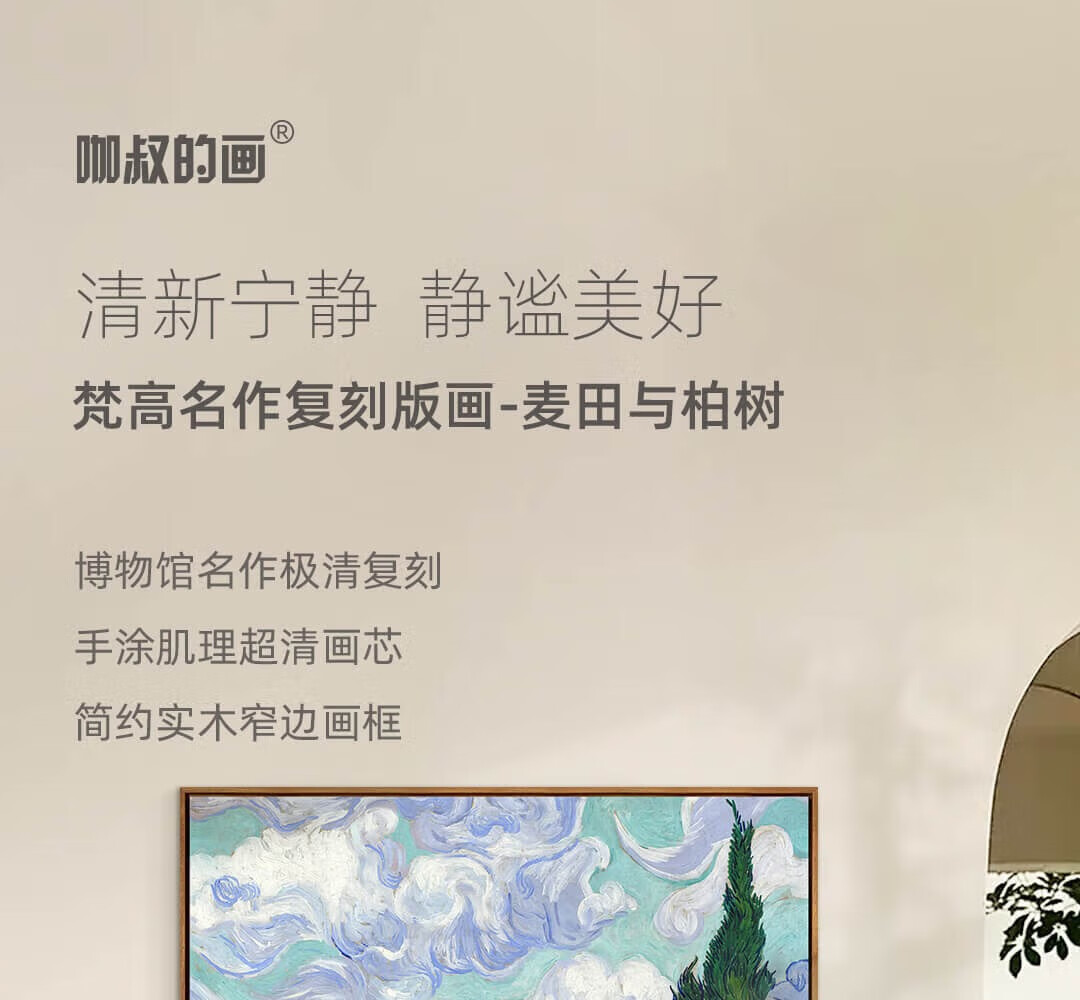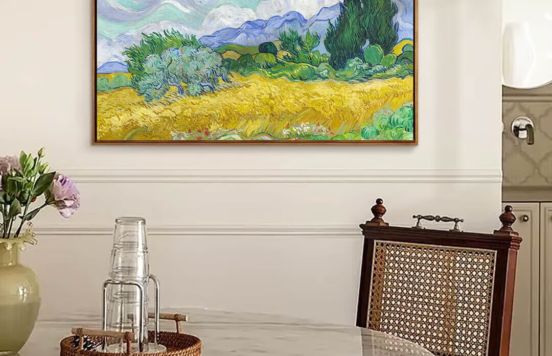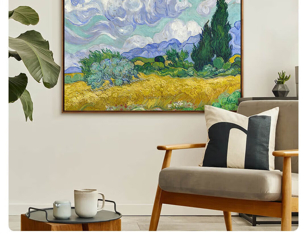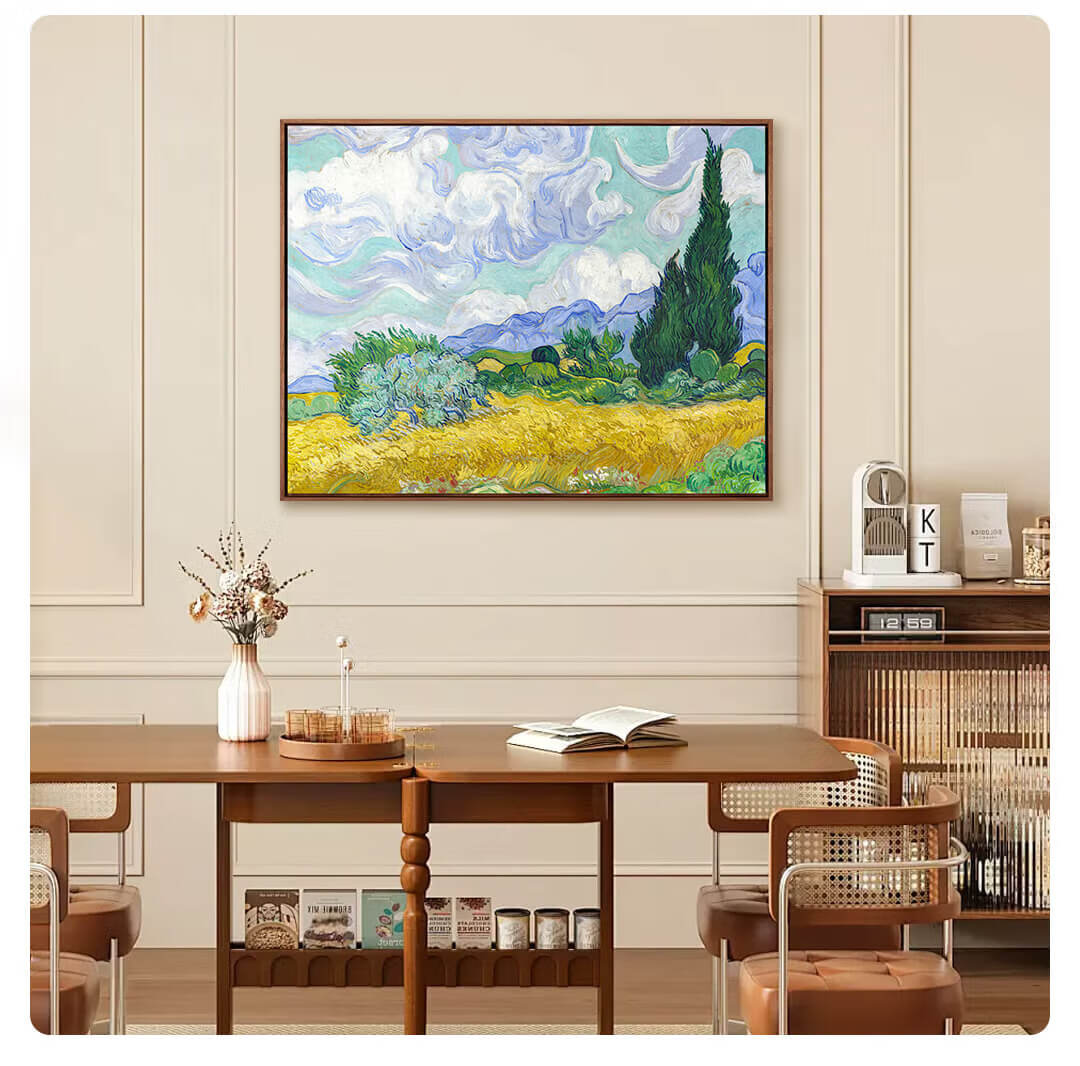 New artist's gift product Van Gogh's "Wheat Field and Cypress Trees" prints, modern living room and dining room decoration paintings, entrance corridor hanging paintings, Wheat Field and Cypress Trees - Size M 55*70cm, Sapele wood L frame 08/35mm