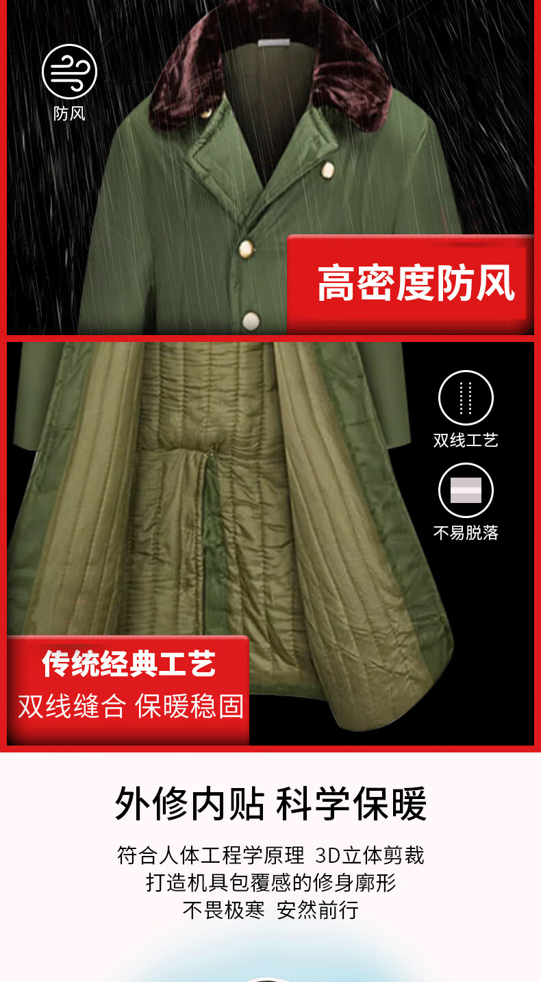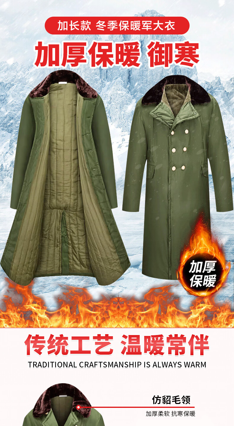 Bo Na Ling Green Military Coat Men's Winter Thickened and Long Security Coat Cold-proof Clothes Northeastern Old-fashioned Jacket Coat Military Green Coat