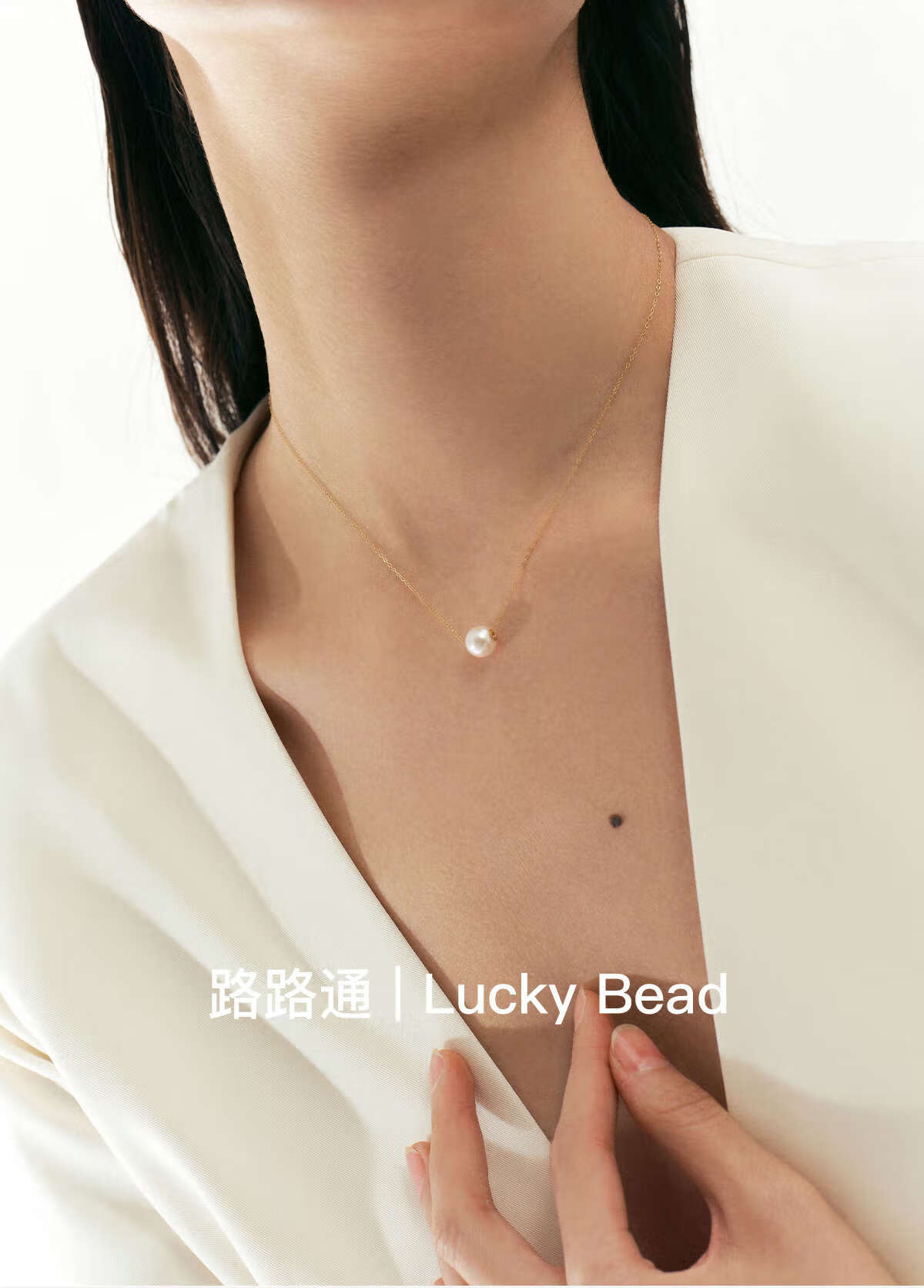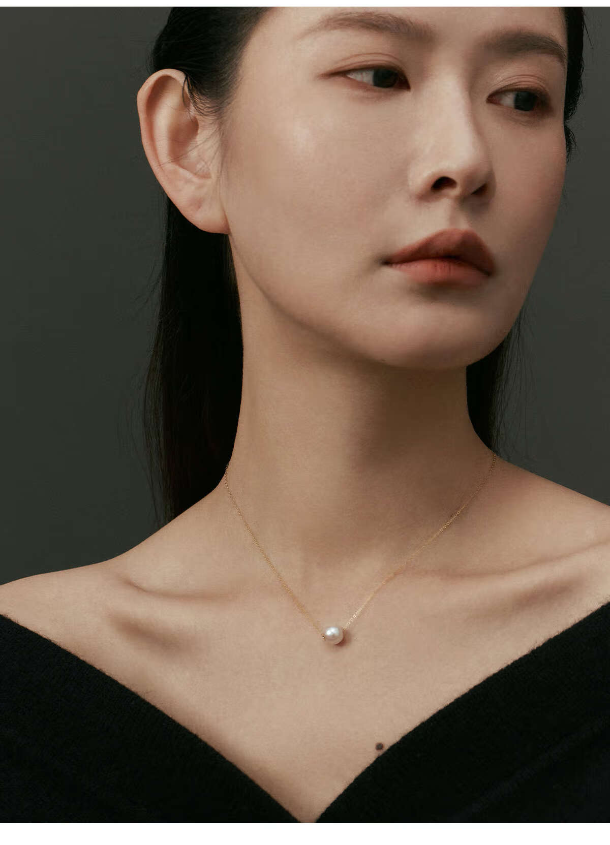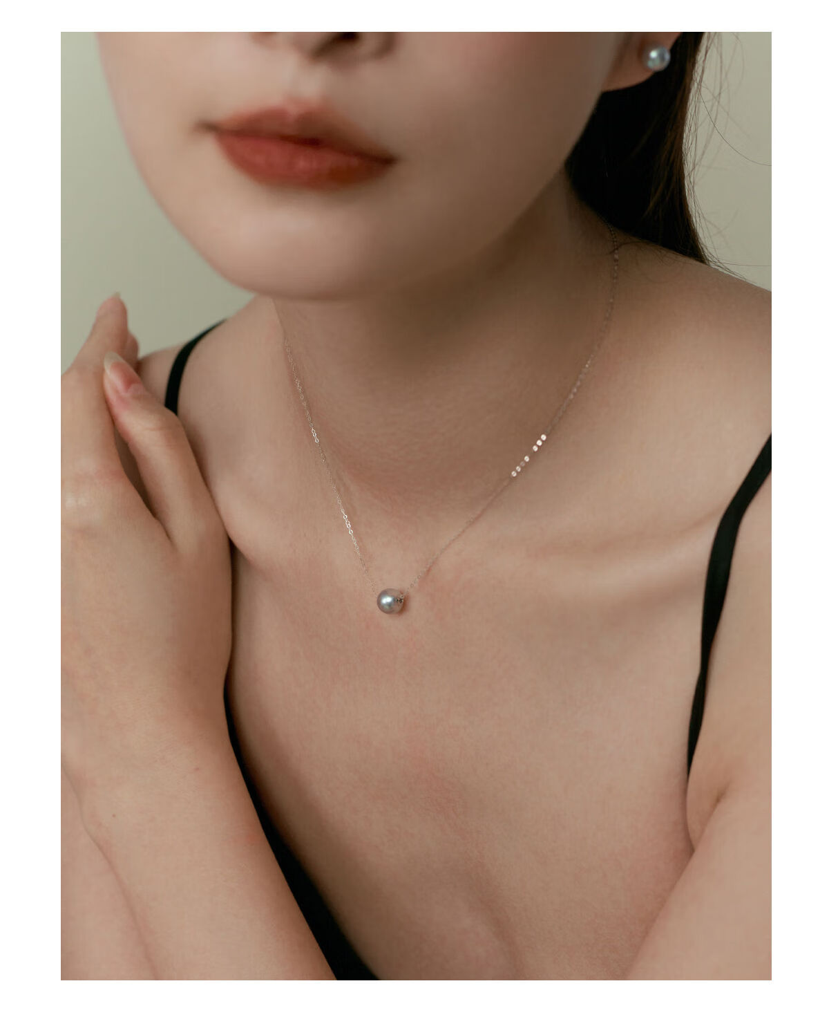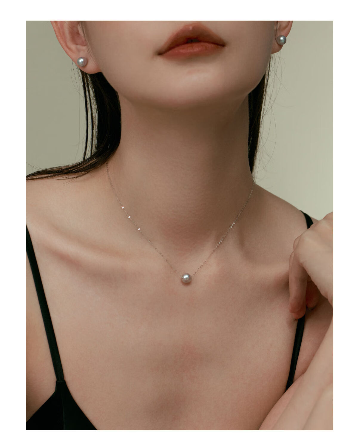 Shengli Hesheng HUSSAIN Passepartout 18K gold pearl necklace Akoya natural sea water bead pendant clavicle chain necklace white gold 8-8.5mm fresh water beads