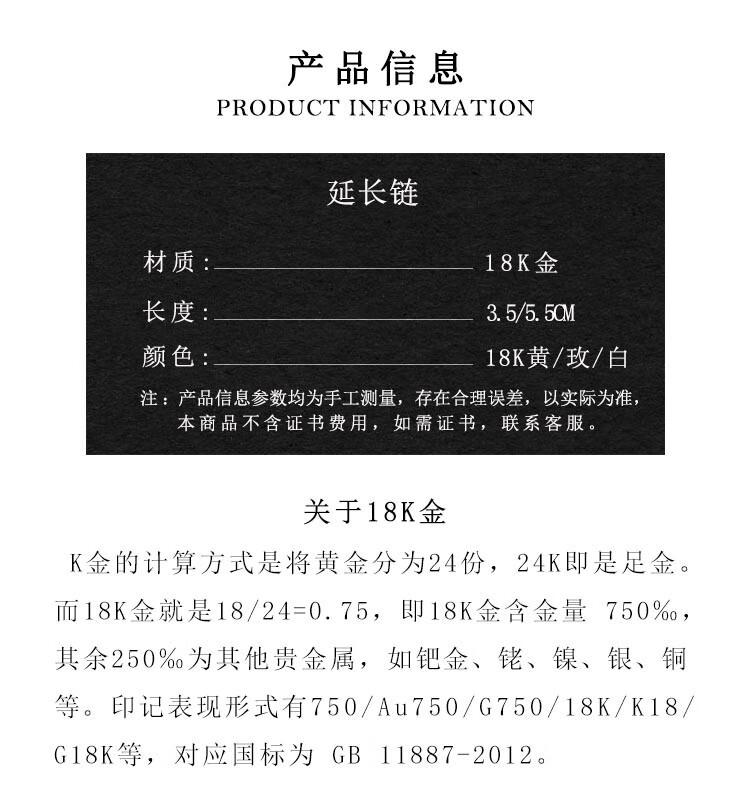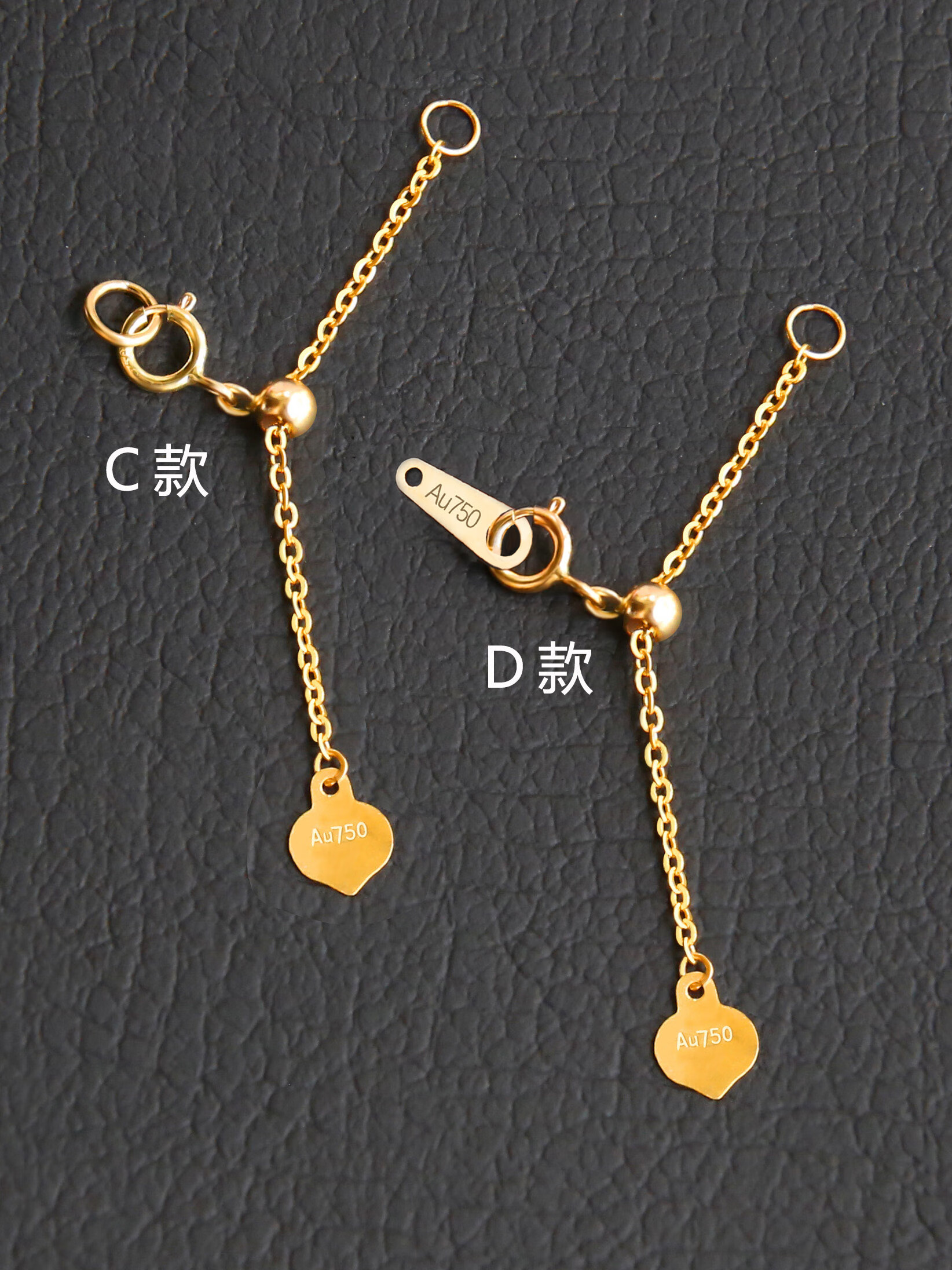 Shengli diy extension chain button 18K gold accessories pearl bracelet necklace Au750 gold rose gold adjustable tail chain K yellow O chain 1.3mm thick B style 5.5cm