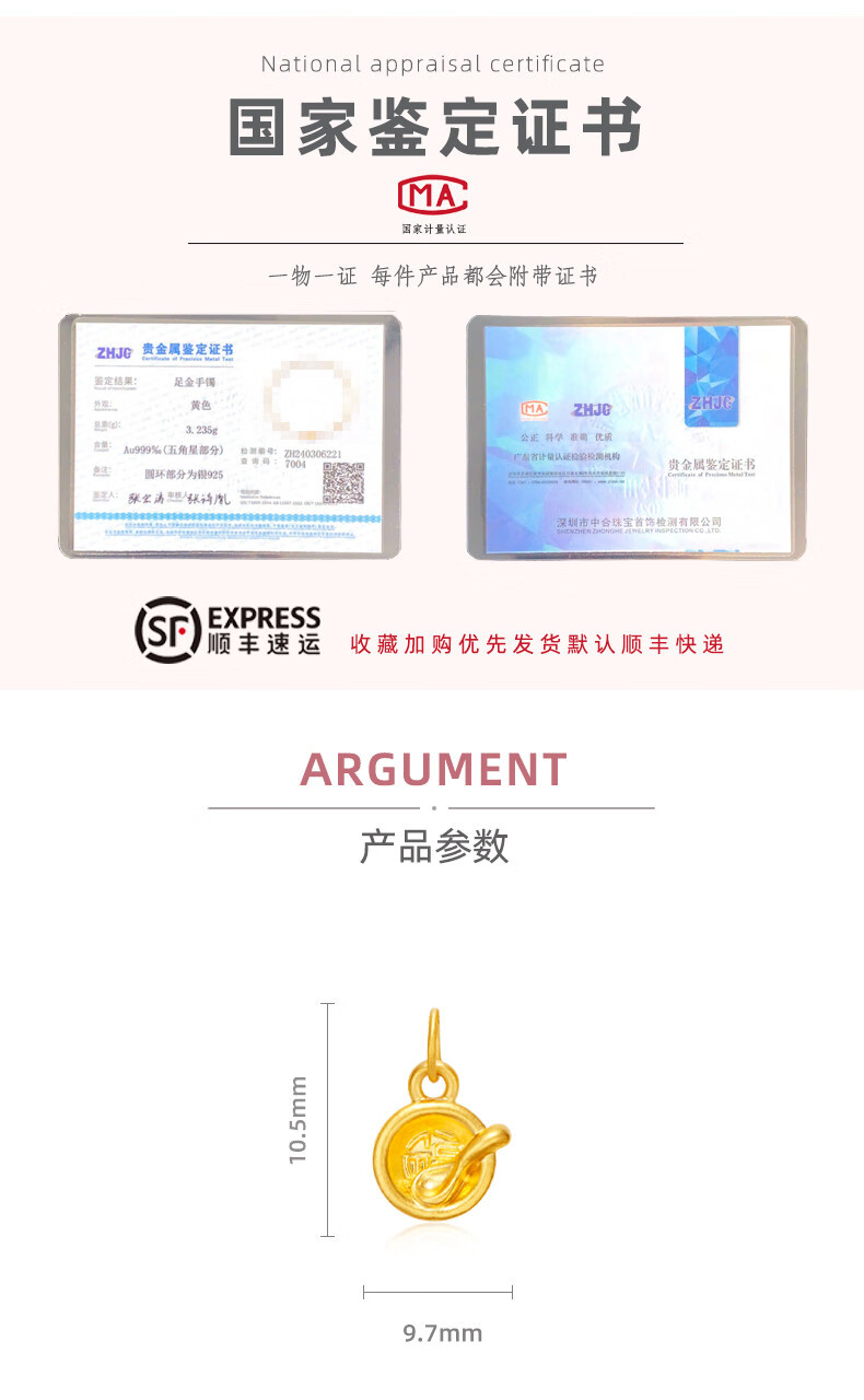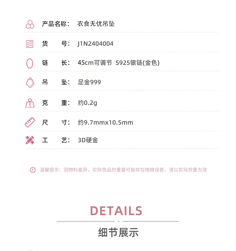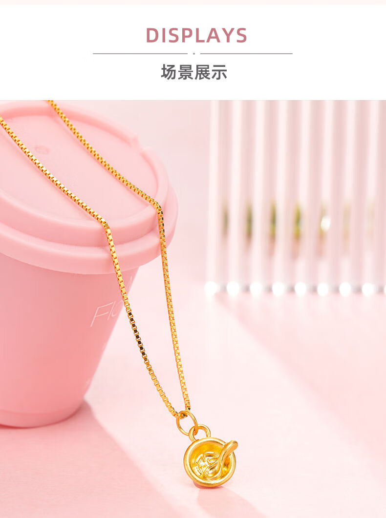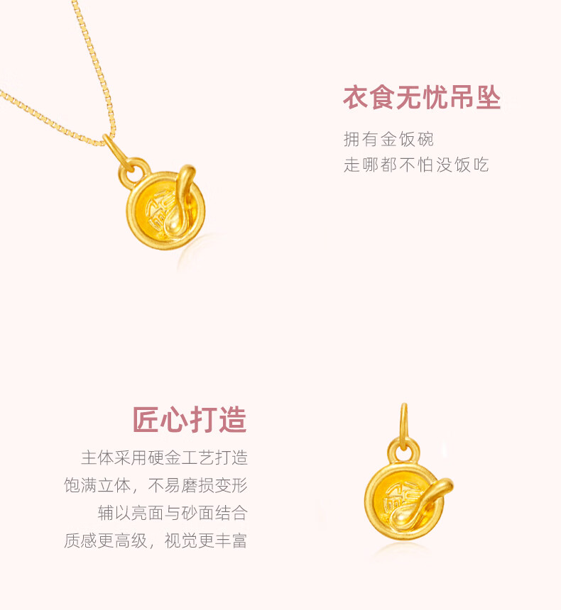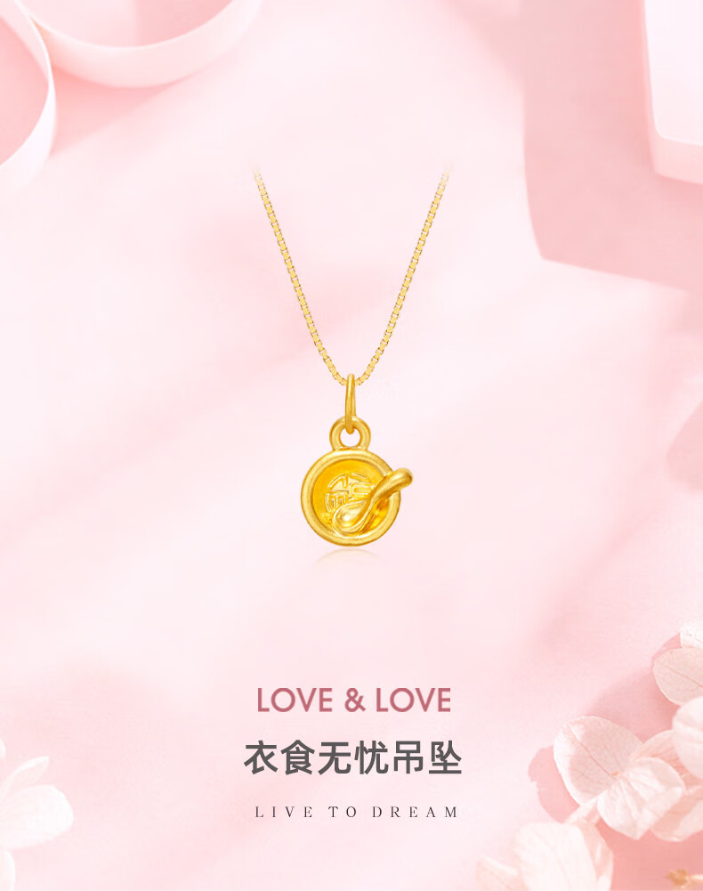 Shengli Food and clothing worry-free pendant pure gold 999 gold pendant necklace bowl and spoon for baby full month baby food and clothing worry-free pendant about 0.2g, free gold silver necklace