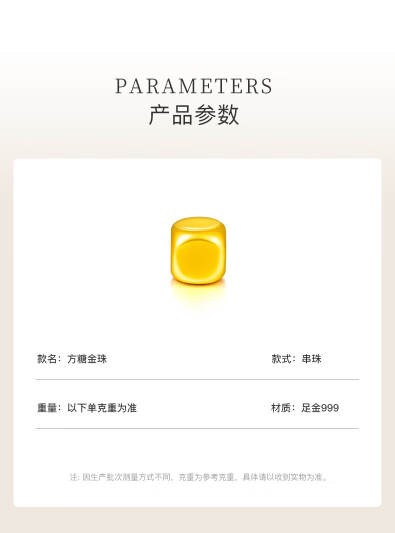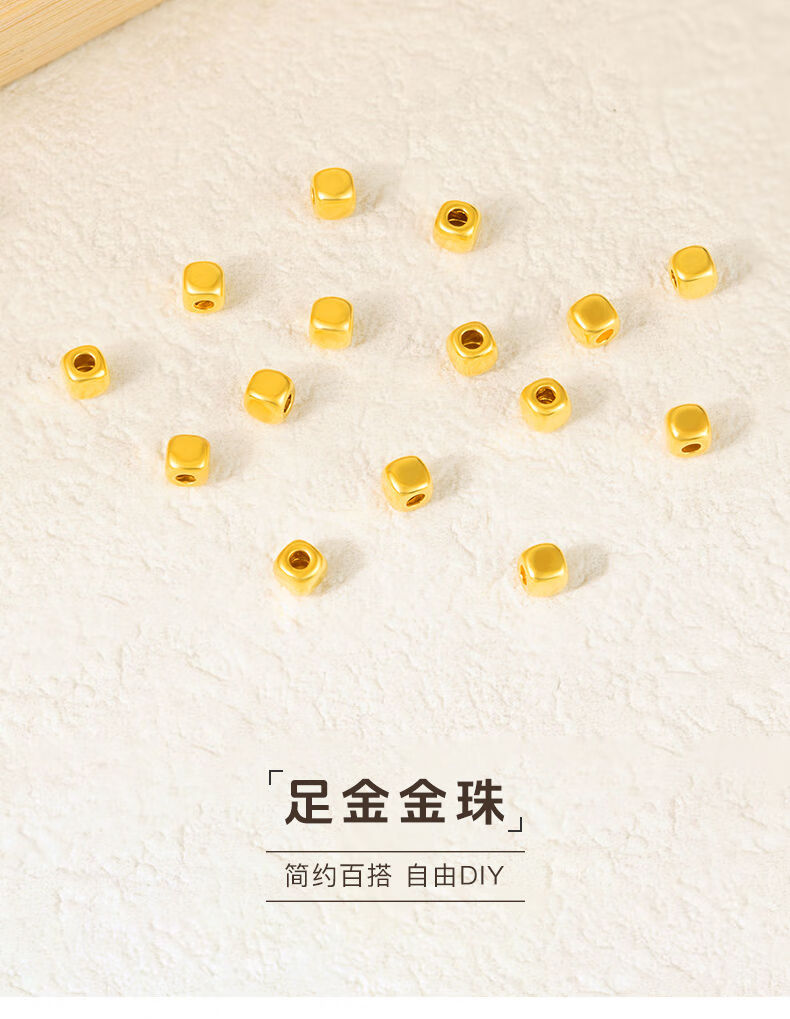 Holy glass gold small sugar cube gold beads DIY clavicle chain bracelet necklace pure gold 999 transfer beads square pendant about 0.03g - single - 3mm sugar cube gold beads