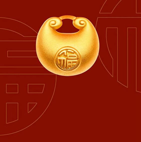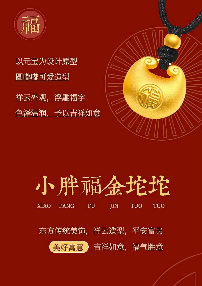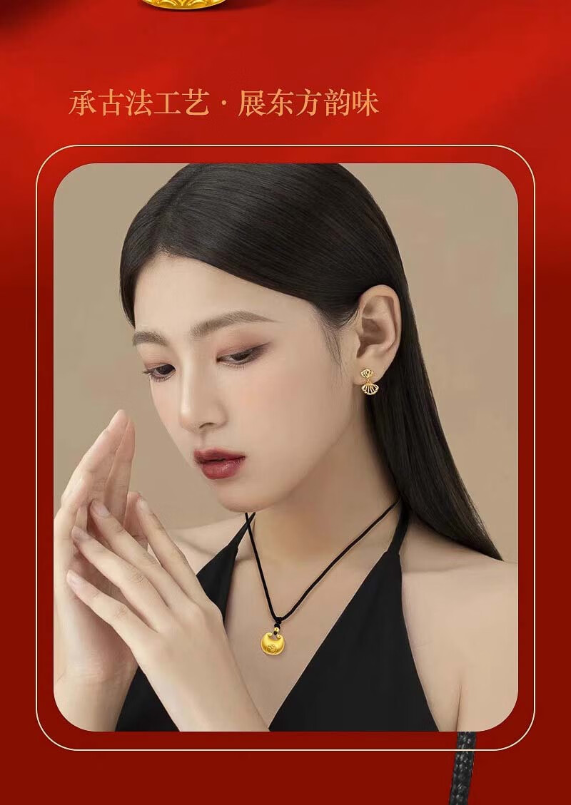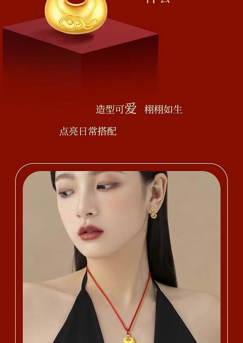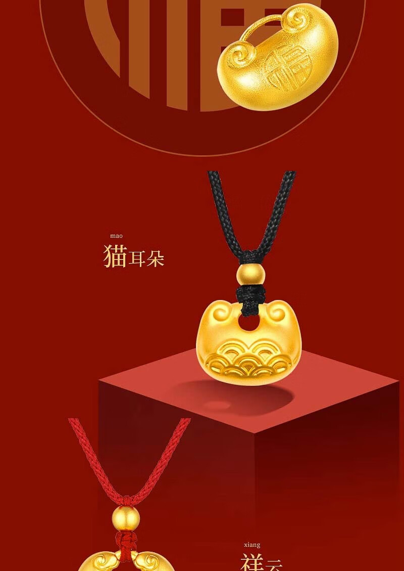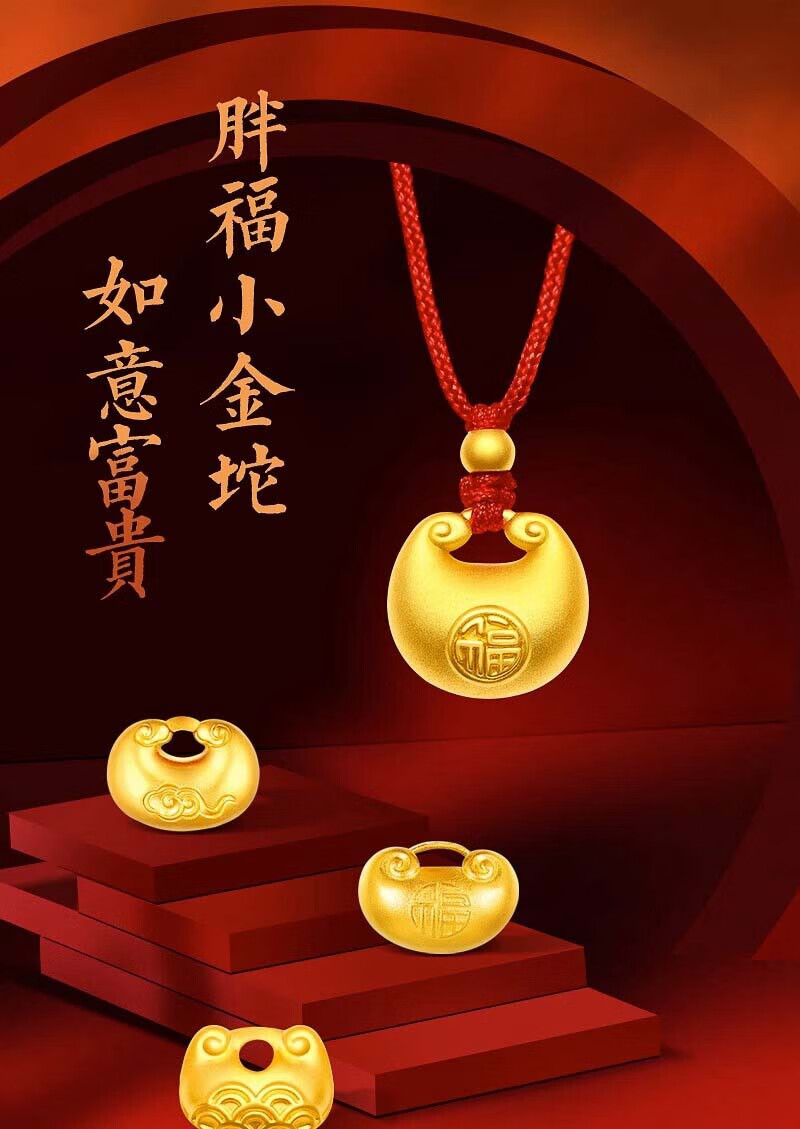 Shengli gold little fat blessing necklace pure gold covered with silver 9999 safety lock pendant small gold lump full moon birthday gift for girlfriend red rope style