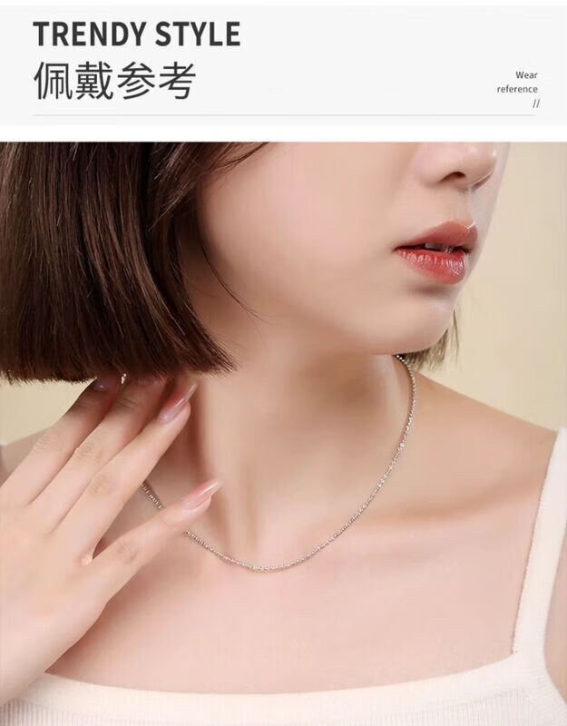 Luruo 2.0mm imported Italian diamond chain 18K gold necklace platinum chain with jade pendant chain for women sterling silver white gold 50cm