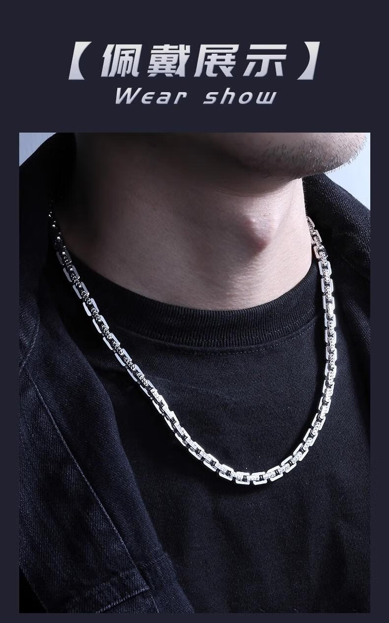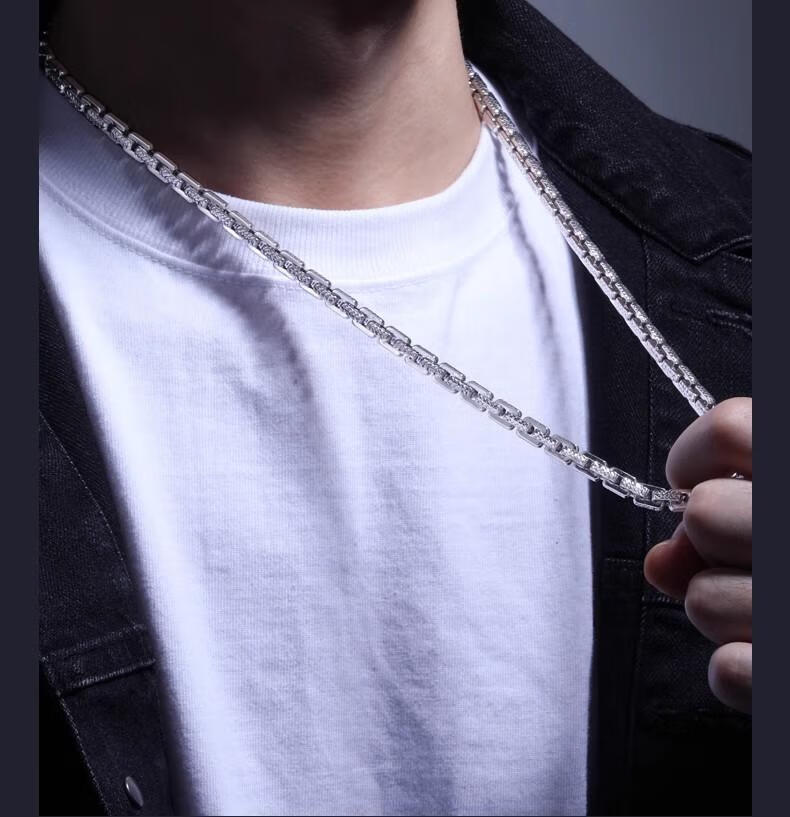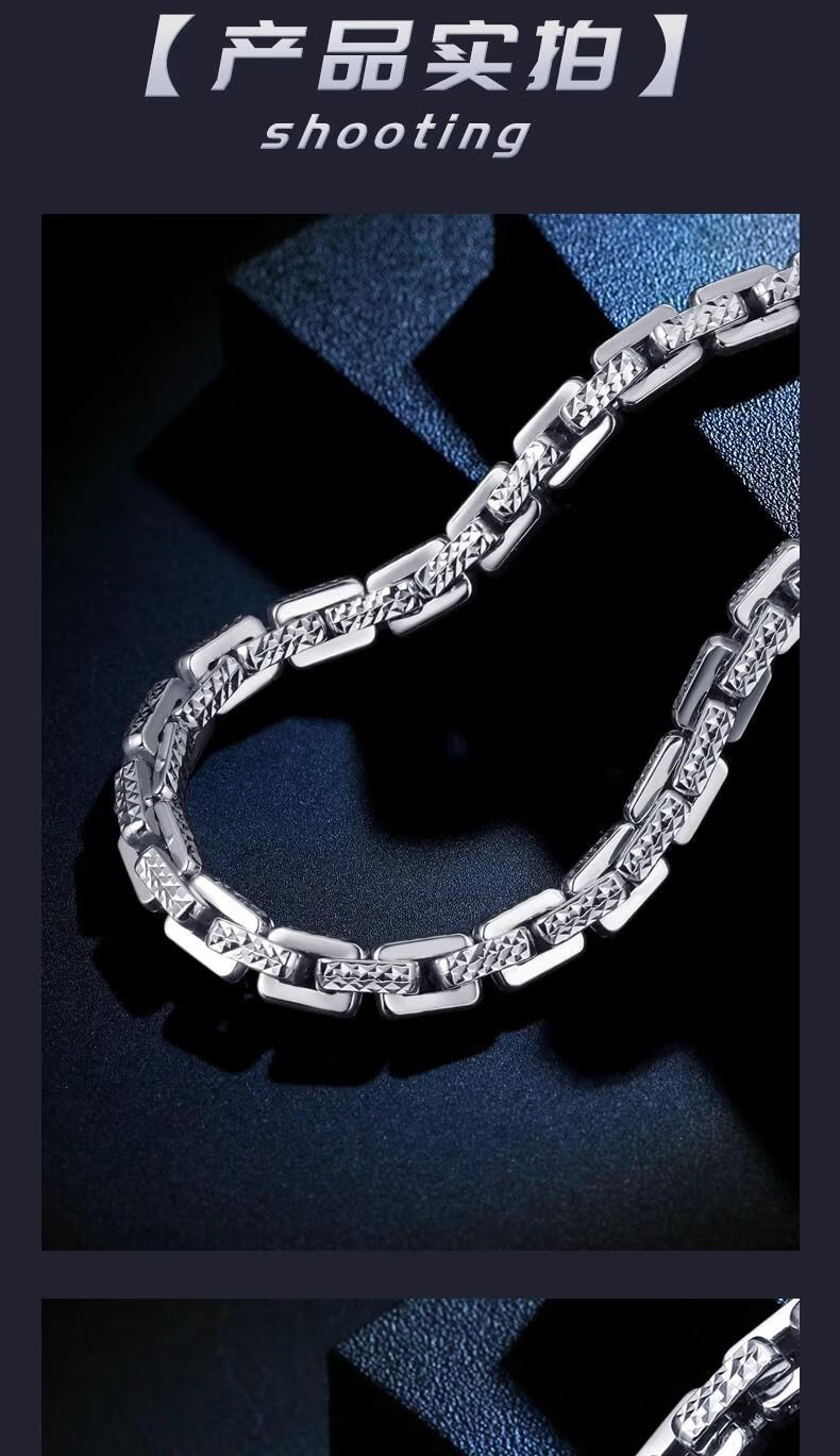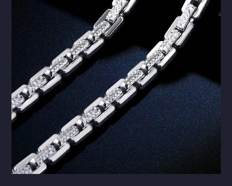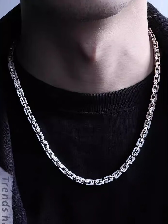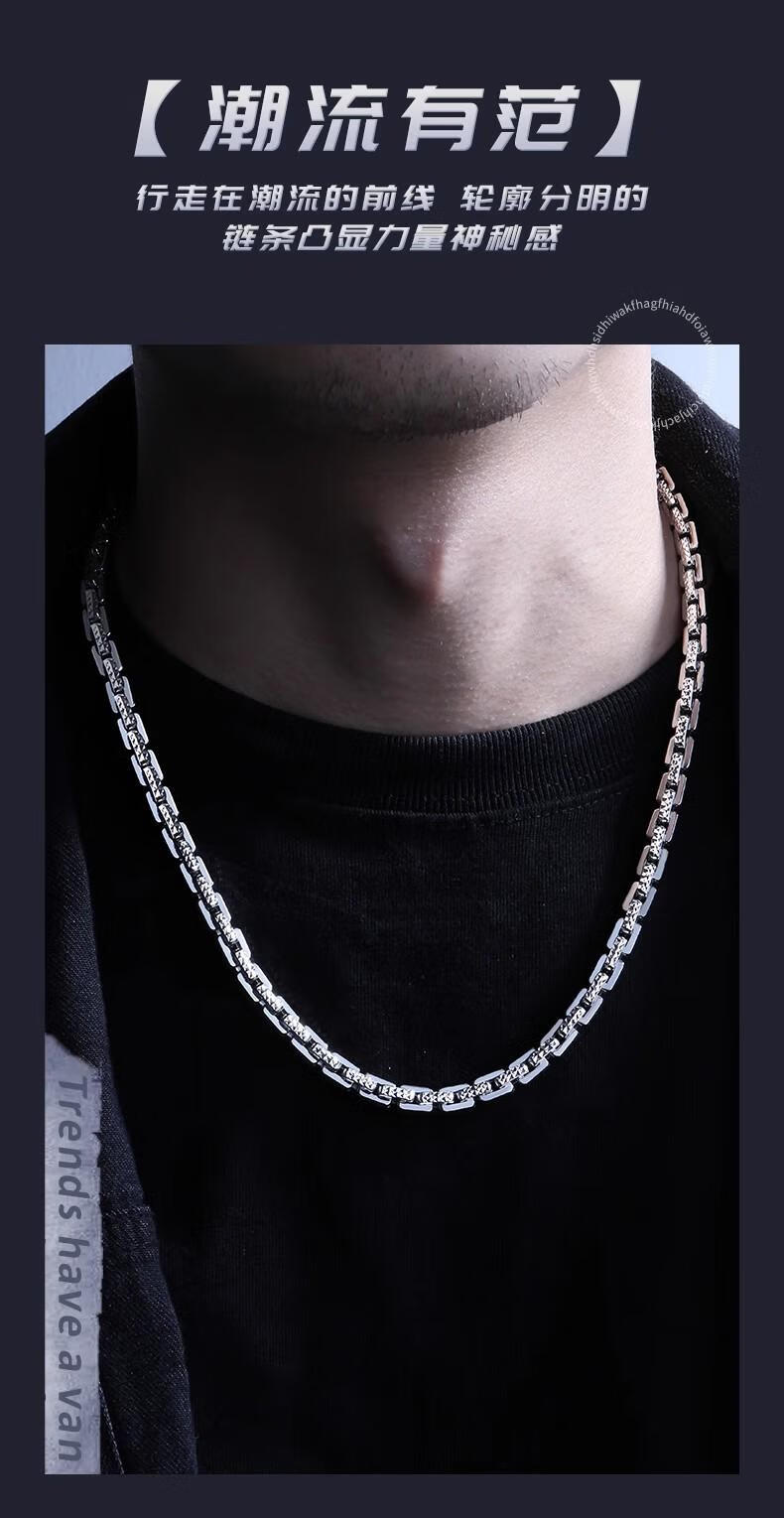 Luruo S999 sterling silver necklace men's platinum texture necklace simple platinum-plated men's chain car flower dense card necklace versatile and fashionable 45cm