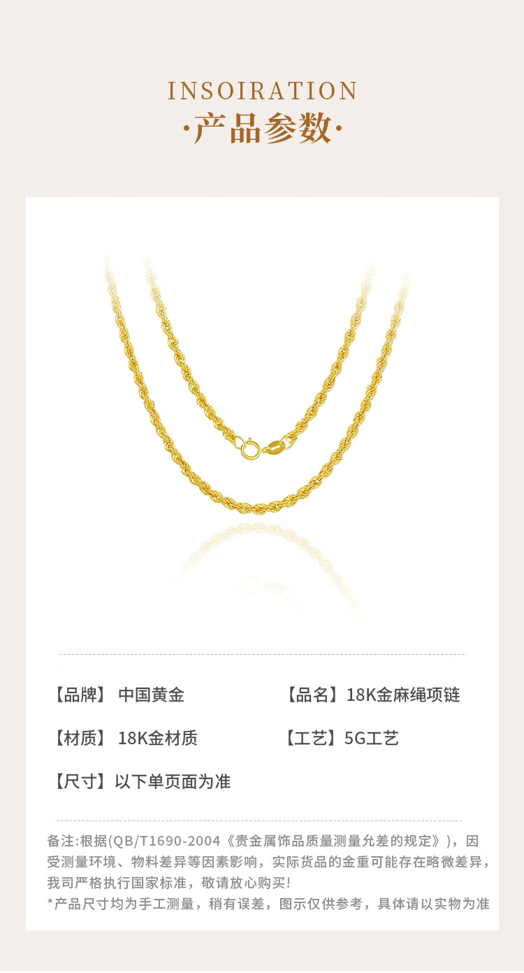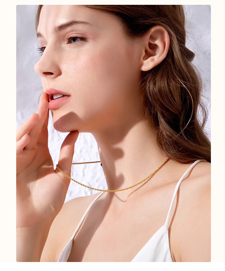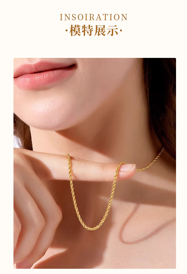 CHINA GOLD 18K gold hemp rope necklace women's new versatile plain gold clavicle chain holiday birthday gift for girlfriend and lover 18K gold hemp rope necklace