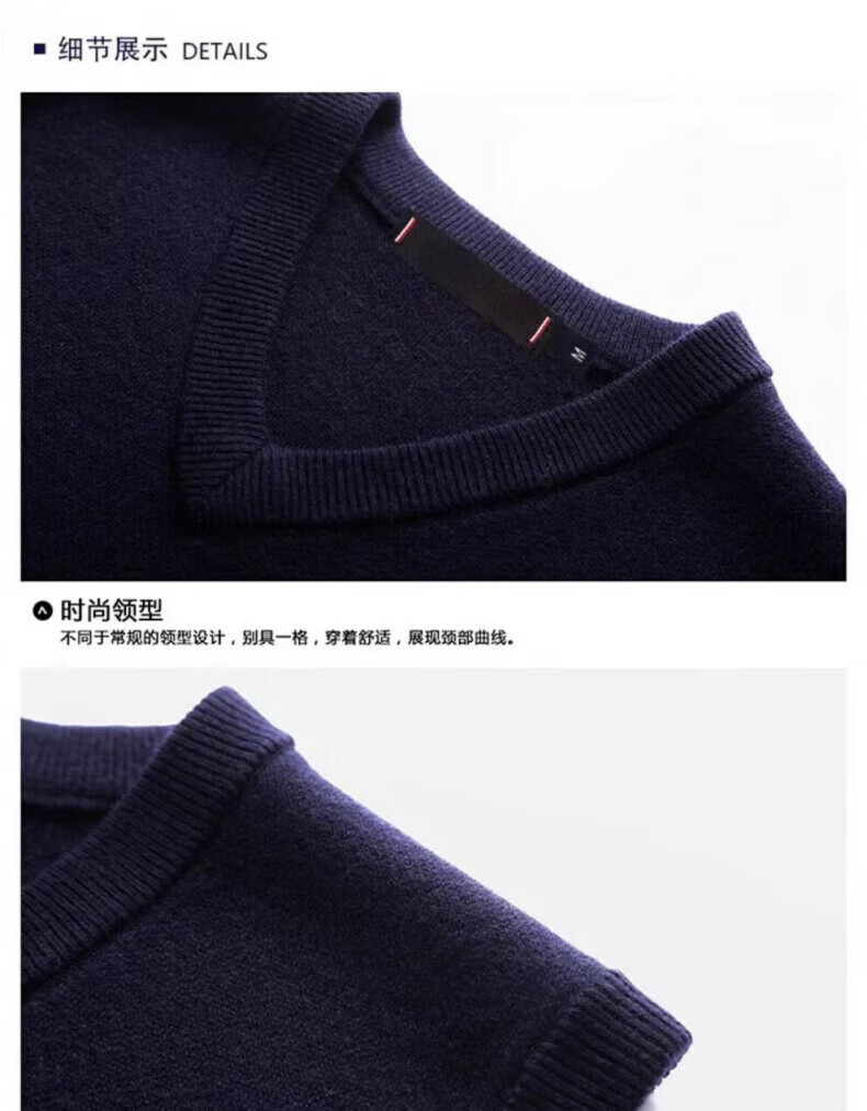 TOME BORNEKTomm Tommy men's wool vest autumn and winter round V-neck vest sweater thickened warm sweater vest navy blue V-neck L 175