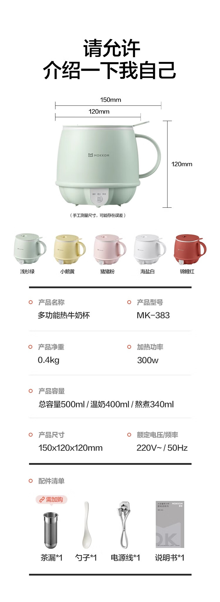 Japan MUJU office hot milk artifact home multi-functional health cup breakfast cup cooking noodle health pot sea salt white (free spoon) 0.5L