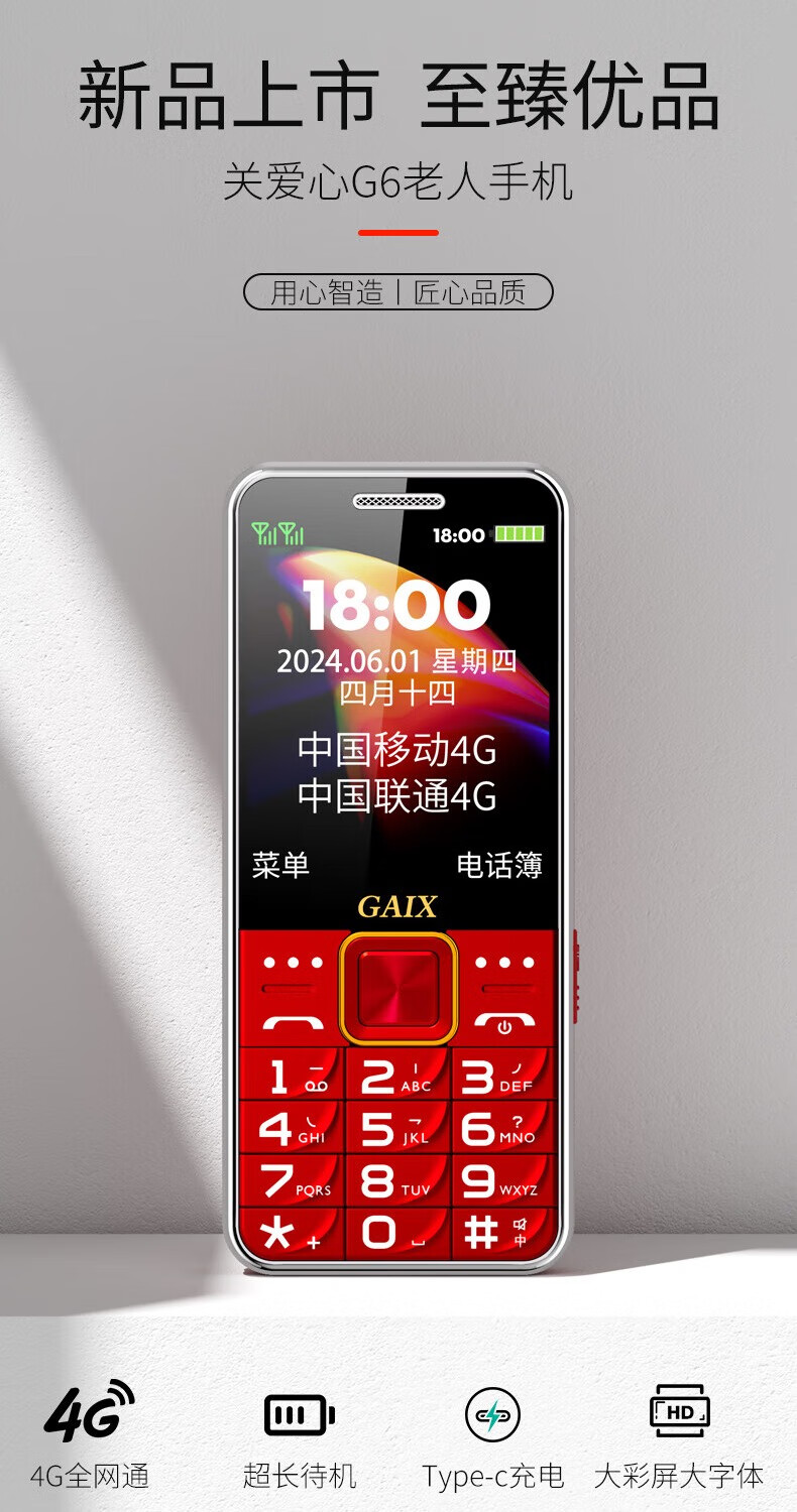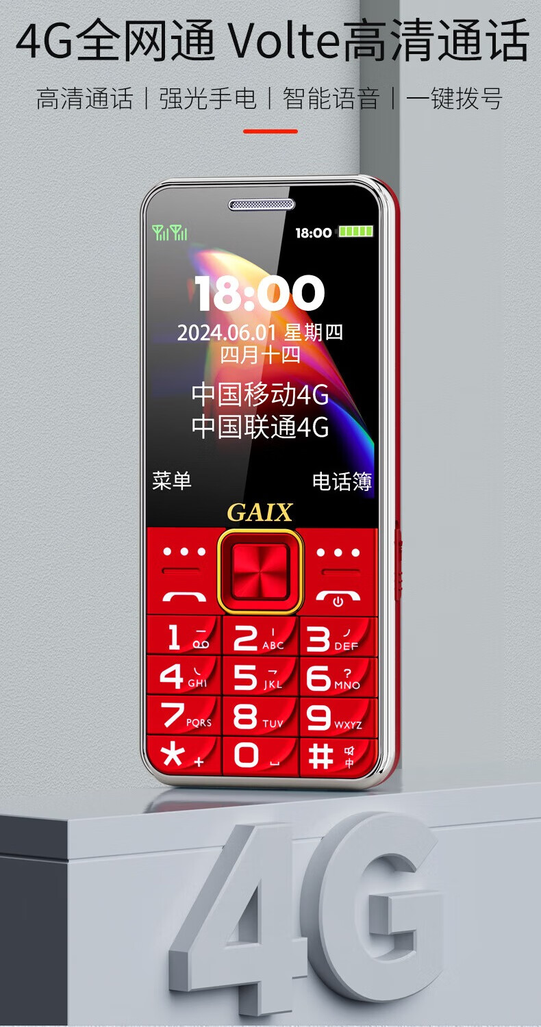 Xinggaishi 2025 brand new genuine 4G full Netcom mobile phone for the elderly with super long standby Mobile China Unicom Telecom Radio and Television 4g big characters loud dual card dual standby functional phone for students and the elderly red 4G full Netcom environmentally friendly version without charger