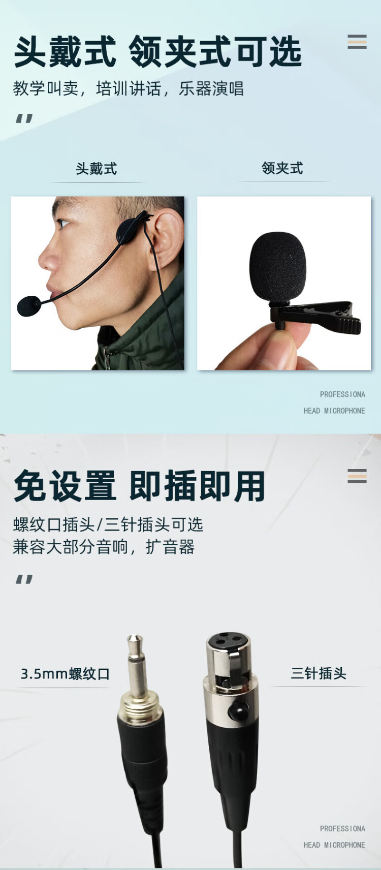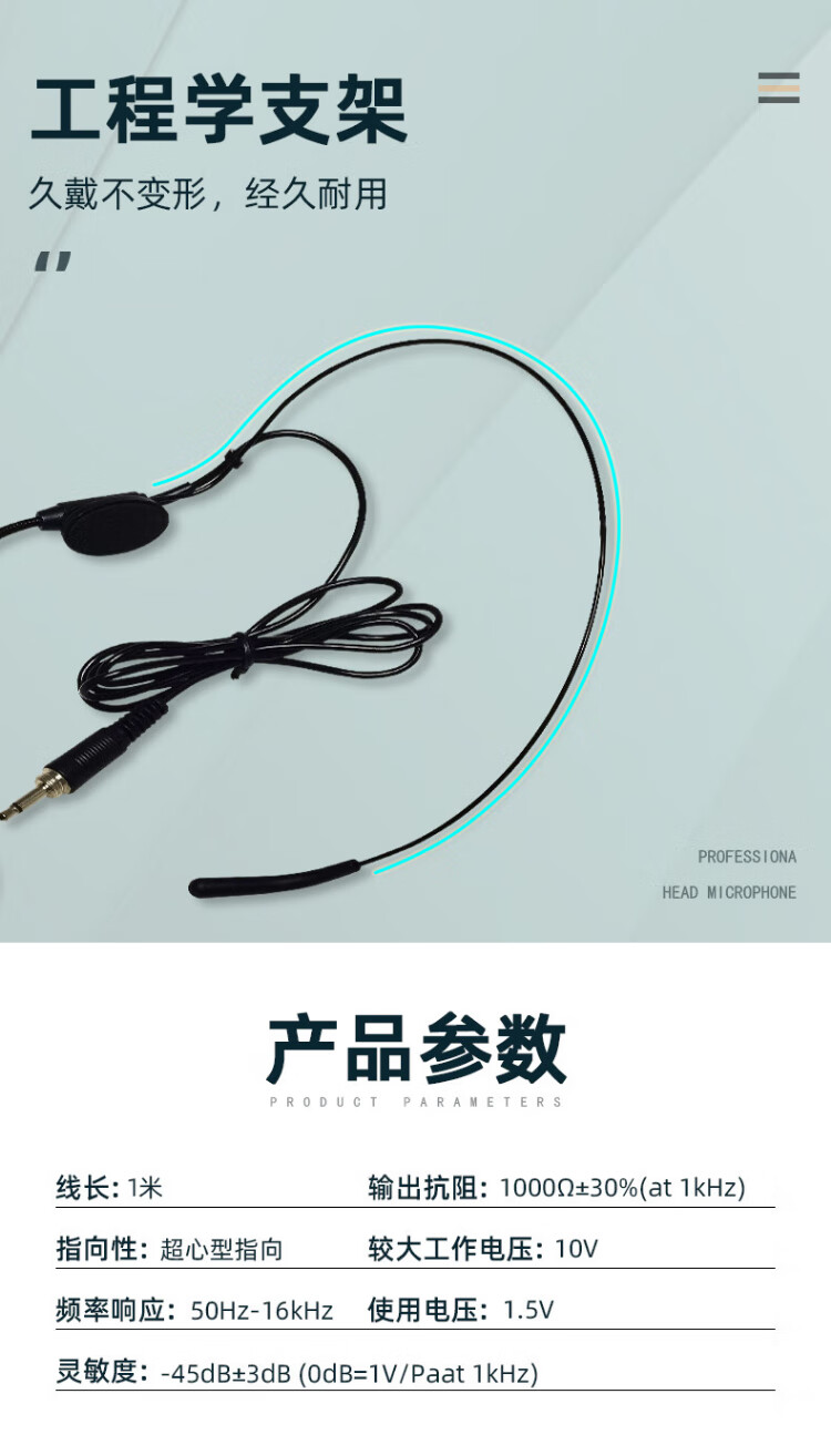 European and American sound universal head-mounted wired headset cable for stage performance wireless Little Bee audio amplifier teacher-specific ear-hook microphone skin color flesh-colored invisible ear-hook microphone cable three-pin/three-hole XLR head (universal stage type) skin color headset plug and play, can not be thrown away
