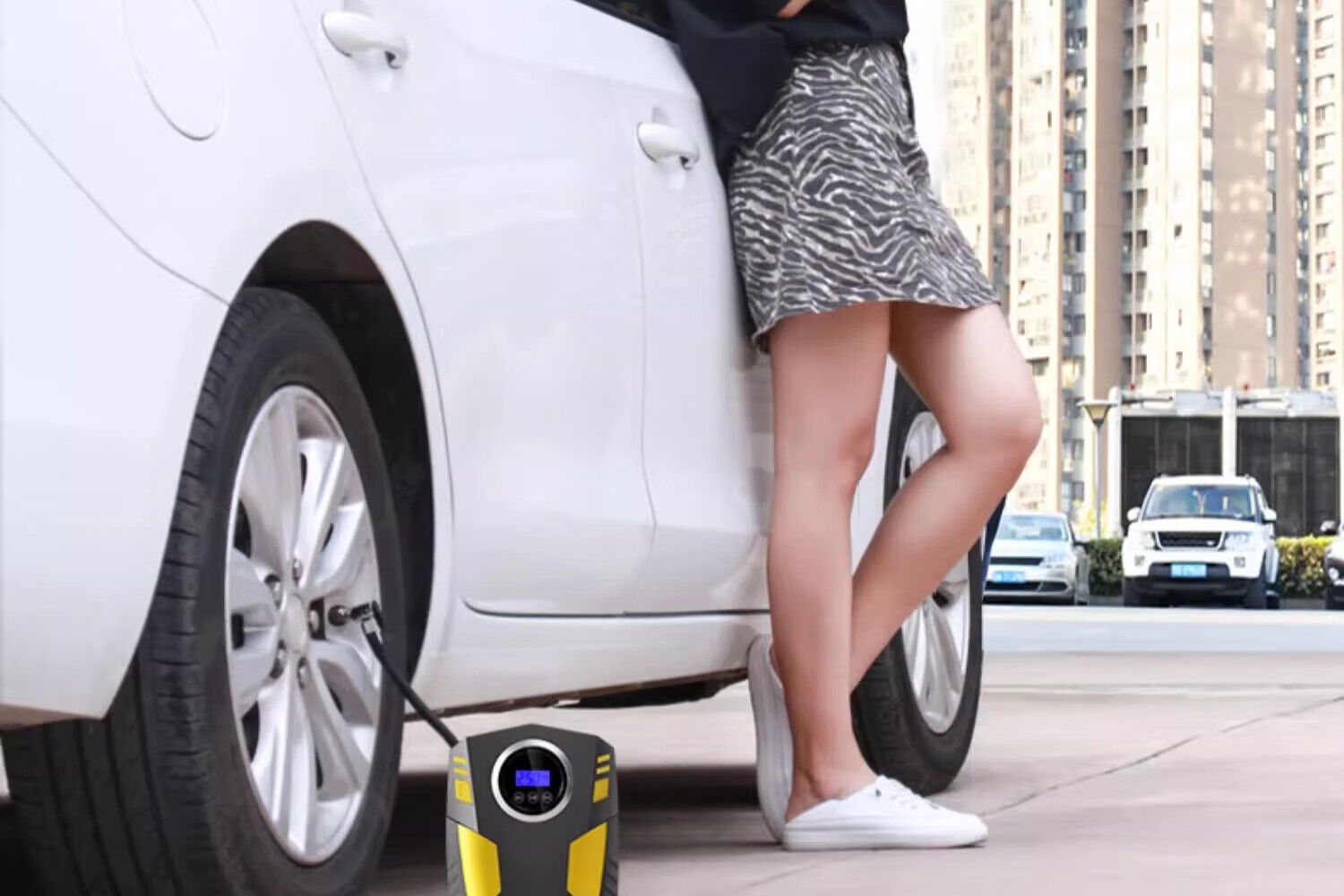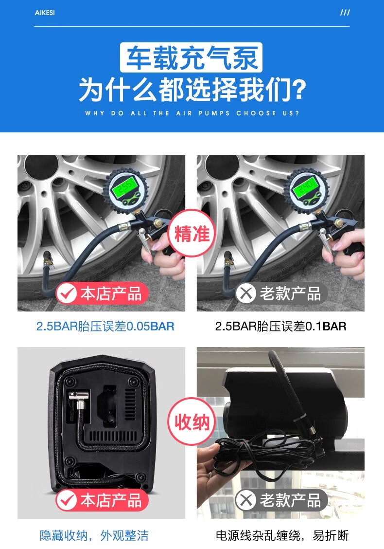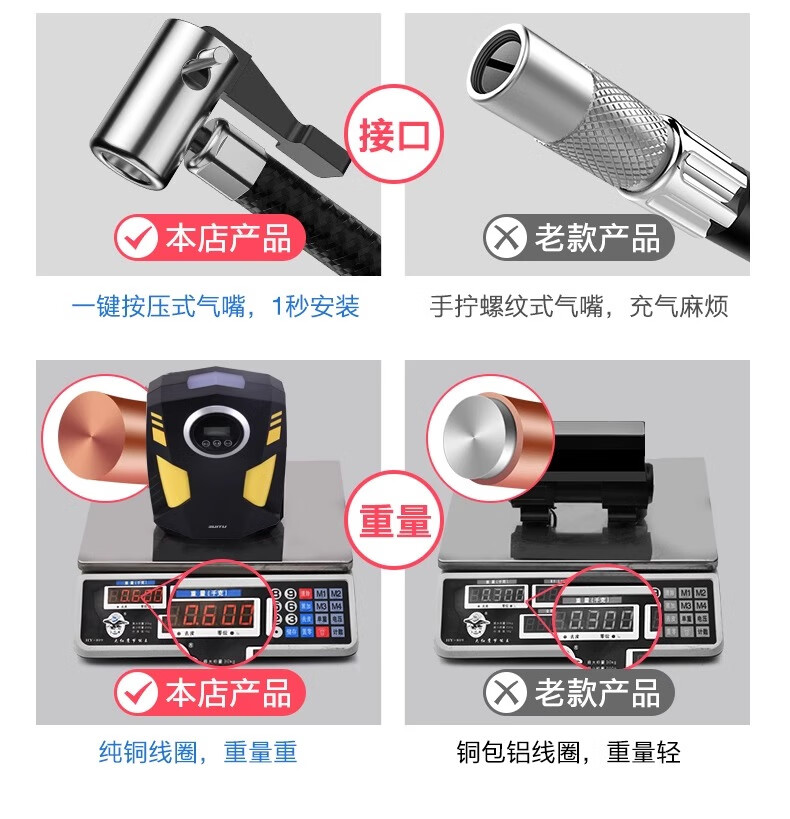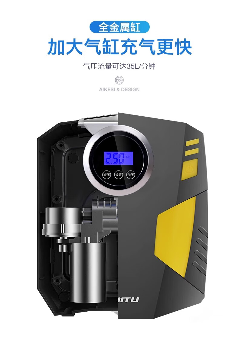 Suitu Car Air Pump Car Portable Air Pump Car Tire Electric High-Pressure Air Pump with Tire Pressure Measurement 120 Cylinder Digital Display Air Nozzle + Tire Repair Strip