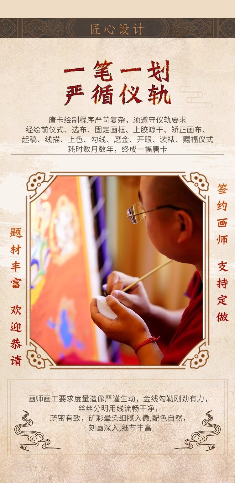 Yulong hand-painted golden Tanghuang God of Wealth and Five Gods of Wealth small thangka pendant portable natural mineral pigment 4*5cm