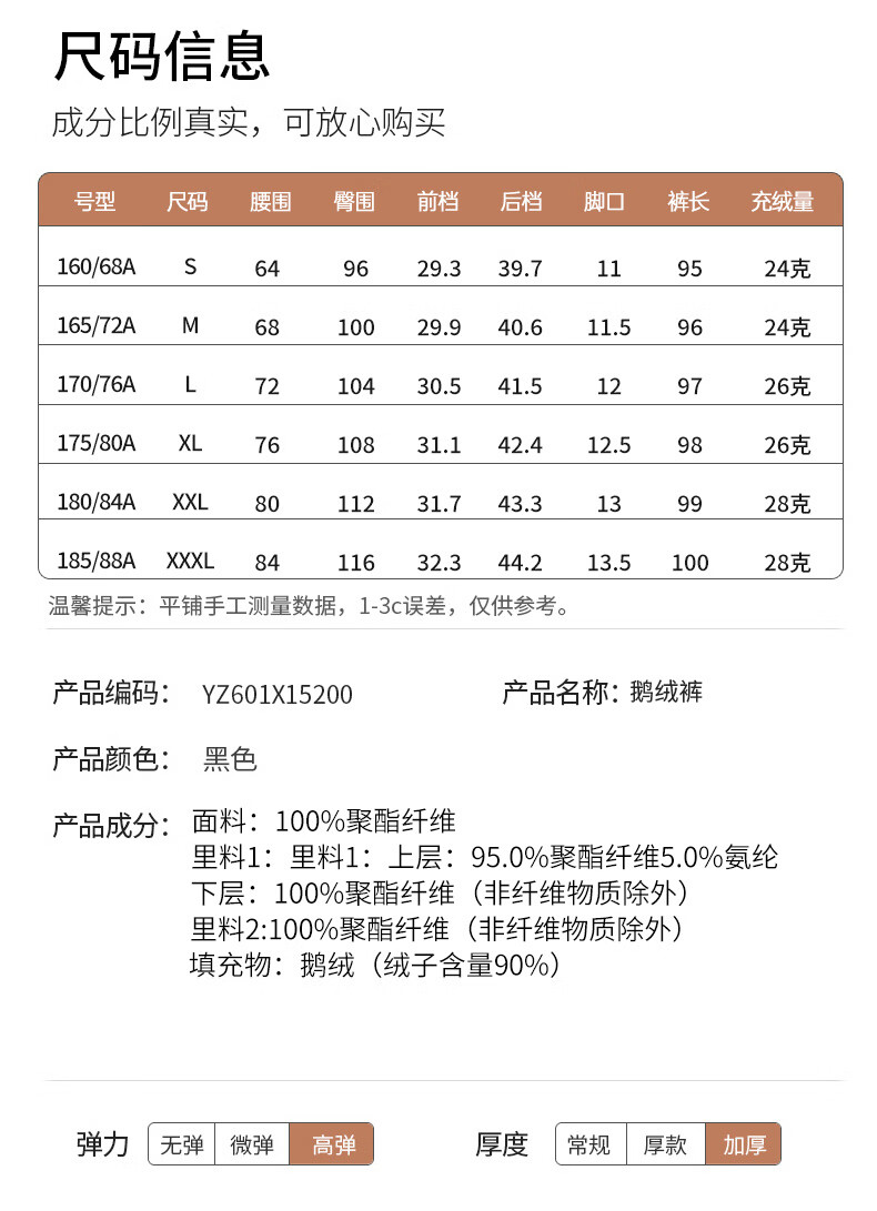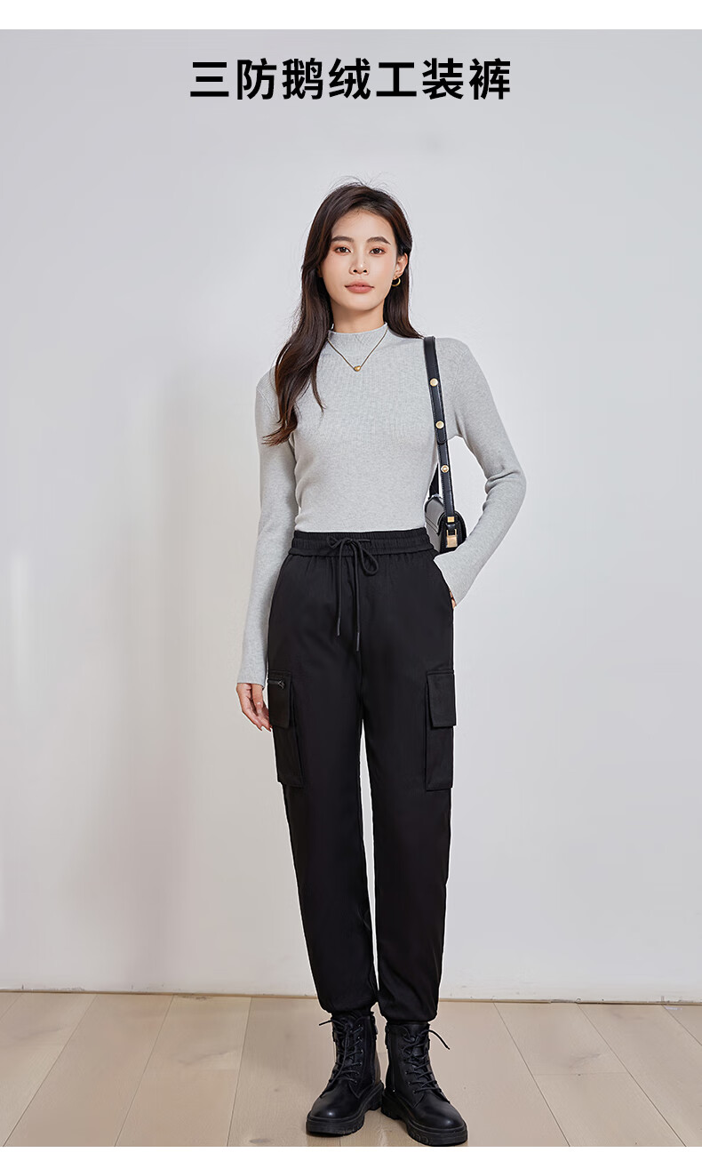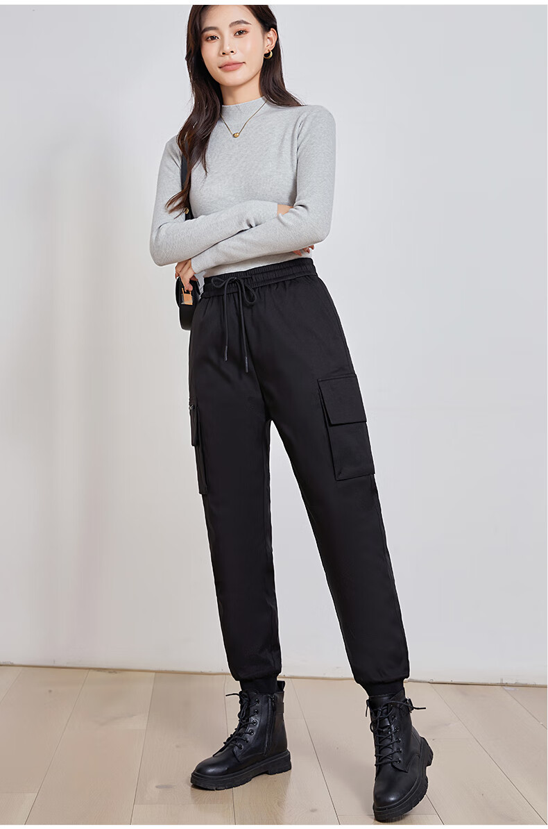 Yalu goose down down pants for women 2025 winter new fashion workwear windproof and warm loose straight casual casual sweatpants black S