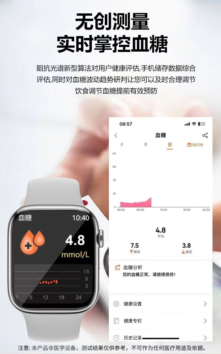 Huawei machine is suitable for high-precision blood glucose monitoring smart watch blood pressure blood lipids uric acid heart rate blood oxygen all-in-one machine black 2025 new model