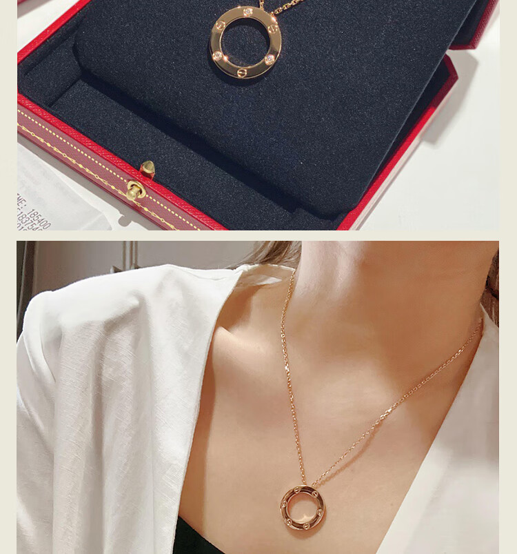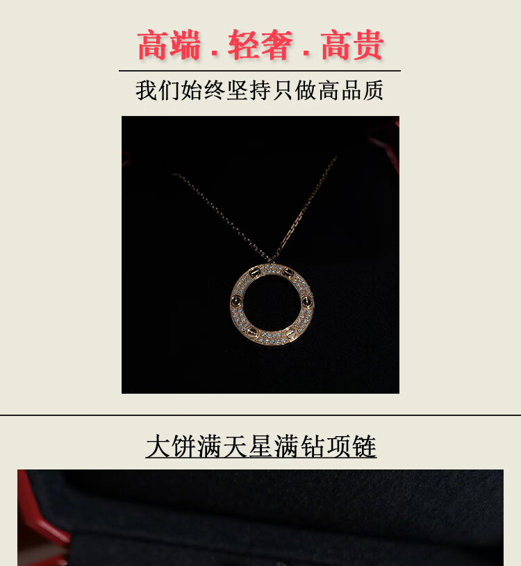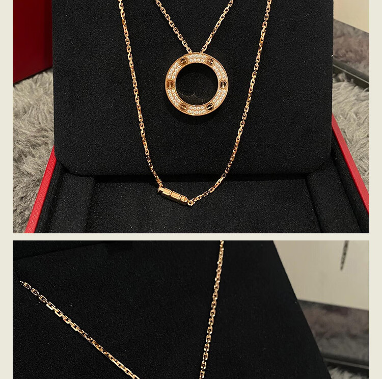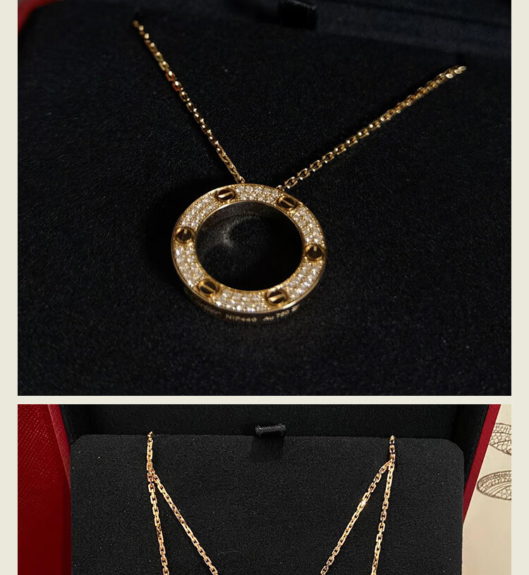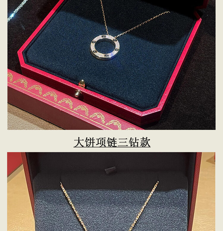 DL 1998 Fat Donglai same style 18k gold cake necklace full of diamonds rose gold round cake pendant K light luxury niche design white gold rose gold three diamond necklace (original packaging)