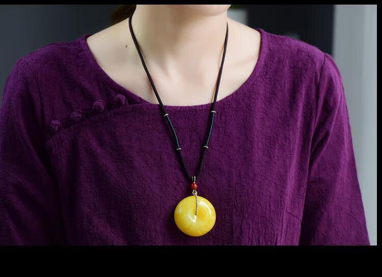 Prodigal son's heart Russian material white flower beeswax peace buckle pendant amber game allowance full honey bead cake buckle sweater chain jewelry diameter diameter about 45mm
