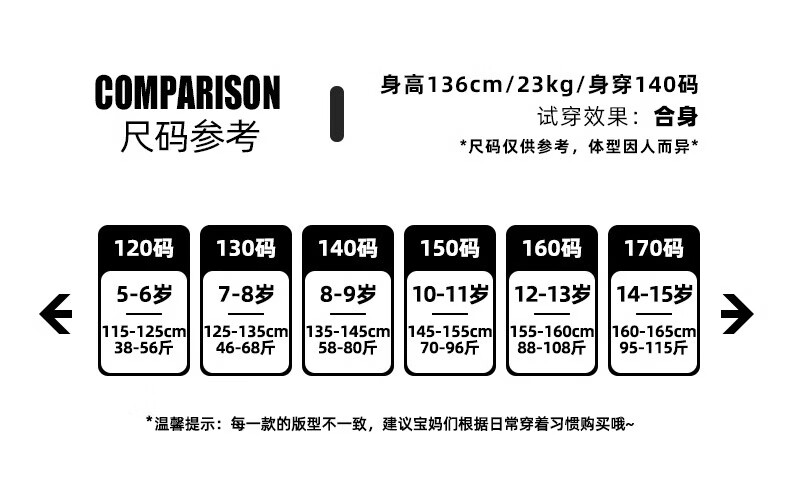 China (cm) 160-165/84-86 165-170 / 88-90 167-172 / 92-96 168-173 / 98-102 170-176 / 106-110