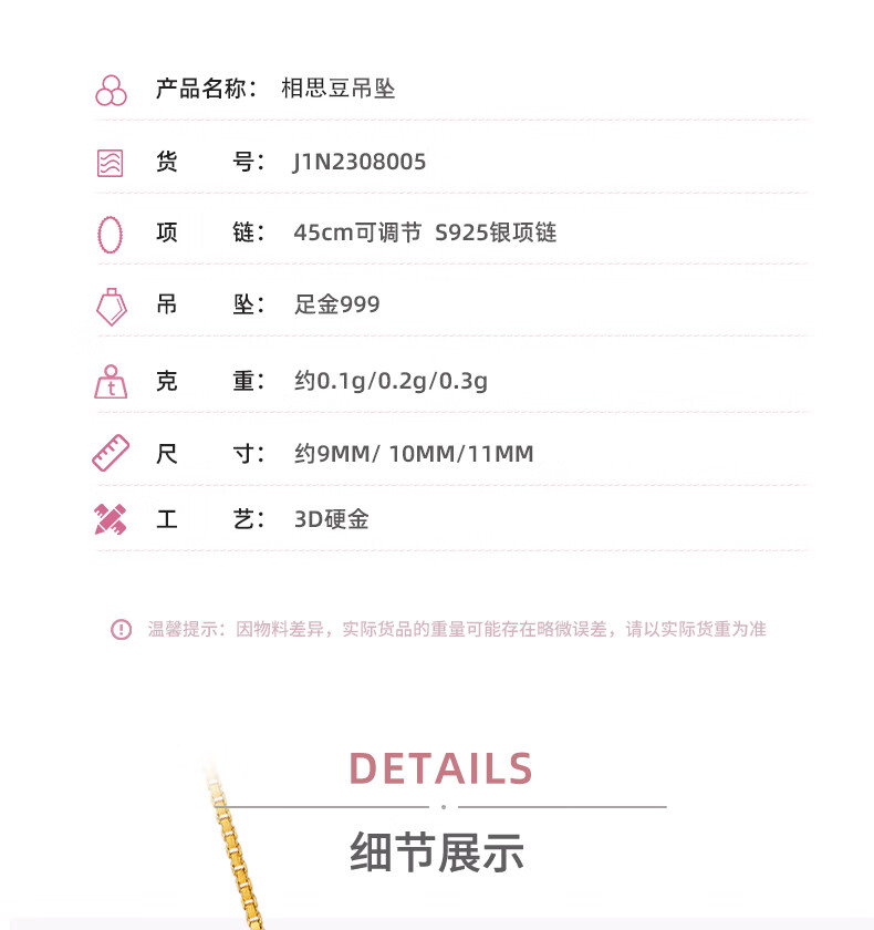 Prodigal Heart Boutique 18k gold gold pendant love&love acacia gold 999 beads small gold bean gold necklace acacia bean pendant acacia bean pendant about 0.1g (+ silver necklace)