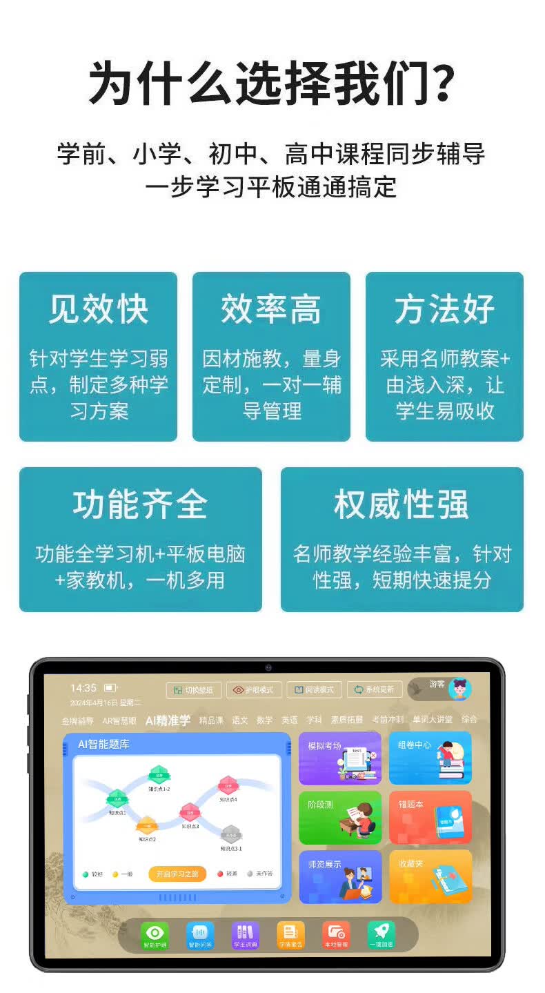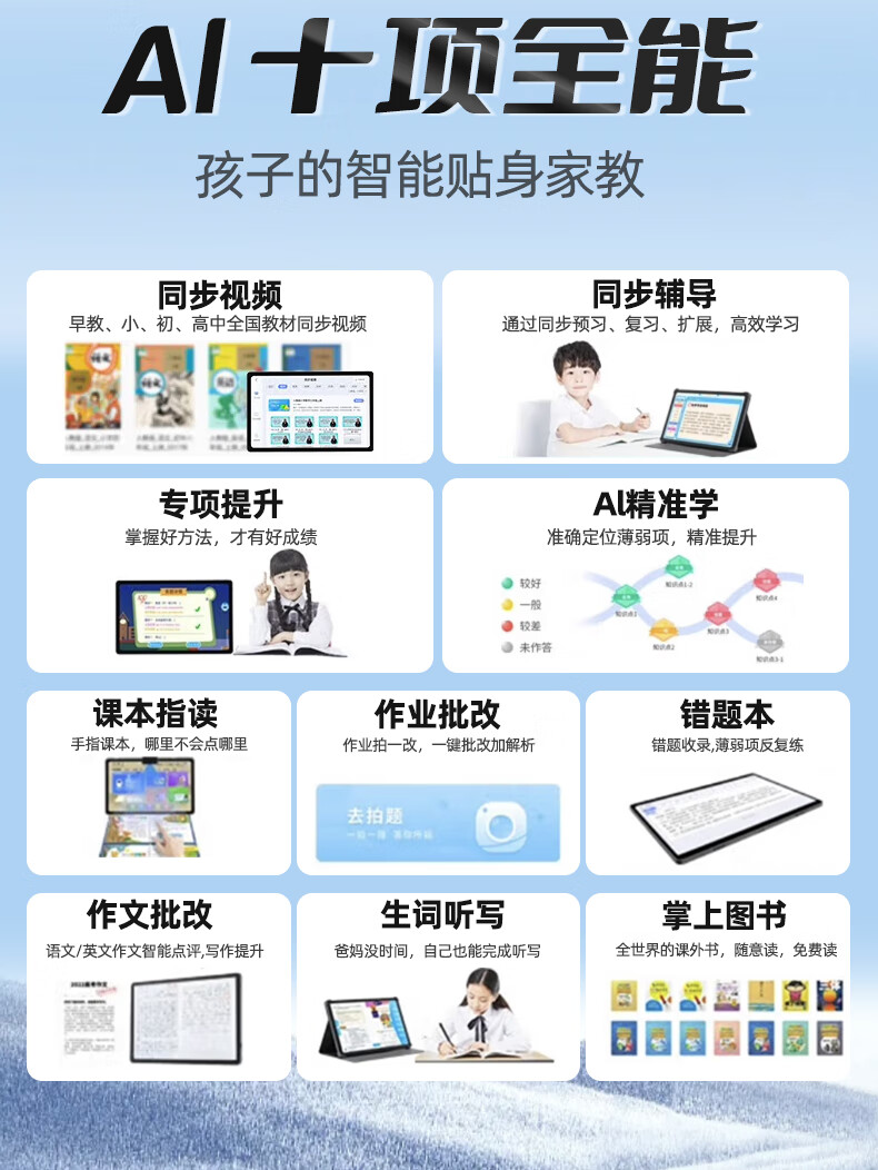 Zhuangyuanlang large-screen learning machine A90pro-10.1-inch ink eye protection screen student college entrance examination homologous technology English early education training machine AI precision learning dual system tablet all-in-one machine A9Pro high configuration 8+128G free smart eyes + protective film