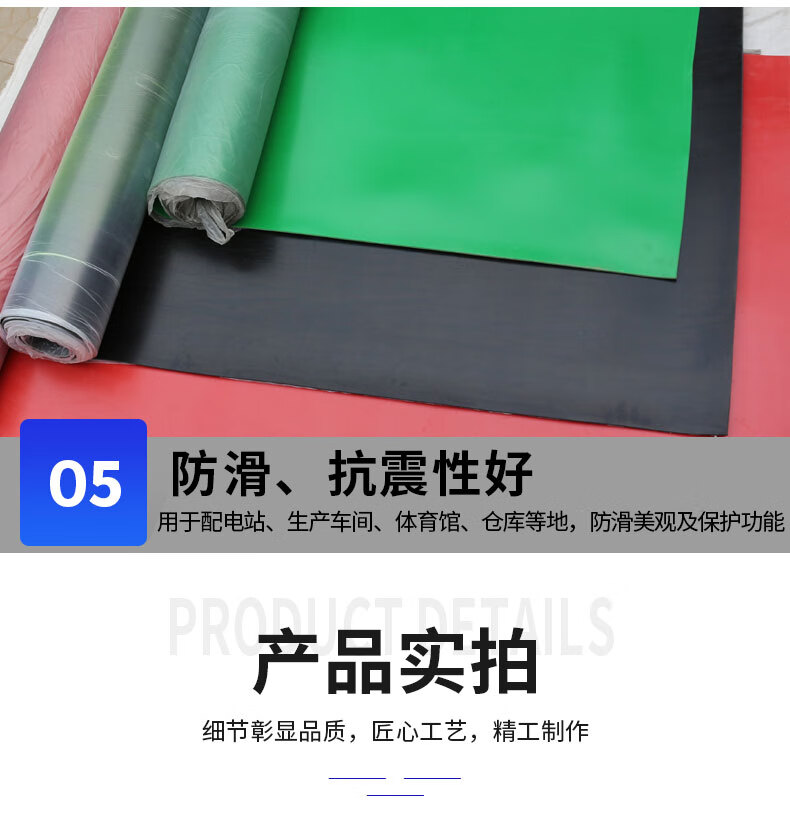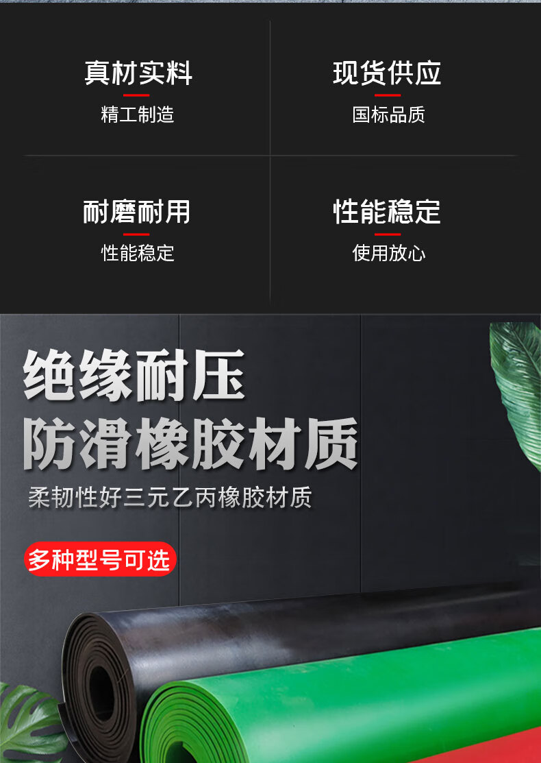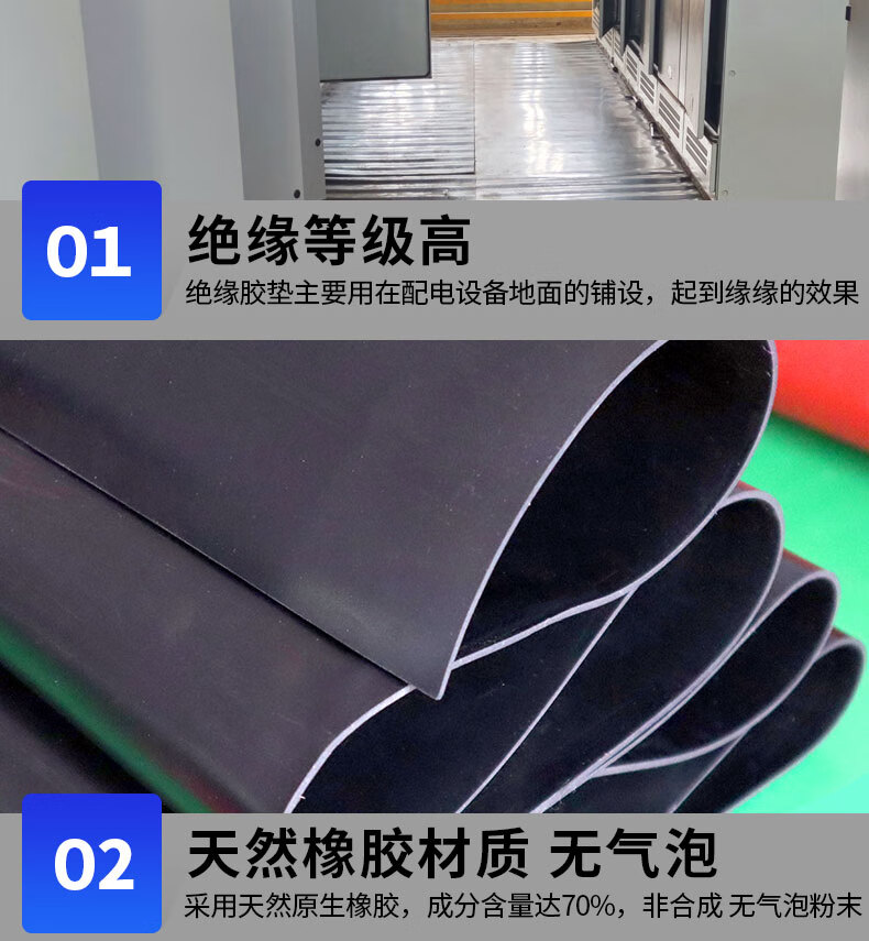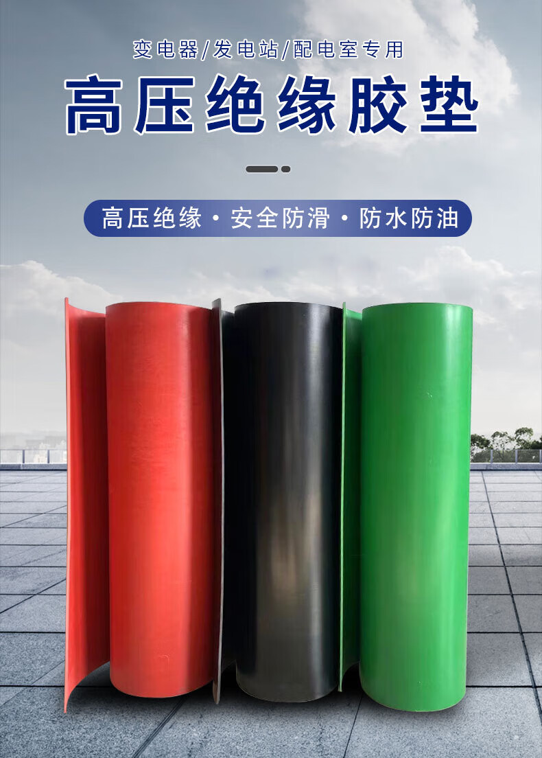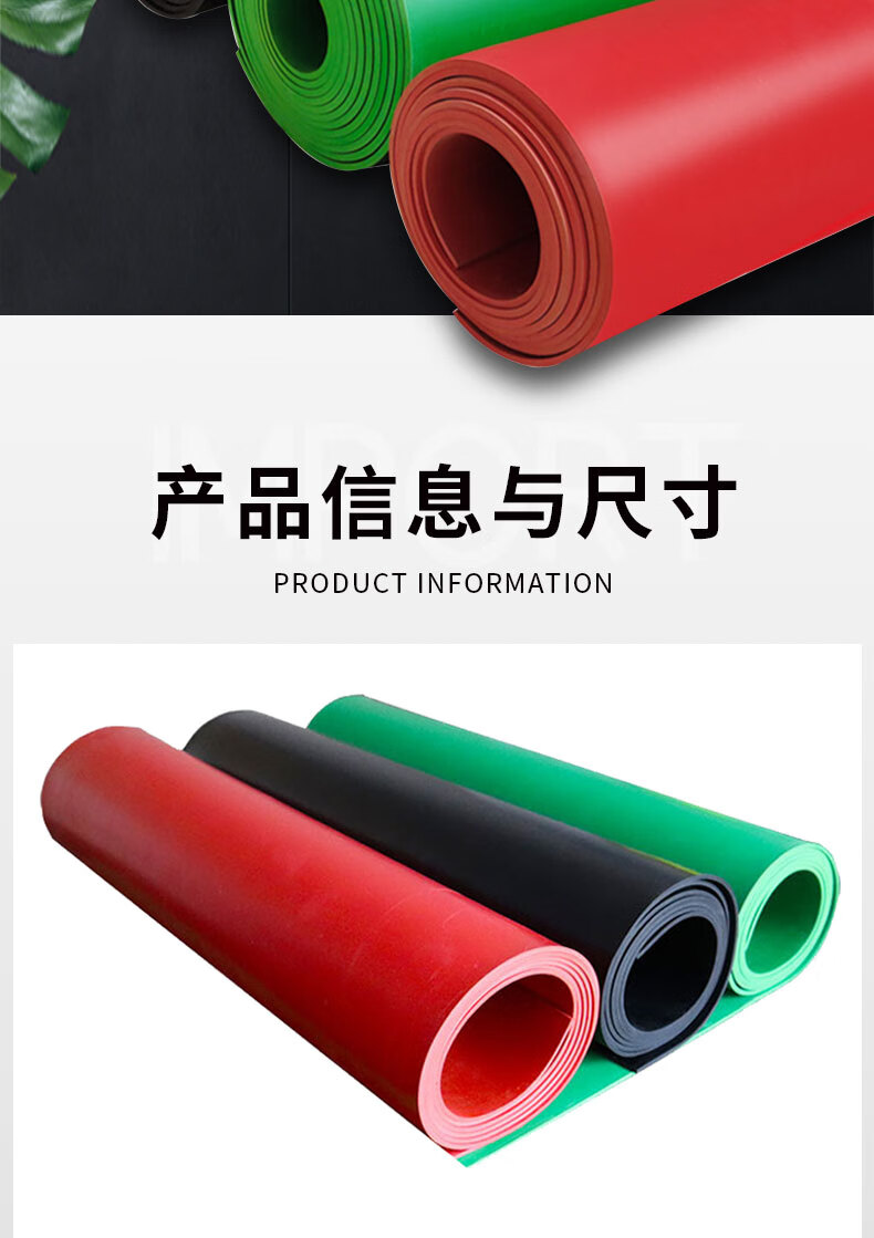 Yihang Hochspannungs-Isoliergummimatte, Stromverteilungsraum-Gummimatte, isolierende Bodenmatte, Teppich, schwarz, rot, grün, flach, gestreift, Isoliermatte, flach, schwarz, 25 kV, Dicke 10 mm, 1 x 10 m, ganze Rolle