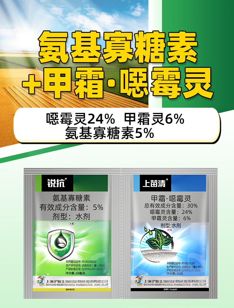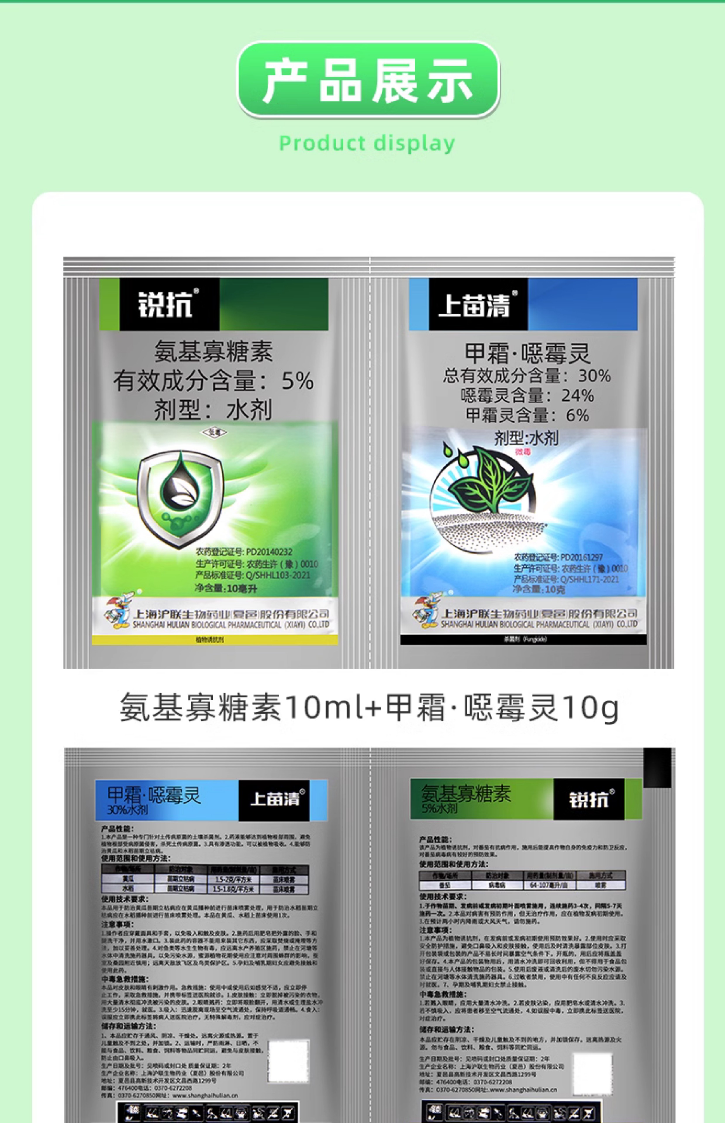 Hulianrui Kangshangmiaoqing 30% Amino Oligosaccharide Metalaxymexyl Cucumber Rice Blight Fungicide 200g (20g*10 bags)