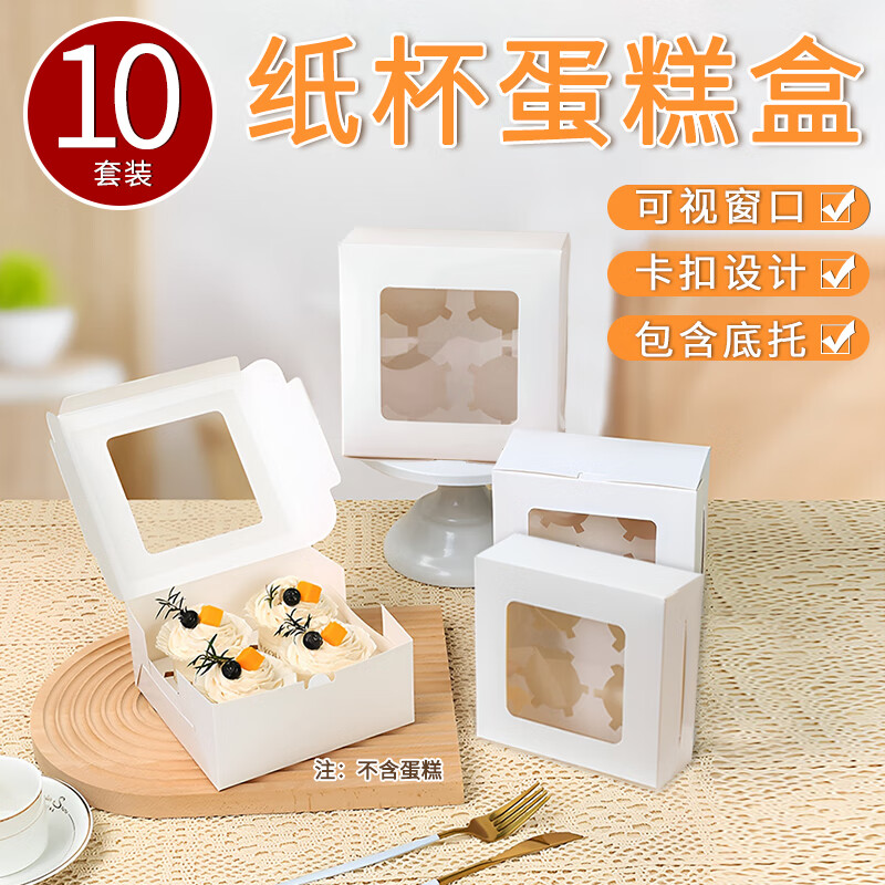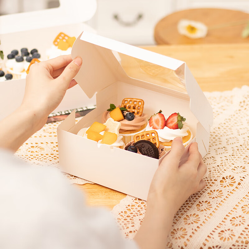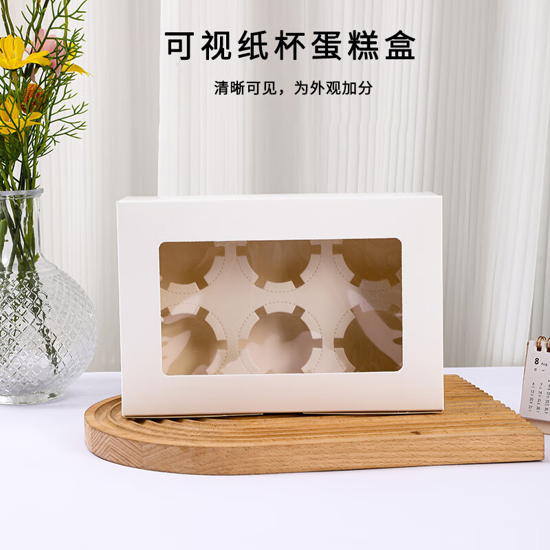 Suican cupcake box 6 pieces with height opening window Western dessert muffin cup packaging box Snow Mei Niang baking packaging box white 6 pieces 10 sets