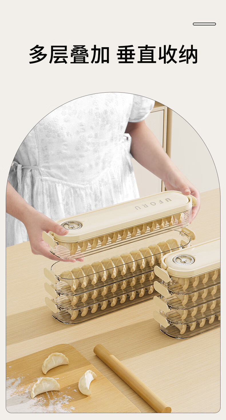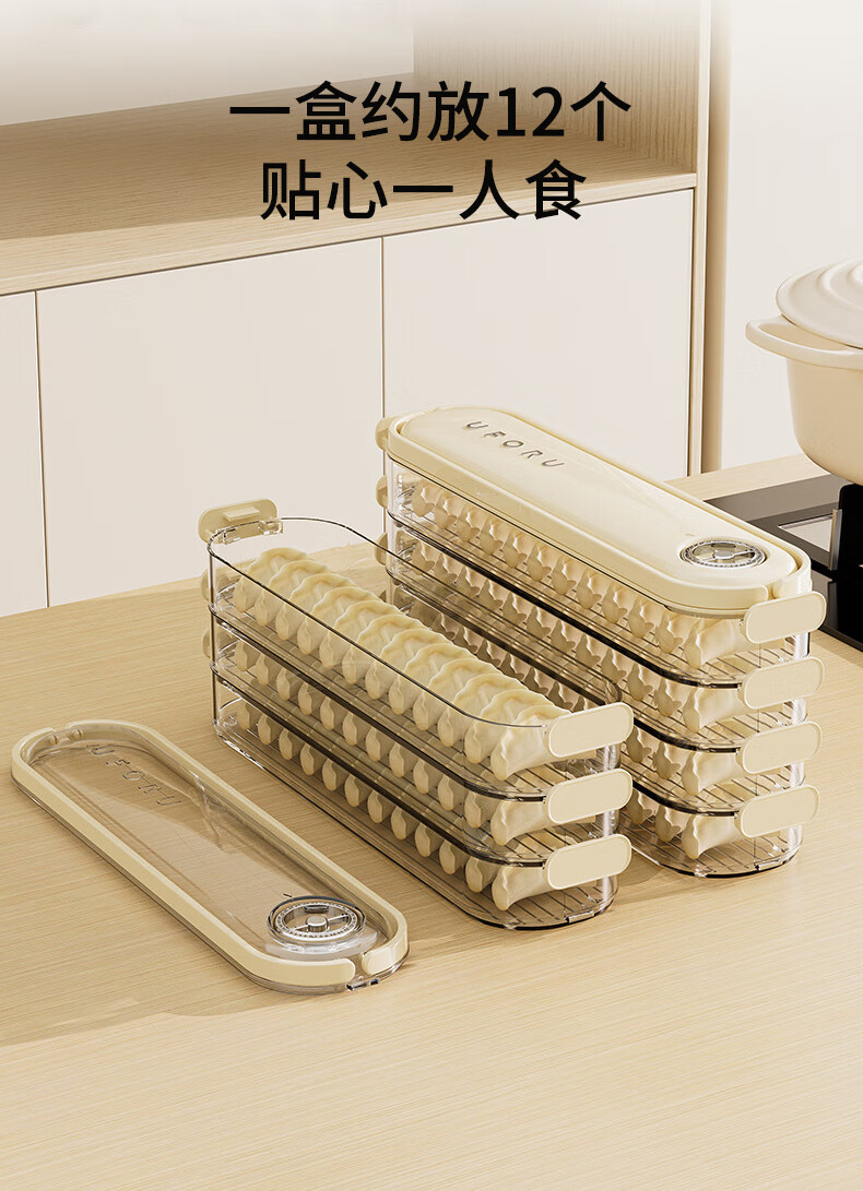 Yushang Zhenpin Dumpling Box Household Food Grade Freezing Special Narrow Sealed Fresh-keeping Box Wonton Quick-frozen Kitchen Refrigerator Storage Box Cream White 4 Layers