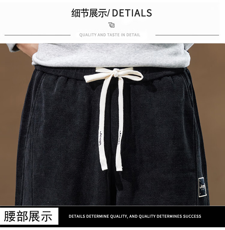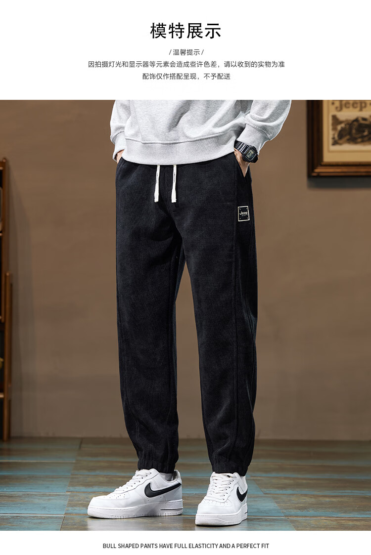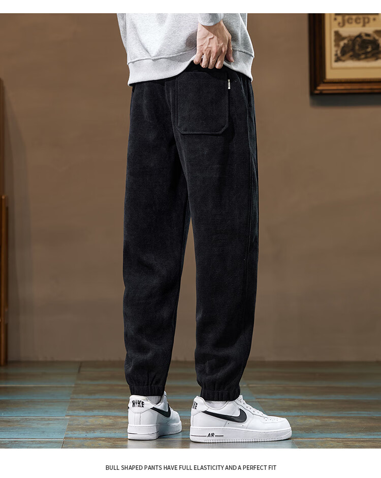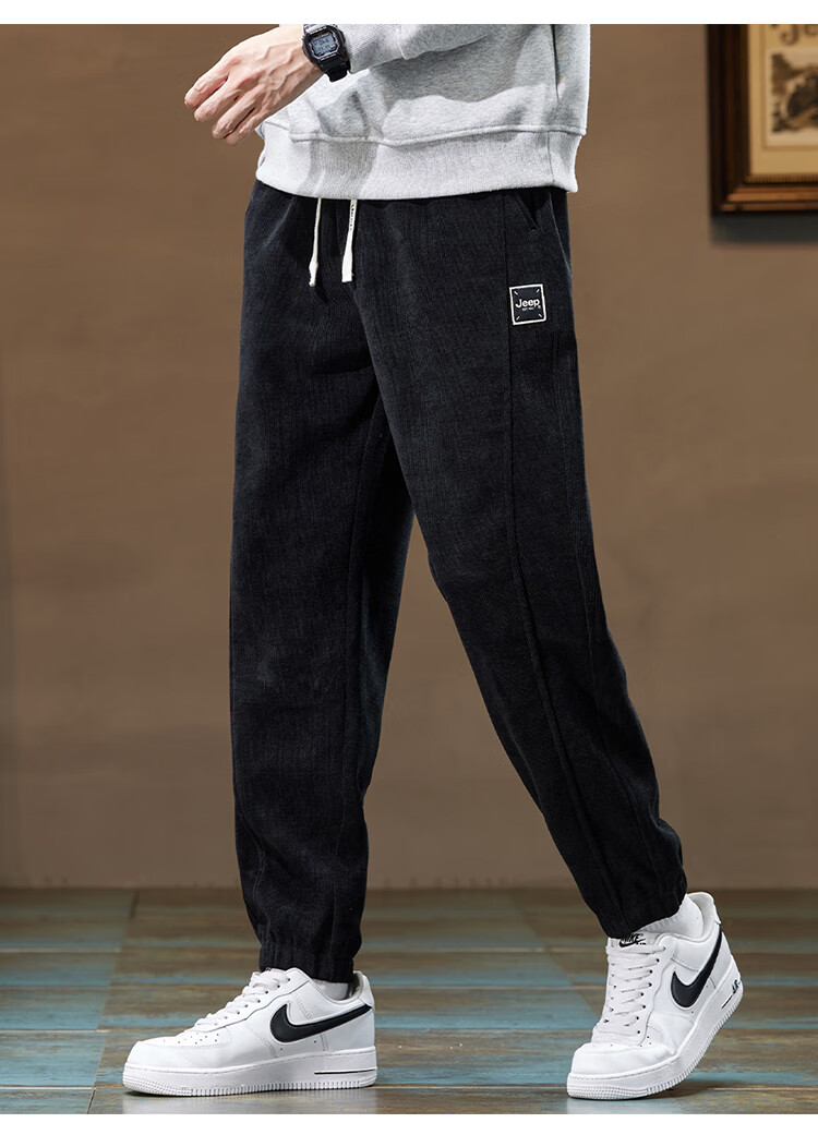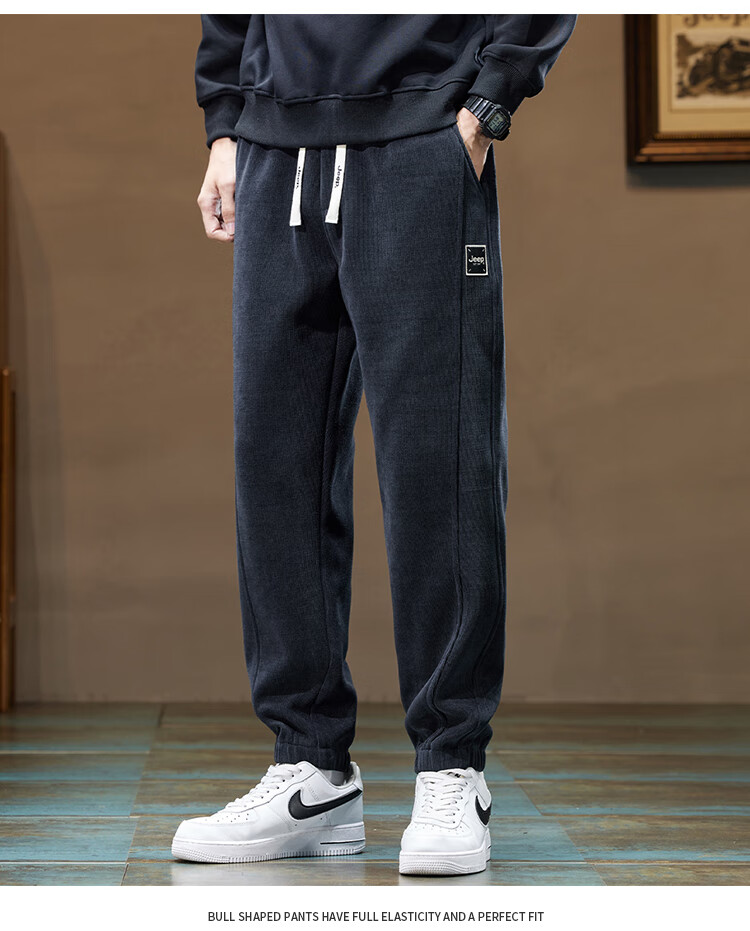 Jeep (JEEP) American genuine Jeep high-end chenille casual pants for men in autumn and winter, warm, loose and versatile leggings sports pants, black, official and authentic XL recommended 130-150Jin Jin equals 0.5 kg