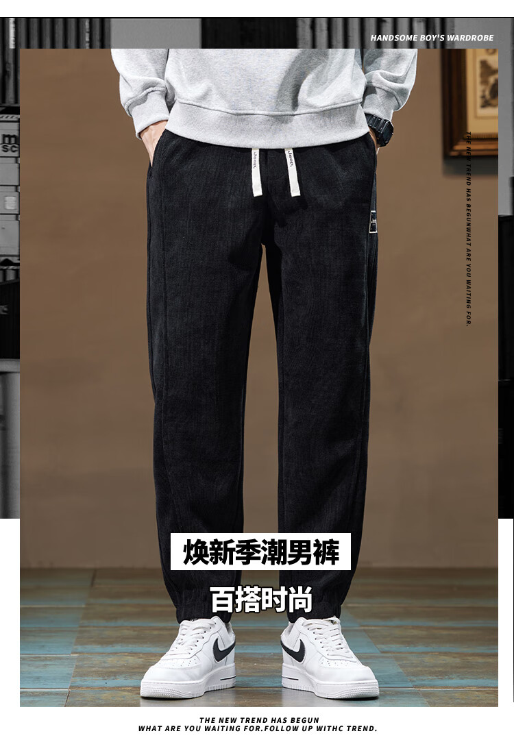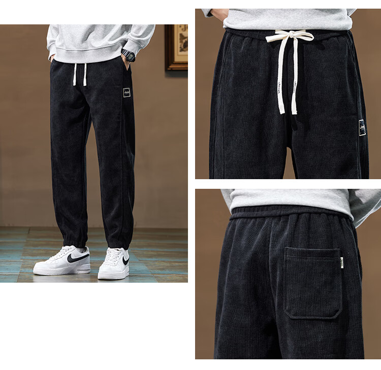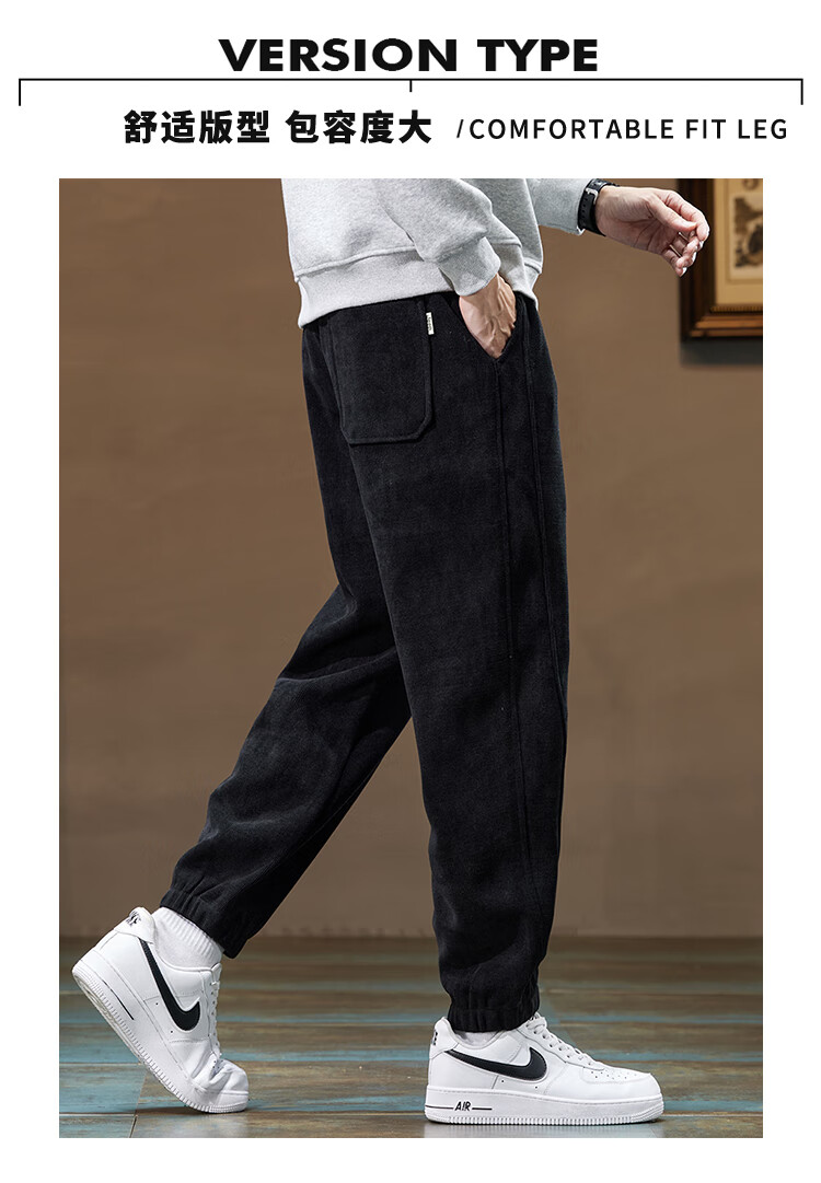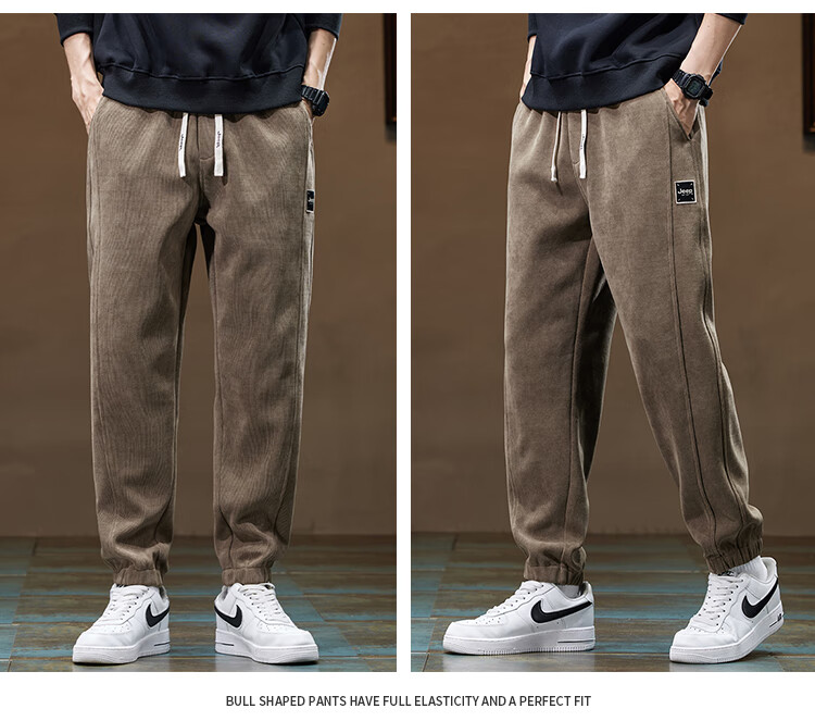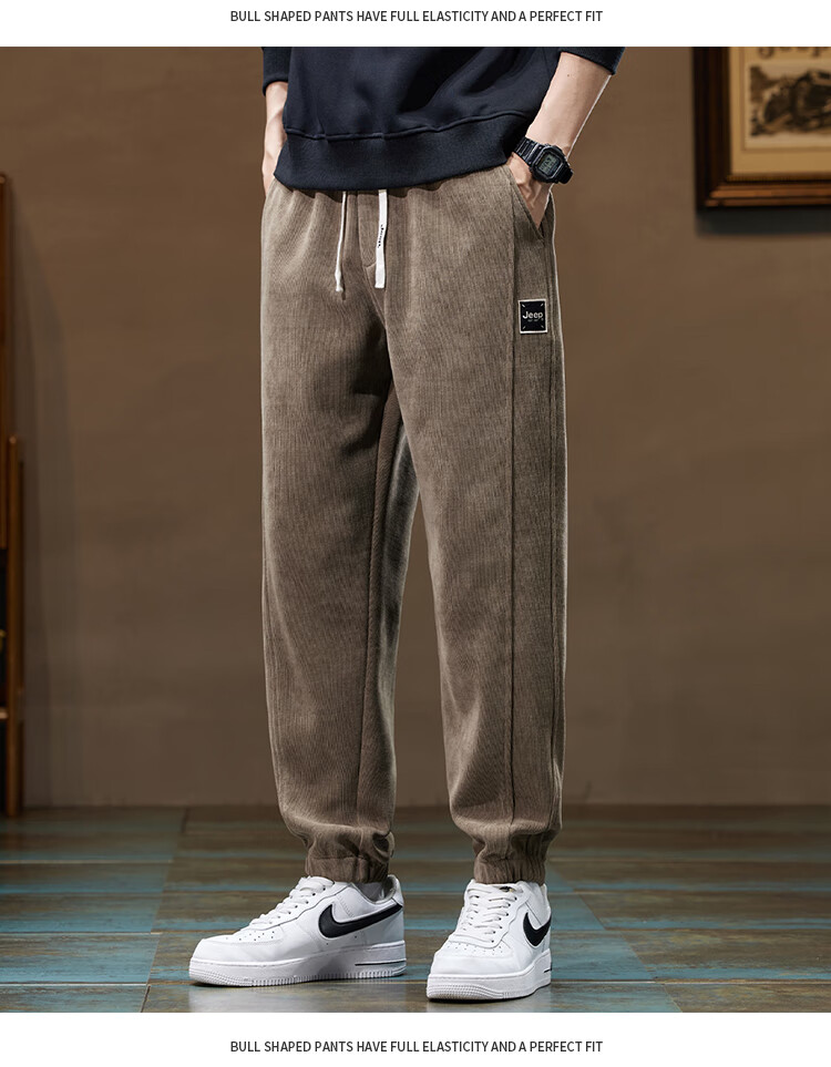 Jeep (JEEP) American genuine Jeep high-end chenille casual pants for men in autumn and winter, warm, loose and versatile leggings sports pants, black, official and authentic XL recommended 130-150Jin Jin equals 0.5 kg