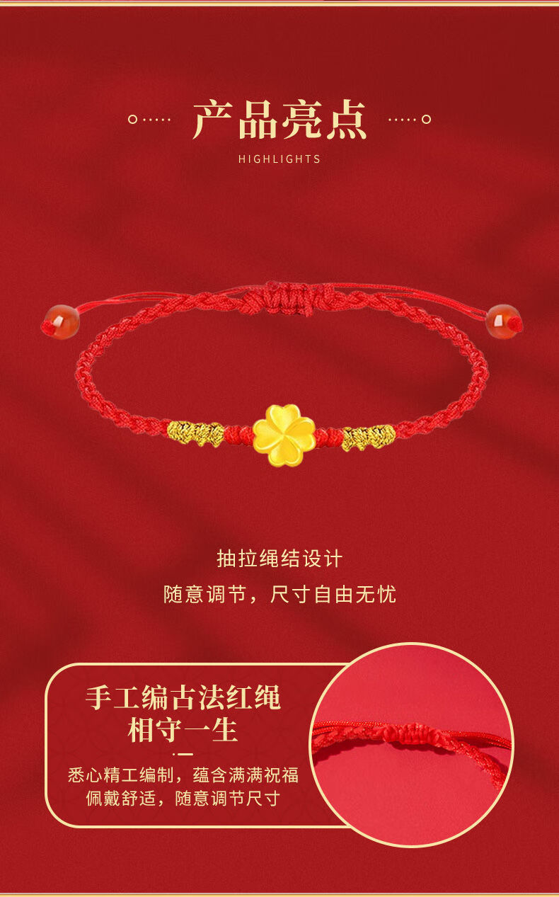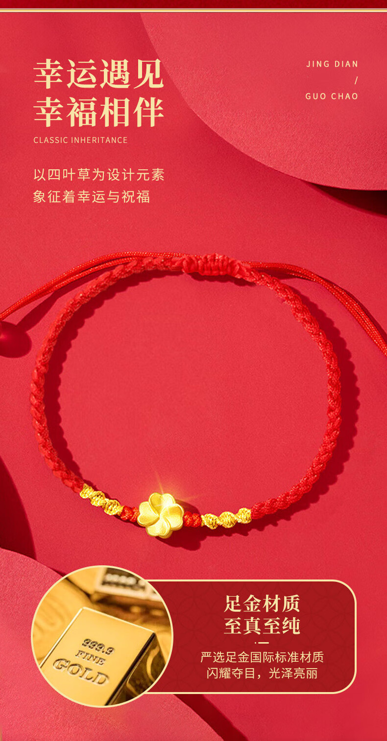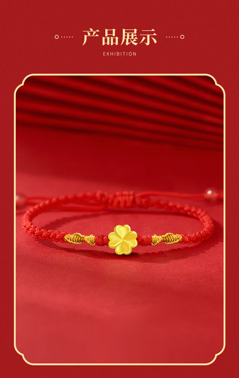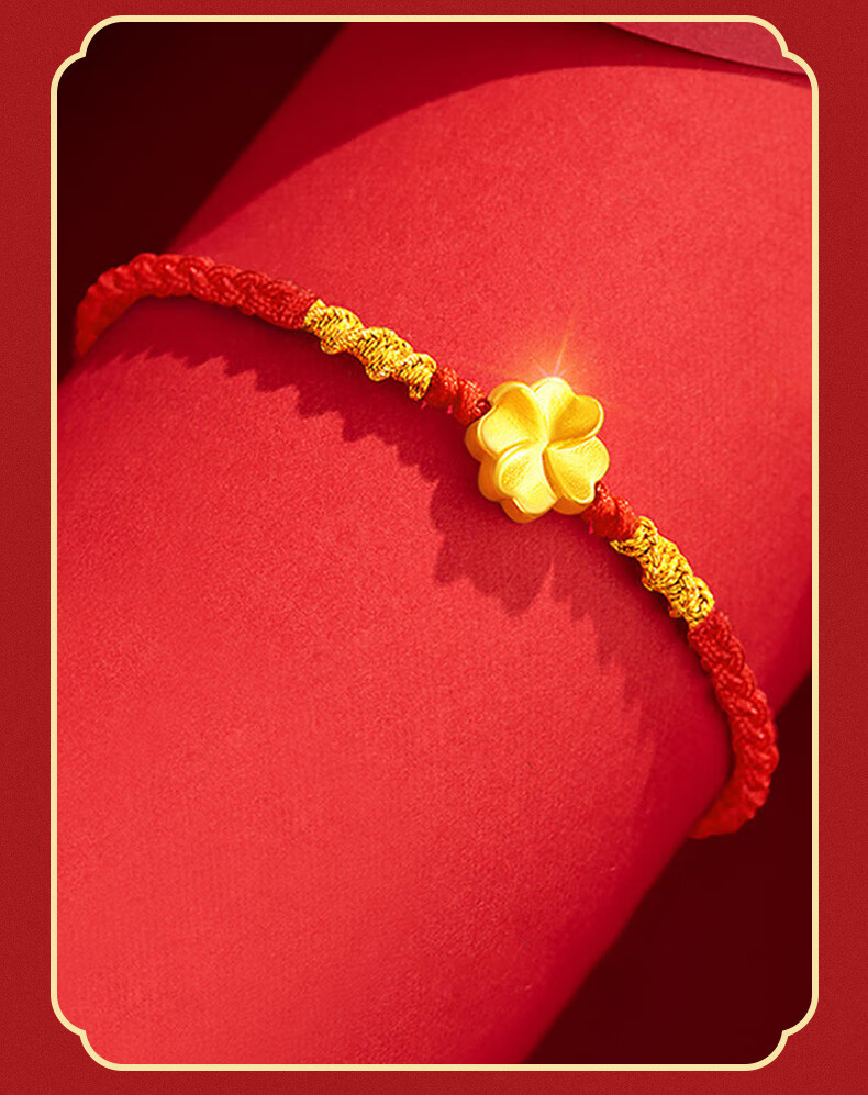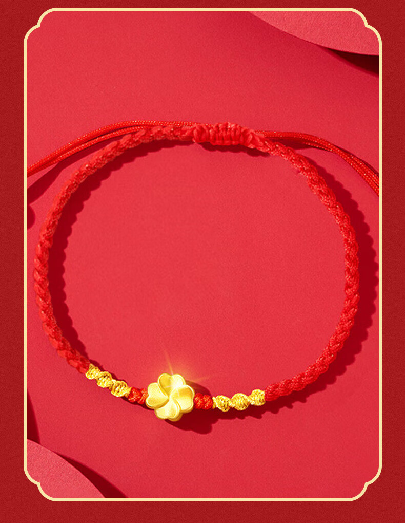 Luruo Pure Gold Women's Bracelet 2024 New Four-leaf Clover Braided Rope Birthday Gift for Girlfriend Four-Leaf Clover Bracelet Valentine's Day Gift Box