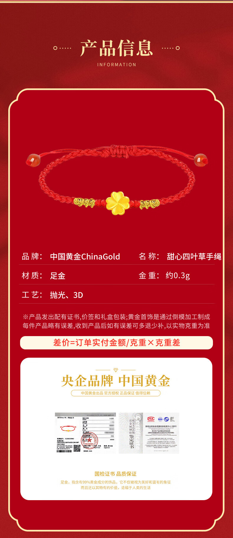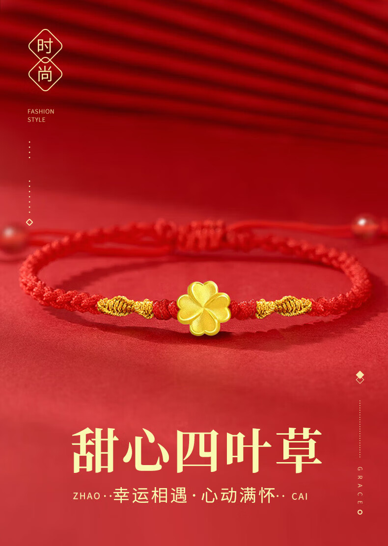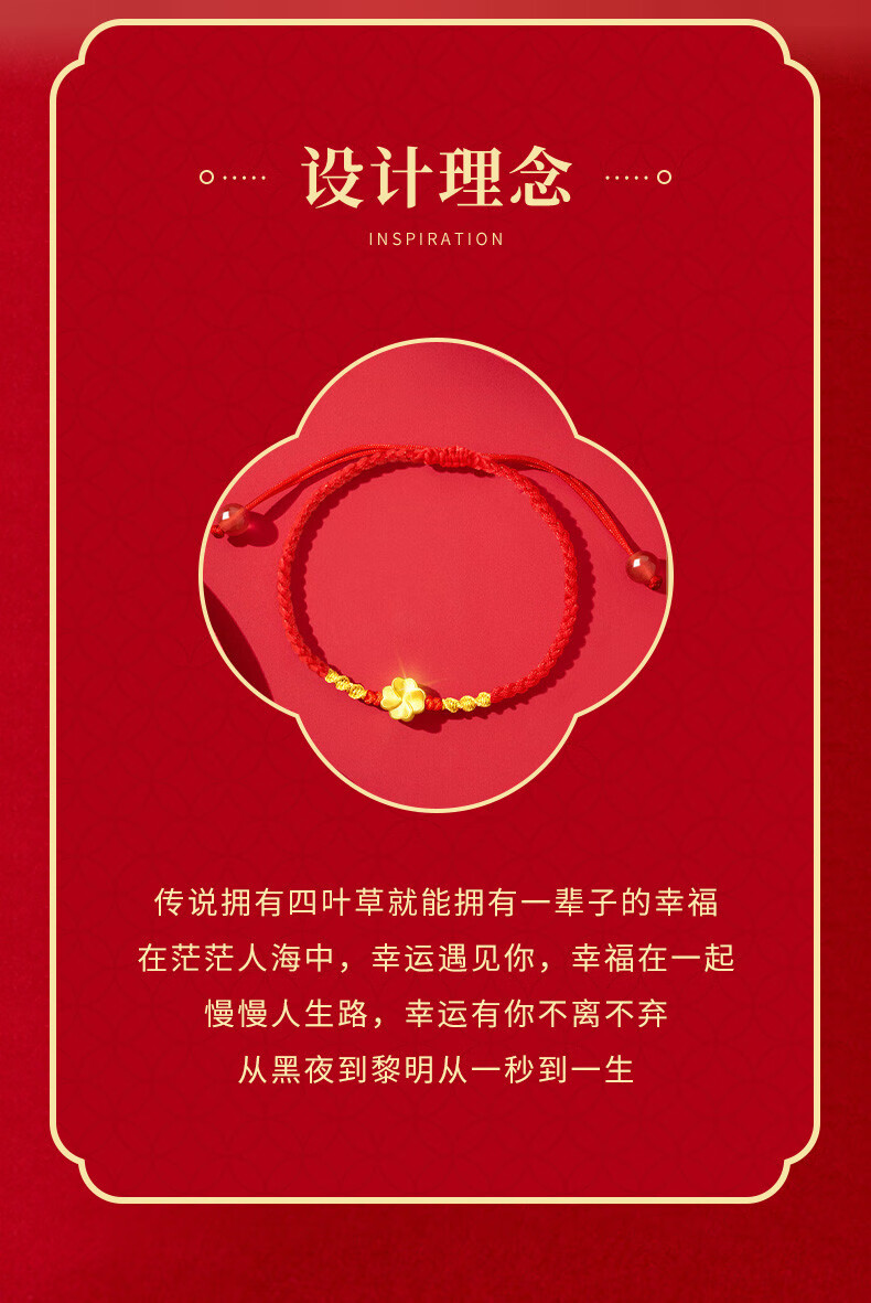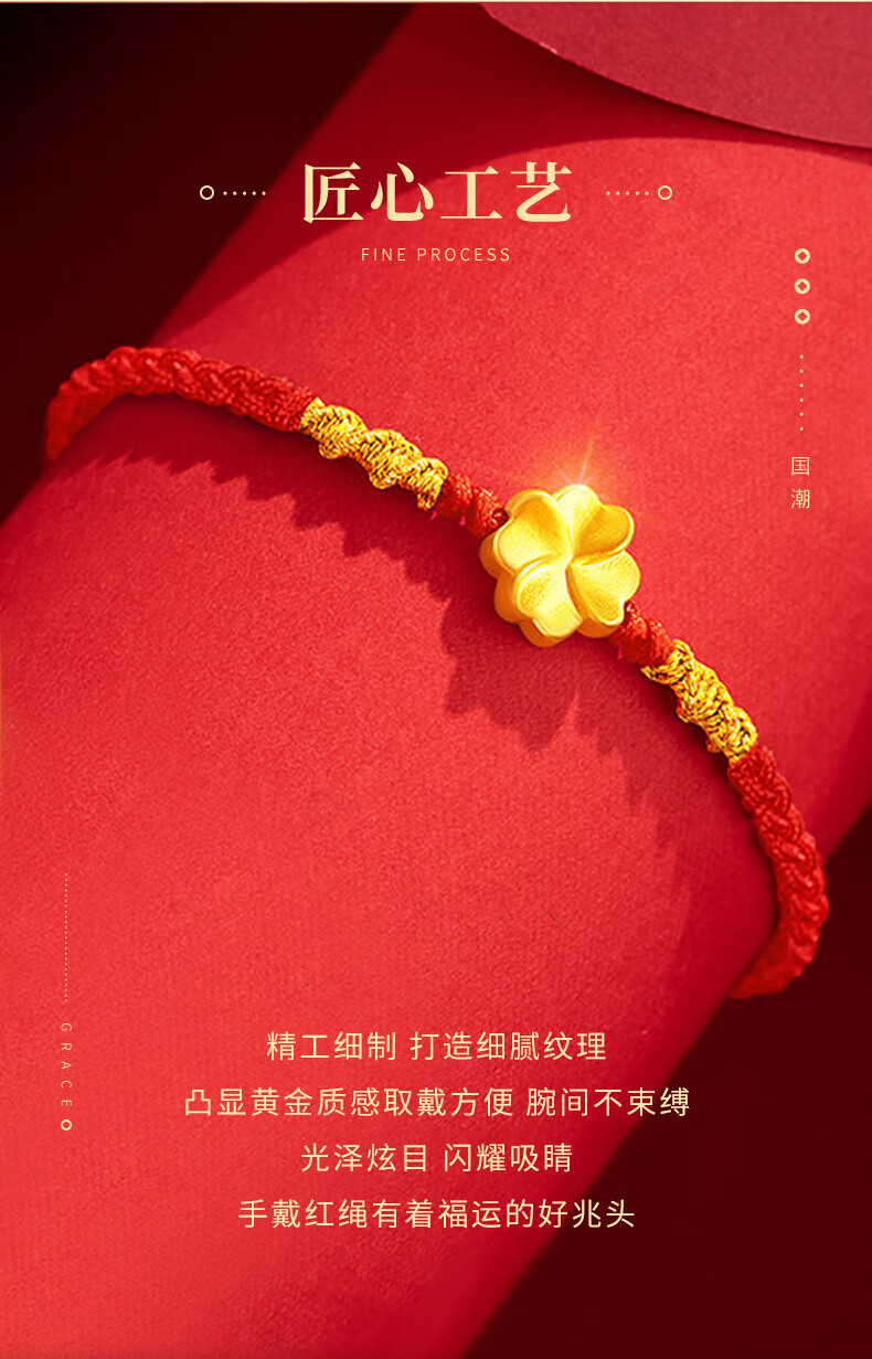 Luruo Pure Gold Women's Bracelet 2024 New Four-leaf Clover Braided Rope Birthday Gift for Girlfriend Four-Leaf Clover Bracelet Valentine's Day Gift Box
