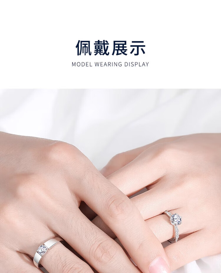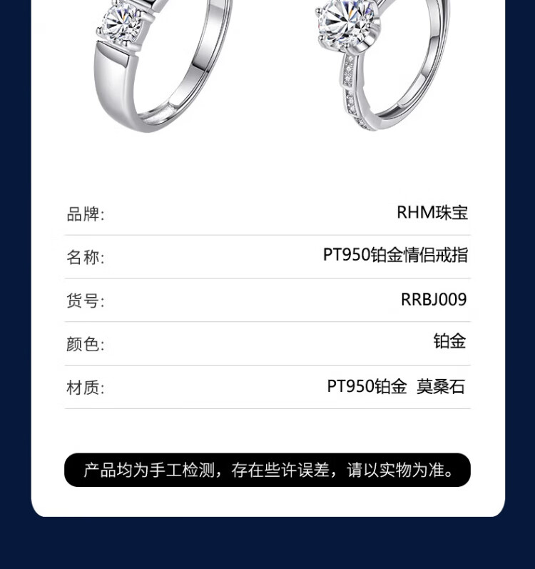 RHMPT950 Platinum Ring Women's Moissanite Diamond Ring Platinum Wedding Couple Ring Valentine's Day Gift for Girlfriend PT950 Platinum Couple Ring + Certificate + Gift Box